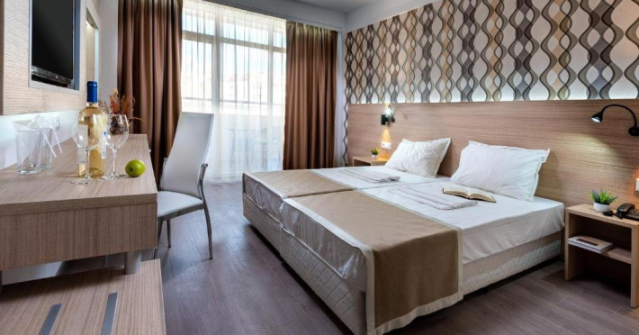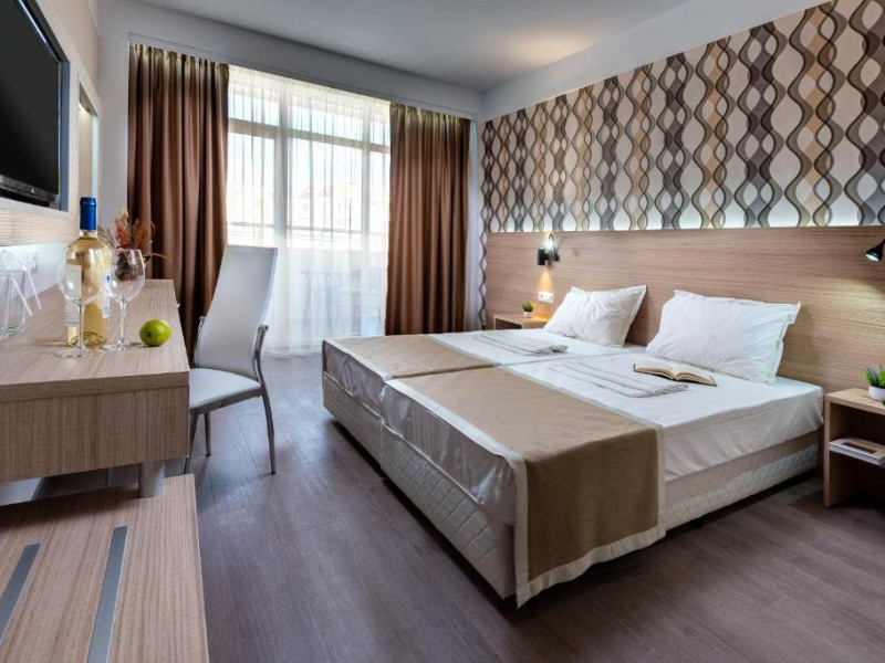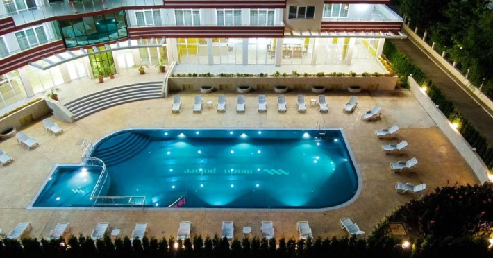 Hotel Maria Palace 4* este situat in partea cea mai linistita si linistita din Sunny Beach. Hotelul este situat la 500 de metri de plaja din statiune. Facilitati Complexul a fost construit in 2021 si este pe deplin pregatit sa isi intampine primii oaspeti in sezonul 2022. Are un bloc de 5 etaje, 98 camere, 2 lifturi. Receptie - 24/7, Wi-FI - gratuit pentru oaspetii hotelului, transfer - port aeroport (cu plata), schimb valutar, excursii, informatii suplimentare, masini de inchiriat, camera pentru bagaje, spalatorie, calcat, curatatorie - contra cost, loc de joaca in aer liber in zona din jurul piscinei, servicii medicale - contra cost, la telefon. In hotel puteti gasi restaurant, lobby bar, piscina exterioara cu umbrela si sezlong, sala de sport, magazin de suveniruri si cosmetice, coafor si manichiura, parcare contra cost. Restaurantul are o terasa pentru serile linistite de vara. Exista nenumarate alte oportunitati de divertisment si cumparaturi in apropierea hotelului. Cazare Ora de check-in: 14:00 p.m.; Ora de check-out: 12:00 a.m. 82 Double rooms garden/pool view, , aprox 25 mp,(max.2+1); paturi twin sau un pat dublu. 16 Apartments one bedroom aprox. 53 mp,(max.2+2, 3+1, 4+0);un dormitor dotat cu un pat mare, living cu canapea extensibila mare. Baie cu dus, uscator de par. Potrivit pentru familiile cu copii mai mari. In toate unitatile: aer conditionat, mini frigider, baie cu dus si uscator de par 8 suitable rooms for disabled guests- 2 la fiecare etaj, (max. 4+0). Camerele sunt dotate cu seif, aer conditionat, mini-frigider, TV, telefon, Wi-Fi, ceainic si birou cu scaun. Baia este special utilata pentru persoane cu dizabilitati, dispune de dus, toaleta, telefon si uscator de par. 1 DBL promo - mai mica decat camera standard dubla, (min./max.2+0), paturi twin. Copii: Baby cot, sectiune pentru copii la piscina, loc de joaca pentru copii la piscina. Sport si divertisment Gratuit: piscina exterioara, sezlonguri si umbrele de soare la piscina, Wi-Fi. Contra cost: prosoape de plaja contra depozit de 10 bgn., transferuri, schimb valutar, masini de inchiriat, spalatorie, calcat, curatatorie chimica, ajutor medical. Animalele de companie nu sunt permise. Parcare - se plateste cu 12 -15BGN/ zi, in functie de disponibilitate si fara rezervari pentru locuri de parcare.