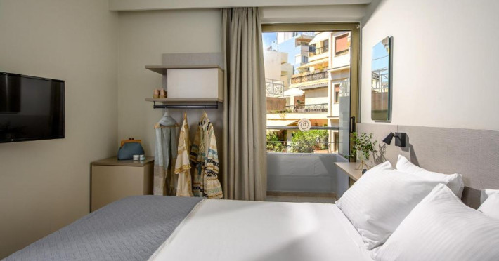 Localizare: la cațiva pași de portul din Heraklion, la 300 de centrul orașului, la 4 Km de Aeroportul Internațional Nikos Kazantzakis.