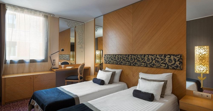 Situado en el corazandoacute;n de la ciudad, justo al lado del Nagykandouml;randuacute;t (Gran Bulevar), este hotel es una gran opciandoacute;n para todos los visitantes de Budapest. Como el nombre de la calle sugiere, esta es una de las principales arterias de la ciudad y en sus inmediaciones se encuentran la gran mayorandiacute;a de lugares y edificios mandaacute;s emblemandaacute;ticos de la capital handuacute;ngara. Paseando por las inmediaciones, se puede visitar el magnandiacute;fico edificio del Parlamento, la basandiacute;lica de San Esteban y disfrutar de las magnandiacute;ficas vistas del Danubio y de la ciudad que se extiende a sus orillas, asandiacute; como descubrir las magnandiacute;ficas tiendas y restaurantes ubicados por el centro de la ciudad. Los que prefieran la comodidad del hotel serandaacute;n gratamente sorprendidos por una amplia selecciandoacute;n de cocina internacional que deleitarandaacute; a los comensales, desde los platos a la carta a una autandeacute;ntica cena turca o un menanduacute; de temporada, todo ello bien maridado con una amplia selecciandoacute;n de vinos de calidad.