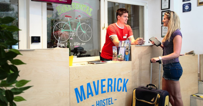 Hotel characteristics: ; 3 floors; 19 rooms Location: «Maverick Hostel amp; Ensuites» is located in Budapest. This hostel is located In walking distance from the city center. You can take a walk and explore the neighbourhood area of the hostel. Places nearby: Ferenciek tere, Dohany Street Synagogue and Elisabeth Bridge At the hostel: Free Wi-Fi on the territory will help you to stay on-line. The following services are also available for the guests: a doctor. Get ready for a fun and exciting vacation! Here’s what you will find on the premises: a library. Children will be happy, there is a playroom for them; Want to have an excursion? Consult the tour assistance desk of the hostel. The staff of the hostel will order a transfer for you. At the guests’ disposal, there’s also a laundry, dry cleaning and a concierge. The staff of the hostel will be happy to talk to you in English