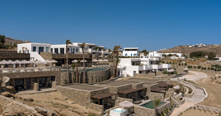 Maximus Mykonos is a luxurious 5-star hotel located in the iconic Paraga area of Mykonos. Nestled on a hillside with panoramic views of Paraga Beach and the renowned Scorpios venue, the property offers guests an unparalleled perspective of the Aegean Sea. Designed by the award-winning architectural firm DEZONE Archi+, the hotel harmoniously blends traditional Cycladic aesthetics with modern sophistication, creating a serene environment of understated luxury.