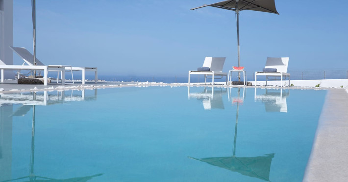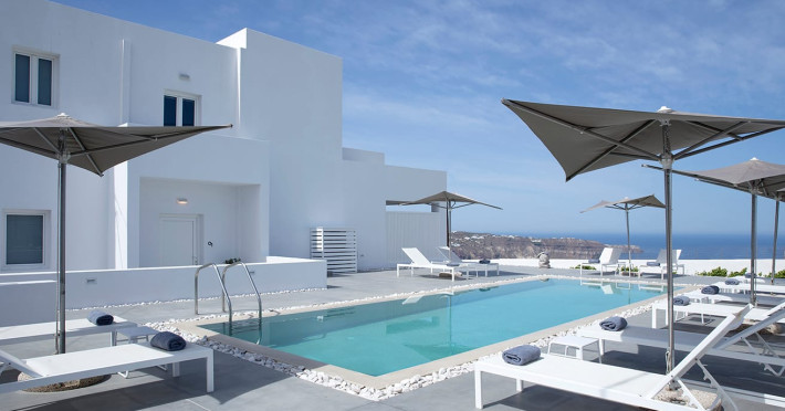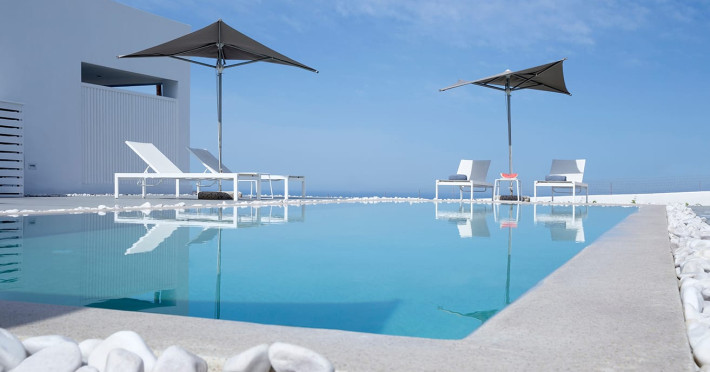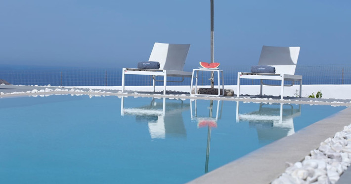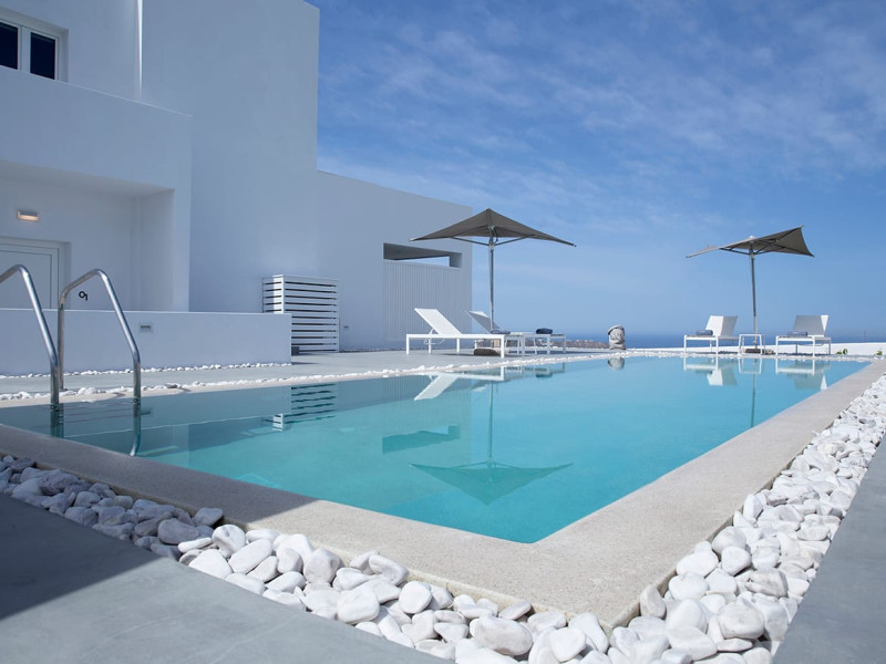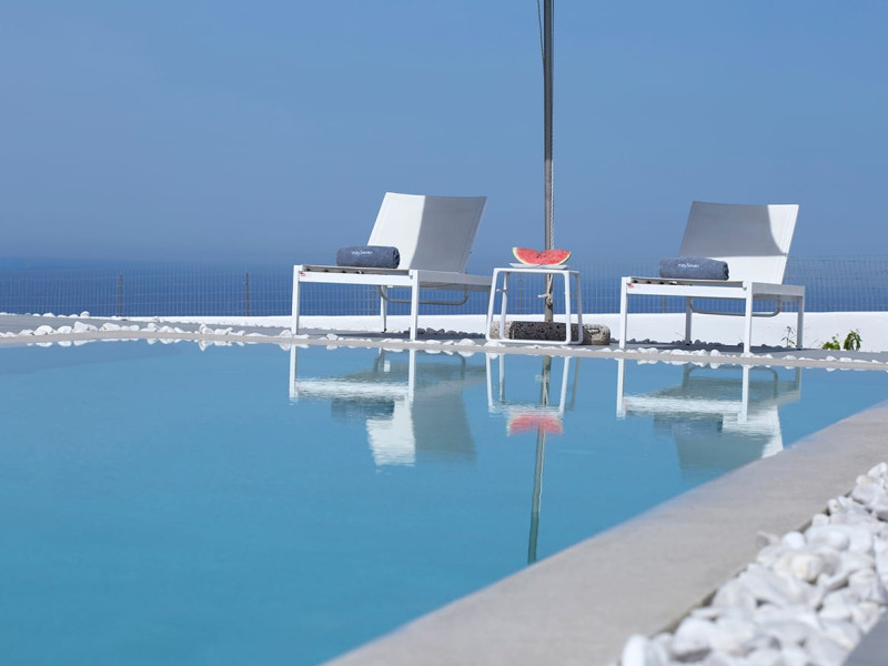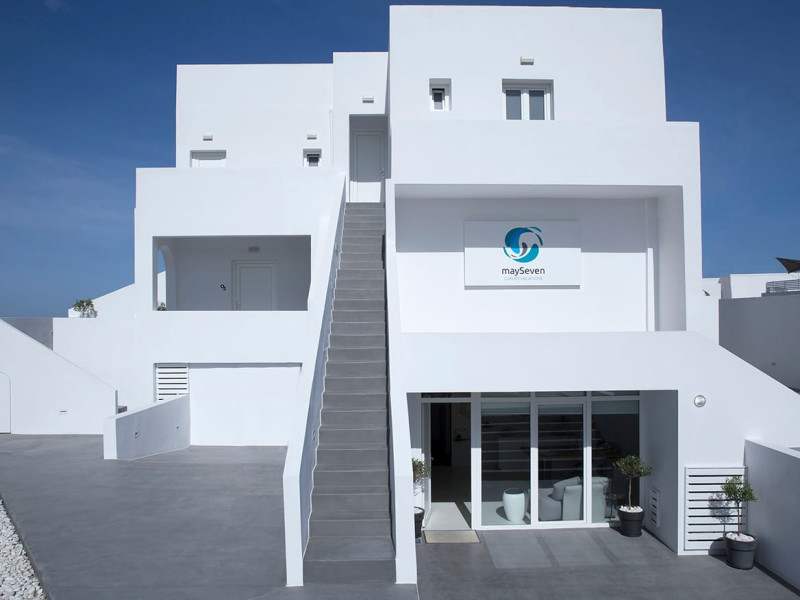 May Seven Luxury Suites is located at Megalochori, one of the most picturesque villages on Santorini island. It offers six luxurious suites, overlooking the Caldera, and an outdoor main pool. Each suite has a private Jacuzzi.May Seven Suites is only a few minutes away from the center of the settlement of Megalochori with the unique and sophisticated atmosphere. Guests may take full advantage of the resort facilities, relax by the pool, borrow a book from the library, enjoy a spa treatment or day dream watching the sunset.