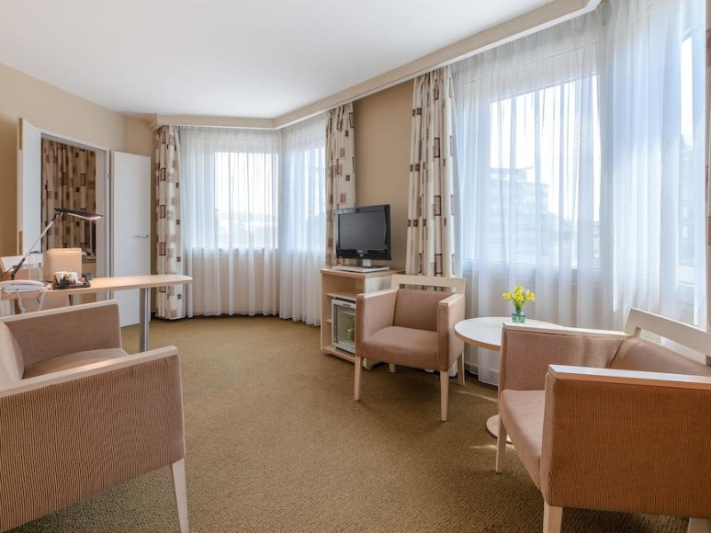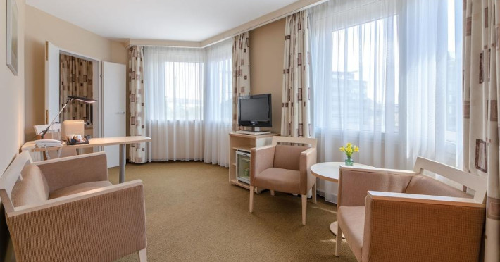 This 4 star hotel is located in the city centre of Budapest and was established in 1990. It is close to the Nemzeti Museum and the nearest station is Kalvin Square. The Hotel has a restaurant, 2 bars, a conference room, a coffee shop and an indoor swimming pool. All 416 rooms are equipped with minibar, hairdryer, safe and air conditioning.