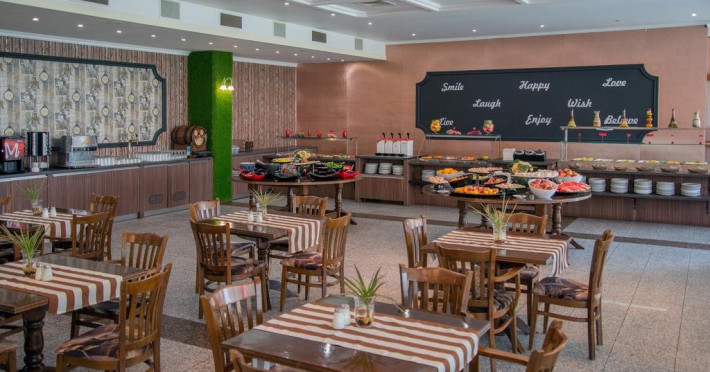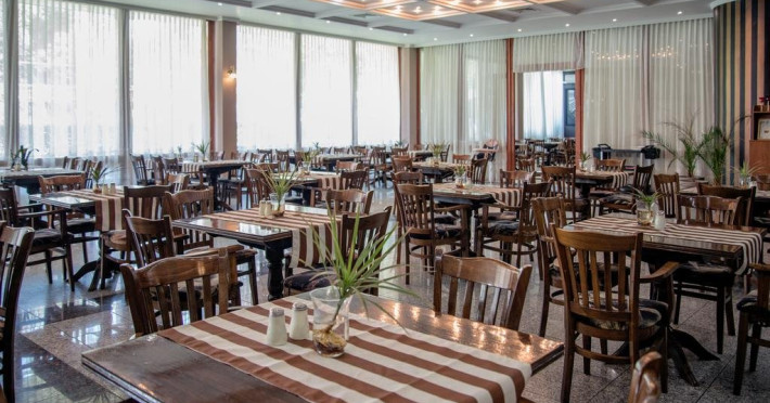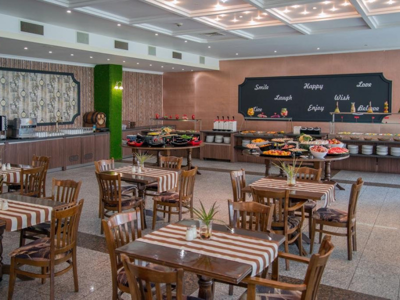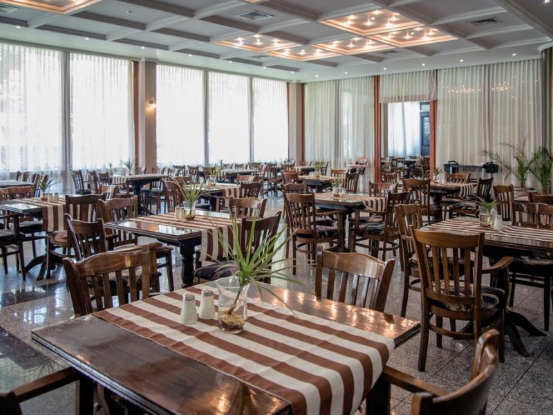 Restaurantul principal: Sala cu aer conditionat pentru nefumatori. Zona de fumat este pe terasa restaurantului. Bufet : *Mic dejun 7.30h - 10.00h - Restaurant principal *Pranz 12.30h - 14.30h - Restaurant principal *Cina - 18.30h - 21.00h - Restaurant principal Bucatarie internationala, inclusiv o gama larga de salate si mancaruri proaspete. Sortiment bogat de fructe si deserturi. Bauturi racoritoare si bauturi alcoolice, bere si vin (produse locale). O data pe saptamana - cina traditionala bulgara, italiana. * Snack House: 12:00 - 17:00 (Snack House la piscina) - meniu saptamanal incl. pizza, hot-dogs, prajituri, clatite, doner kebab, sandviciuri, cartofi prajiti. Nou: masina de floricele de porumb, masina de facut porumb dulce, aparat de facut gheata slushy (Skrezhyna) *Lobby Bar 10.00-23.00: bauturi racoritoare, bere si vin, (produse locale), alcool local si selectat din impor; bauturi, cocktail-uri fara alcool si alcool, bauturi calde - ceai, cafea, lapte *Cocktail Bar: 10.00h-23.00h (bauturi racoritoare, bauturi alcoolice locale si selectate din import bere locala, vin alb si rosu local, cocktail-uri fara alcool si alcool, bauturi calde - ceai,cafea, lapte, ) incluse in Pachetul Premium All Inclusive.