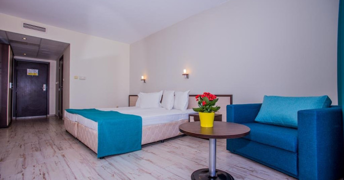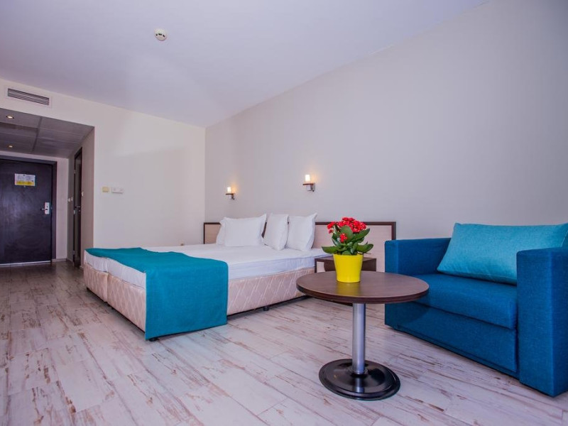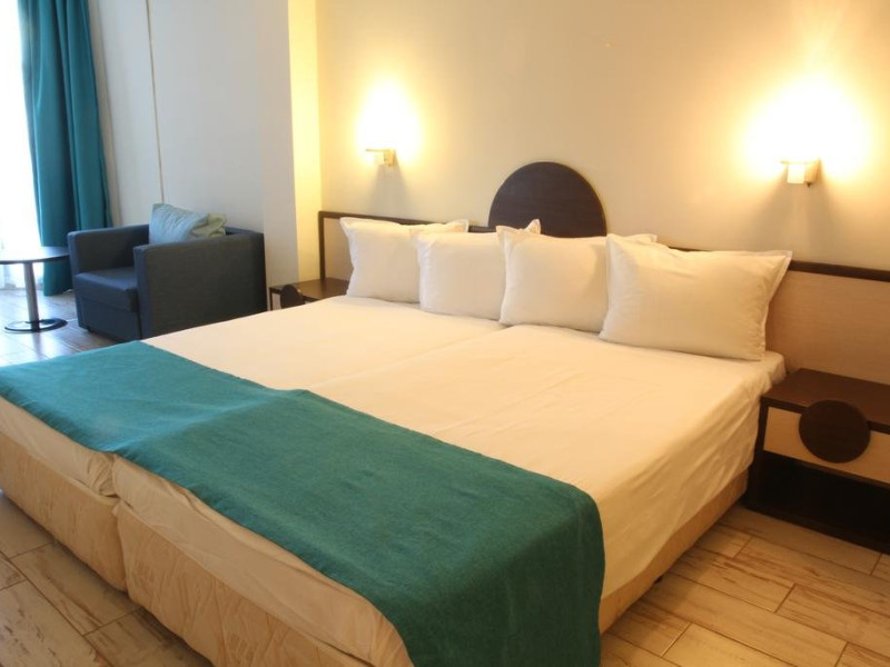 Mancare si bauturi: - Mic dejun tip bufet in restaurantul panoramic principal 07.30 - 10.00 - Fructe si legume proaspete, branza, fulgi de porumb, croissante, clatite, oua, cafea, ceai, sucuri, apa. - Pranz tip bufet la piscina la Restaurantul Meridian 12.30 - 14.30 - Salate proaspete, cartofi prajiti si garnituri, feluri principale, supe, preparate la gratar, pizza, paste, gustari, condimente si dressing-uri, fructe si deserturi. Bauturi: cafea neagra, ceai, apa si bauturi alcoolice si nealcoolice locale. - Gustare de dupa-amiaza 15.00 - 17.00: inghetata, gustari si deserturi la piscina. - Cina tip bufet in restaurantul panoramic principal 18.00 - 21.00 - bucatarie traditionala bulgareasca o data pe saptamana si cine tematice o data pe saptamana. Bauturi - cafea neagra, ceai, apa si bauturi alcoolice si racoritoare locale. - Bauturi la barul restaurantului 11.00 - 23.00: cafea neagra, ceai, apa minerala si bauturi alcoolice si nealcoolice locale - Bauturi la barul de la piscina: 11:00 - 18:00 *Toate bauturile in afara orelor mentionate, precum si toate bauturile alcoolice si nealcoolice importate, sunt disponibile la un cost suplimentar.