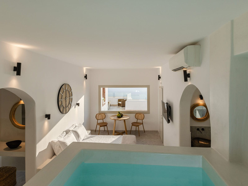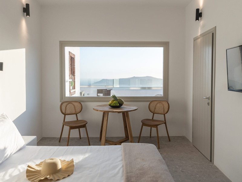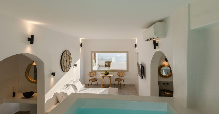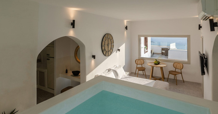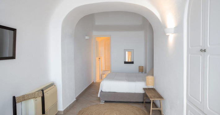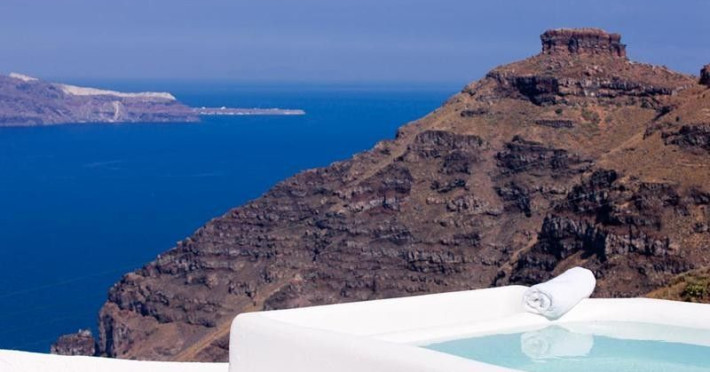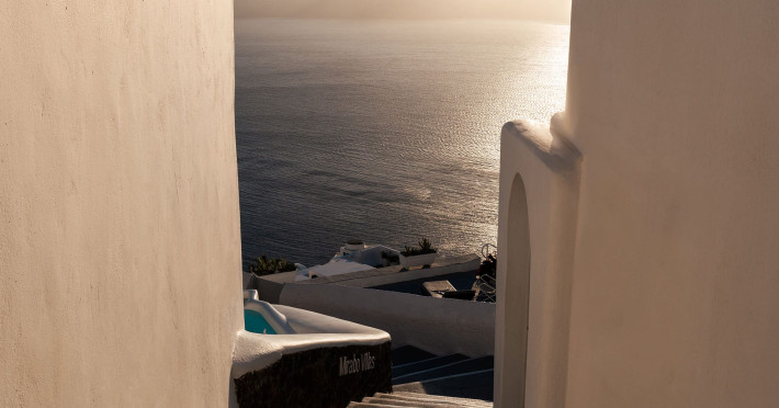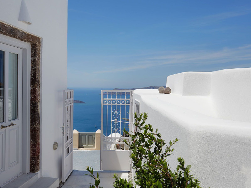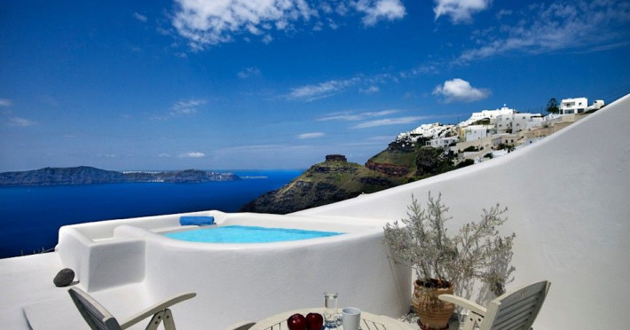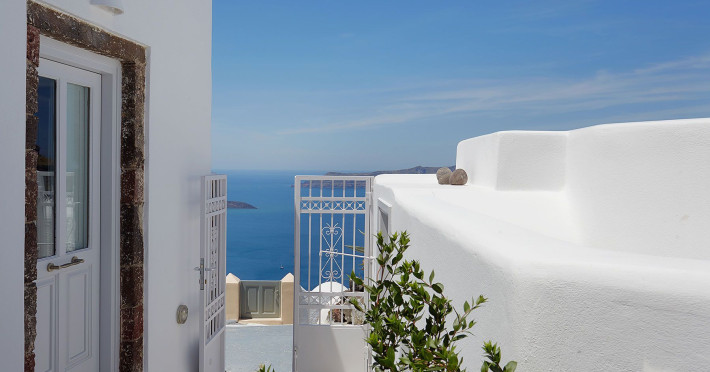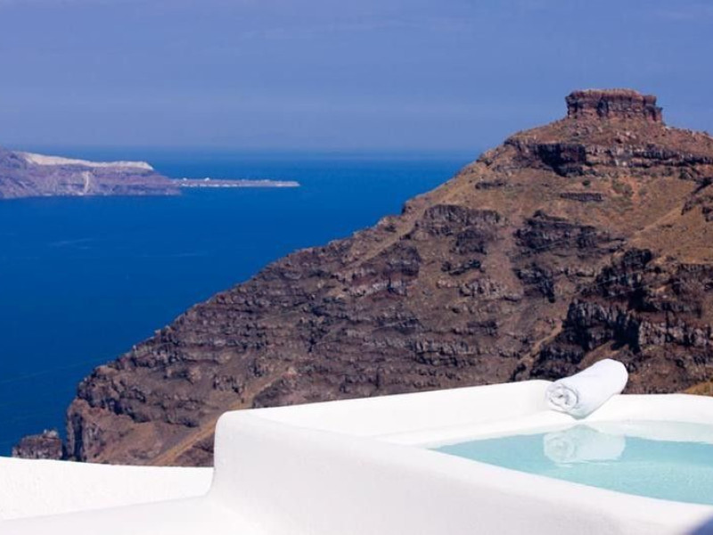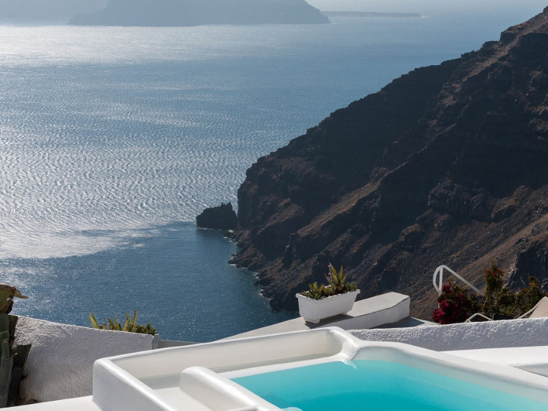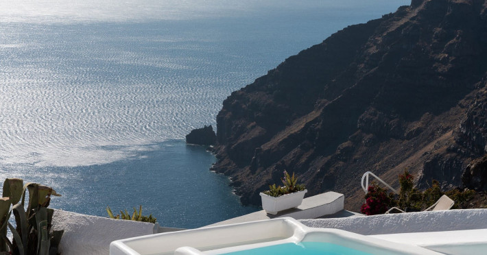 SANTORINI MIRABO VILLAEnjoy the experience of unforgettable holidays in Santorini!Like a house out of an island’s fairytale, Mirabo Villa is a three units property that offers amazing views at the Aegean Sea, the caldera and the famous volcano.Located on the caldera cliffs of Firostefani, Mirabo Villa becomes your shelter and your starting point for discoveringthe island of Santorini.The Mirabo Suite, the Junior Suite and the Cave Studio are the three types of accommodation, three different approaches to real Santorinian yet modern hospitality.Mirabo Villa combines the simple and charming architecture of Santorini with traditional yet elegant decoration,ideal for a romantic and relaxing vacation experience. The breath-taking caldera and sunset views can be enjoyed from the rooms, the outdoor- shared by all three units jacuzzi and the property’s private marble terrace completes with style the Mirabo Villa experience!Kindly note that Mirabo Villas has a limited hours reception service, thus we provide our customers with cell phone which they can use to reach the manager 24/7.The property's manager will also provide all the information regarding your stay at Mirabo Villas, as well as recommendations and proposals about the island of Santorini.