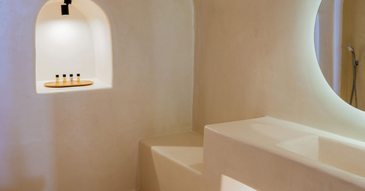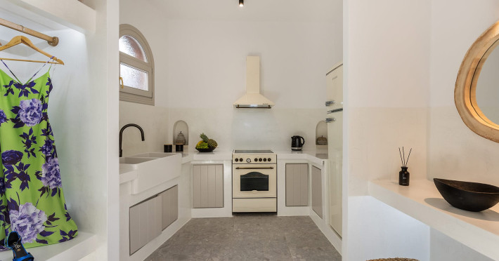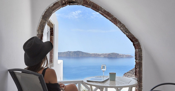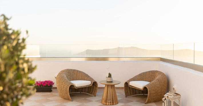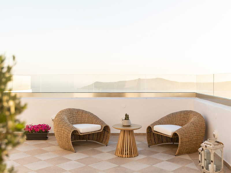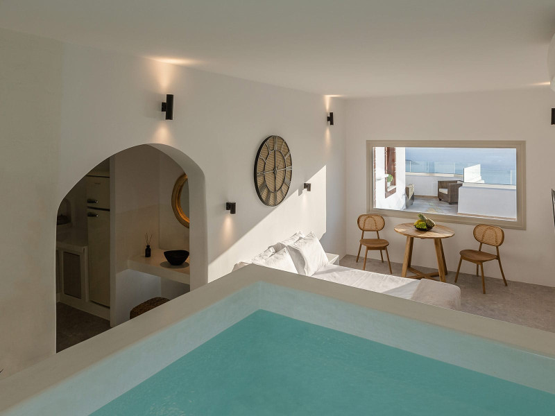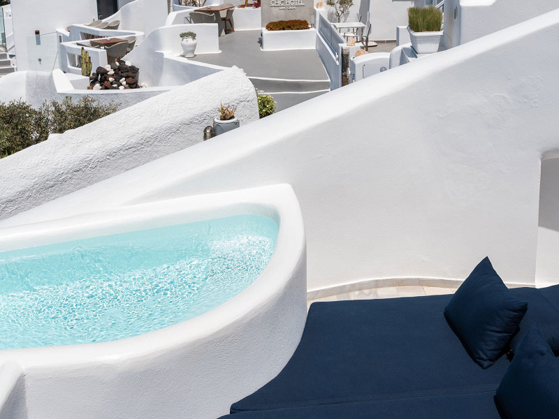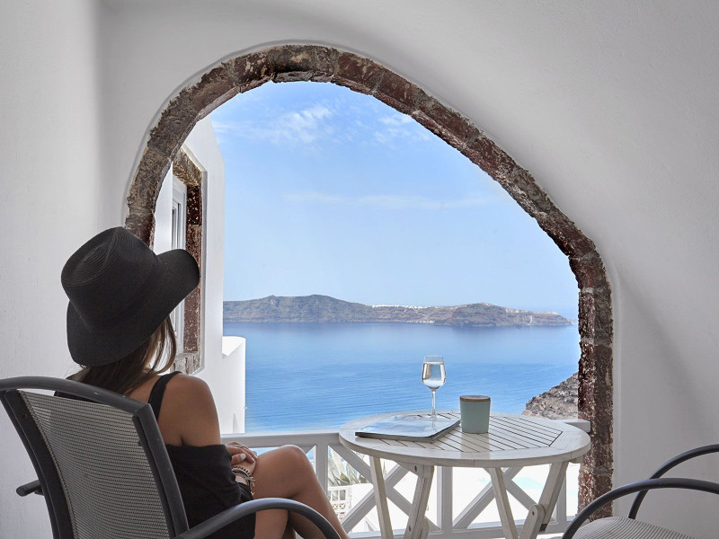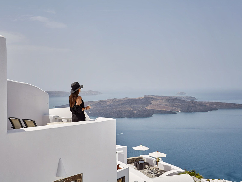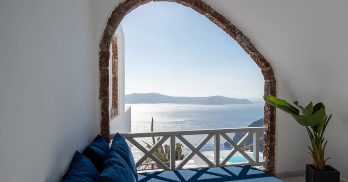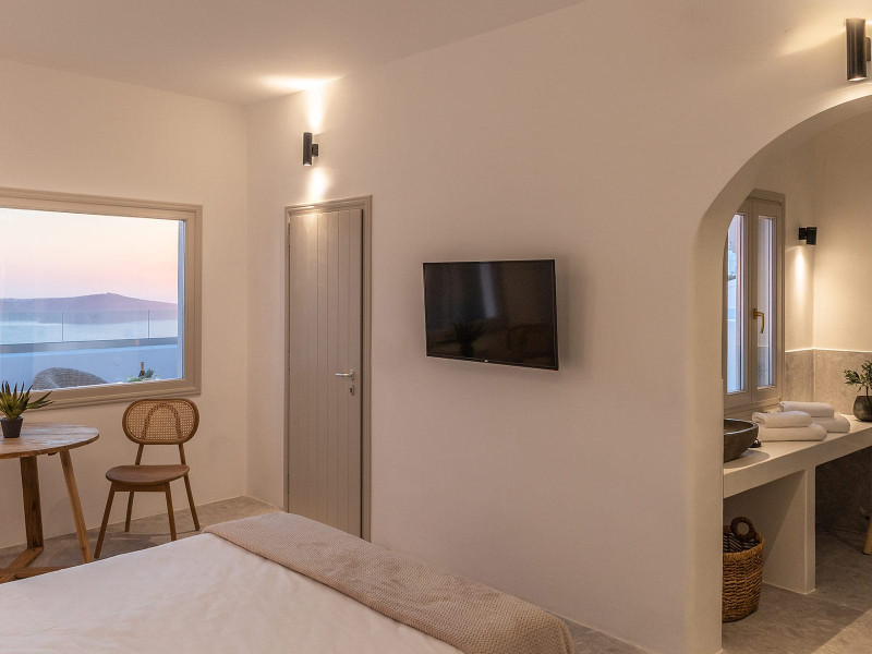 SANTORINI MIRABO VILLAEnjoy the experience of unforgettable holidays in Santorini!Like a house out of an island’s fairytale, Mirabo Villa is a three units property that offers amazing views at the Aegean Sea, the caldera and the famous volcano.Located on the caldera cliffs of Firostefani, Mirabo Villa becomes your shelter and your starting point for discoveringthe island of Santorini.The Mirabo Suite, the Junior Suite and the Cave Studio are the three types of accommodation, three different approaches to real Santorinian yet modern hospitality.Mirabo Villa combines the simple and charming architecture of Santorini with traditional yet elegant decoration,ideal for a romantic and relaxing vacation experience. The breath-taking caldera and sunset views can be enjoyed from the rooms, the outdoor- shared by all three units jacuzzi and the property’s private marble terrace completes with style the Mirabo Villa experience!Kindly note that Mirabo Villas has a limited hours reception service, thus we provide our customers with cell phone which they can use to reach the manager 24/7.The property's manager will also provide all the information regarding your stay at Mirabo Villas, as well as recommendations and proposals about the island of Santorini.
