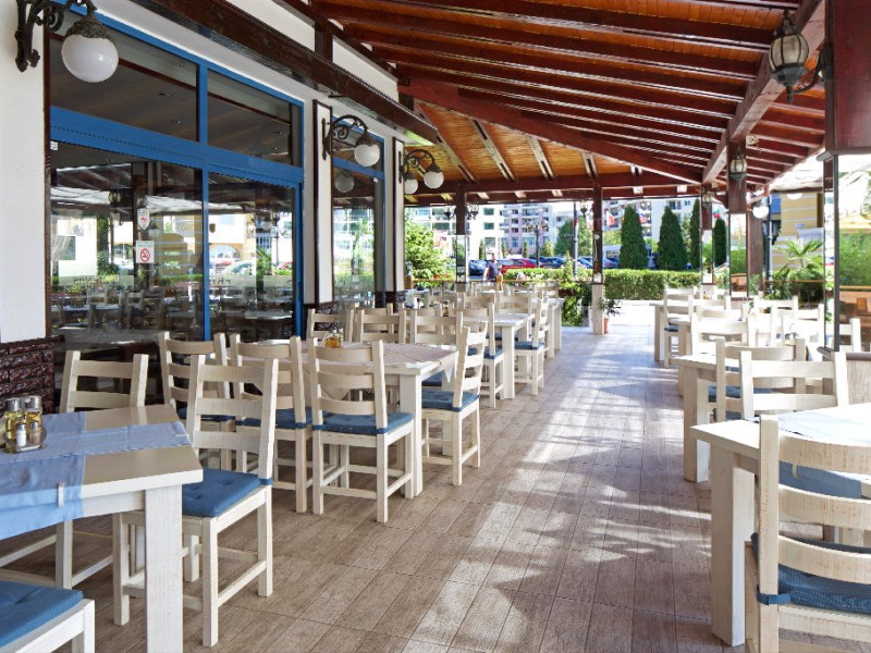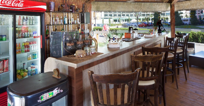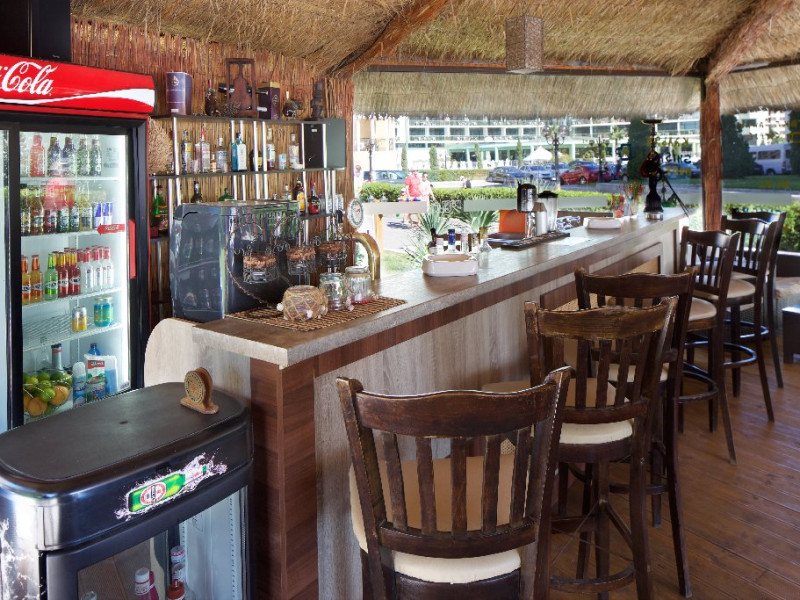- Pool Bar- la mijlocul meselor si bauturi 10:00 - 22:00 - cafea, ceai, bauturi racoritoare, bere la halba si vin si inghetata. Selectie de bauturi bulgaresti si importate cu un continut ridicat de alcool - contra cost. De la 10:00 la 11:00 si de la 15:00 la 17:00. - Delicii dulci si sarate, sandvisuri si fructe. - Lobby bar /08:00 - 22:00/ - cafea, ceai, bauturi racoritoare si vin, bauturi alcoolice bulgare si din import - contra cost.