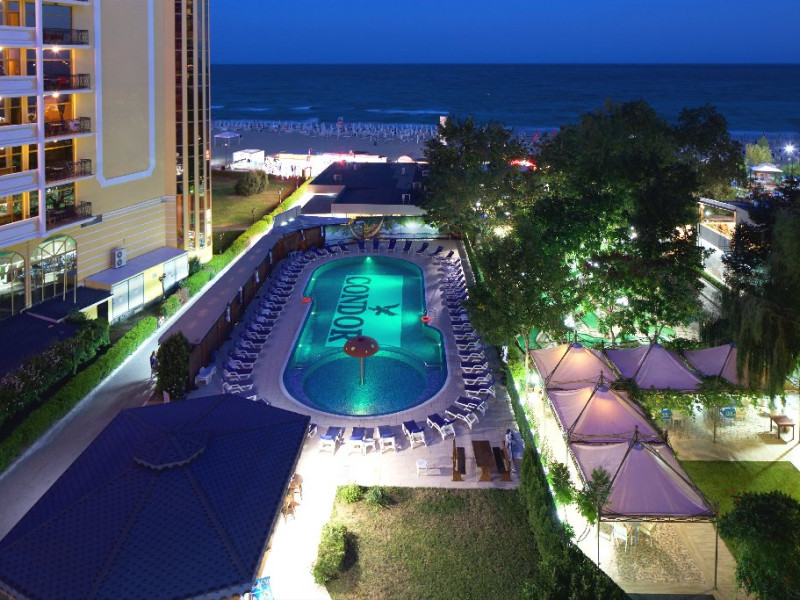 MPM Hotel Condor se afla la doar cativa metri sau exact 88 de pasi de plaja cu cel mai fin nisip de pe coasta bulgara a Marii Negre. Situat in partea mai linistita a animatului Sunny Beach, hotelul functioneaza in regim All Inclusive Light si ofera oaspetilor sai facilitatile necesare. Centrul orasului Sunny Beach este la 2 km, orasul vechi din Nessebar este la 8 km, iar cel mai apropiat oras este Burgas, la 38 km. Plaja este la 3 minute de mers pe jos de hotel, iar Action Aquapark Attraction este la 6 minute de mers cu masina. In apropierea hotelului se afla restaurante si fast-food, un bar, un punct medical si o farmacie. Cazare: Hotelul este format dintr-o cladire pe 11 etaje, cu 3 lifturi pentru confortul oaspetilor. Hotelul ofera cazare confortabila in 144 de camere duble. DBL 2+1: aprox18 m2. Camera are vedere la gradina, la oras sau la piscina. Are doua paturi de o persoana care pot fi separate sau conectate ca dormitor si o canapea extensibila. Fiecare camera are zona de relaxare, aer conditionat individual, telefon, TV cu ecran plat cu canale prin cablu, mini-frigider, WiFi, baia are dus, uscator de par si articole de toaleta. Camerele au balcon. Capacitatea maxima este de 2 adulti si 1 copil sau 3 adulti. DBL 2+1 SEA: aprox18 m2. Camera are vedere la mare si are doua paturi de o persoana care pot fi separate sau conectate ca dormitor si o canapea extensibila. Fiecare camera are zona de relaxare, aer conditionat individual, telefon, TV cu ecran plat cu canale prin cablu, mini-frigider, WiFi, baie cu dus, uscator de par si articole de toaleta. Camerele au balcon. Cazarea maxima este de 2 adulti si 1 copil sau 3 adulti. *Nu este permisa gazduirea unui copil peste capacitatea maxima a camerei. Un patut de copii este disponibil gratuit la cerere prealabila. Animalele de companie nu sunt permise. Hotelul si facilitatile adiacente nu sunt potrivite pentru oaspetii cu dizabilitati. Despre hotel: Hotelul dispune de restaurant principal cu gradina, lobby bar, bar la piscina, piscina exterioara cu sectiune pentru copii precum si umbrele si sezlonguri la piscina, Wi-Fi gratuit in tot hotelul, sala de jocuri linistita, parcare. Sport si SPA: Piscina in aer liber cu umbrele si sezlonguri, sala de sport.
