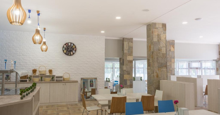 Restaurant principal cu terasa in aer liber si bucatarie deschisa - Bucatarie internationala - Mic dejun tip bufet /07:30 - 10:00/ - SELEC T ie larga de mese, fructe proaspete, legume, produse de patiserie, bauturi calde, bauturi racoritoare, apa si o gama larga de sucuri racoritoare - Pranz tip bufet /12:00 - 14:00/ - salate, supe, aperitive, feluri principale, deserturi, fructe, apa, bauturi racoritoare, bere la halba, vin, bauturi alcoolice locale si de import - Cina tip bufet /18:00 - 21:00/ - salate, supe, aperitive, feluri principale, deserturi, fructe, apa, bauturi racoritoare, bere la halba, vin, bauturi alcoolice locale si de import * Un cod vestimentar casual, elegant este recomandat in restaurant. * Optiuni vegetariene si dietetice disponibile. * Bufet pentru copii disponibil. Snack Bar /10:00 - 17:30/ - inghetata, mezeluri, sandvisuri, dulciuri, fructe si legume proaspete, pizza, bauturi racoritoare, bauturi calde, bere la halba Snack Bar /22:00 - 23:00/ - sandvisuri, dulciuri, fructe si legume proaspete, pizza, bauturi racoritoare, bauturi calde, bere la halba Lobby bar /07:30 - 23:00/ - bauturi calde, inclusiv cafea espresso, bauturi racoritoare, cocktailuri racoritoare, bere la halba, vin, vin spumant, o SELEC T ie de bauturi alcoolice locale si importate * Bauturile alcoolice sunt disponibile dupa ora 10:00. Bar la piscina /09:00 - 23:00/ - bauturi calde, bauturi racoritoare, cocktail-uri racoritoare, bere la halba, vin, vin spumant, o SELEC T ie de bauturi alcoolice locale si importate *Bauturile alcoolice sunt disponibile dupa ora 10:00. Beach Bar /10:00 - 18:00/ - bere la halba, bauturi calde, bauturi racoritoare, apa Sport si divertisment: /din 01.06/ Umbrela si doua sezlonguri per camera in jurul piscinei sau pe PLAJA (in functie de disponibilitate) * Zona Hotel Beach este situata in randurile mai linistite din spate de pe plaja. Piscina exterioara cu sectiune pentru copii Animatie adulti / din 01.06/ - activitati sportive si jocuri - de 6 ori pe saptamana Tenis de masa si darts Wi-Fi pe teritoriul hotelului Calcat la cerere la receptie Depozitare bagaje Apa minerala in camera zilnic Suvenir de bun venit in camera la check-in