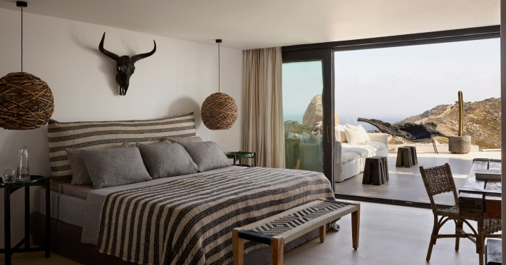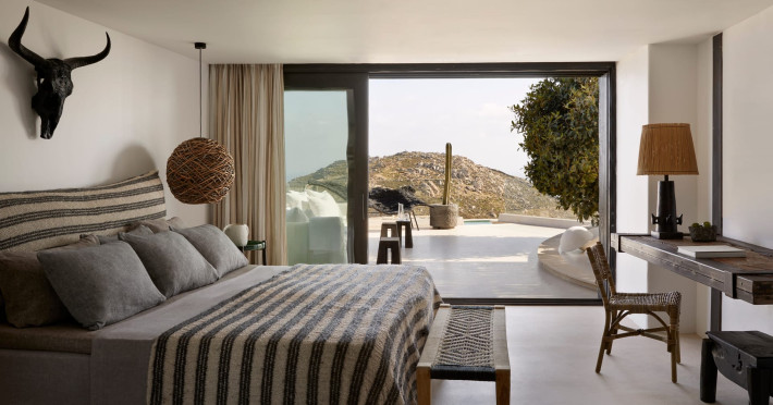 Located on Elia beach ridge, 12km from the airport/port, Panoptis enjoys stunning views from the Sunrise to the Sunset. It is accessed via a country road or via the regular road through the Myconian Collection resort. Easy access within five minutes to the beach of Elia in a reserved area with sunbeds and umbrellas.Easy access to all the Myconian Collection Resort hotels, spas, and boutiques. Panoptis Escape combines modern and traditional Mykonian architecture, well protected from the winds. All villas feature high-end design and technology.Please note that in our resort we welcome children over 8 years old.VILLA EXPERIENCE & UNIQUE VILLAS EXCLUSIVE SERVICES• Escort to your Villa by the Villa Manager• Groceries and shopping service *• Packing & unpacking service *• Butler service '• In-house chef services*Upon request (extra cost)