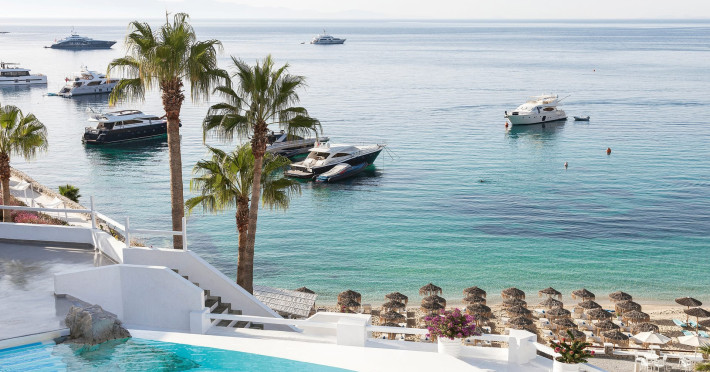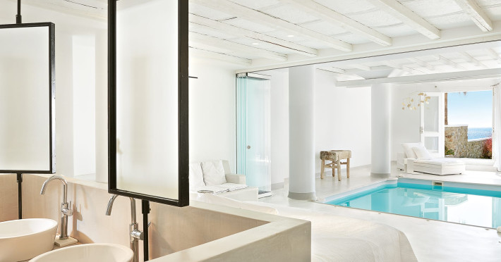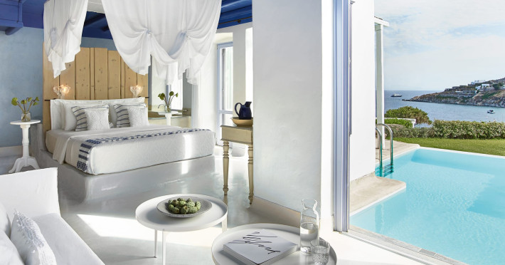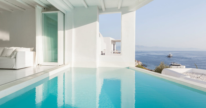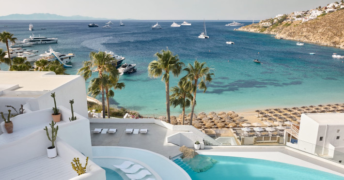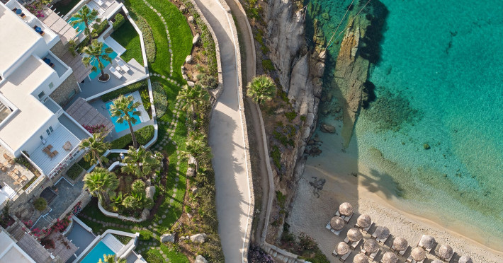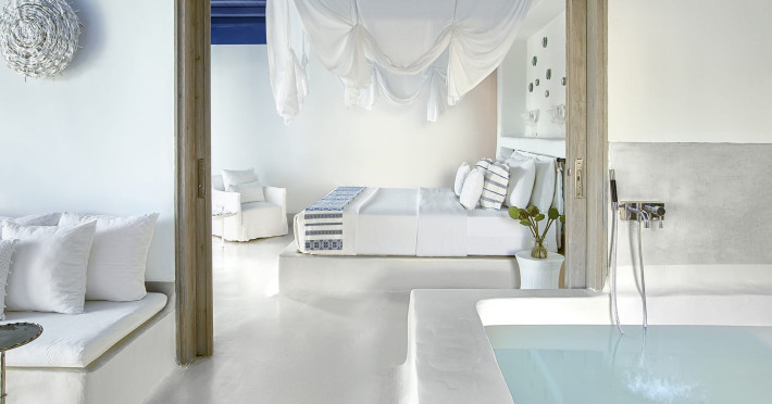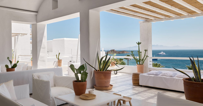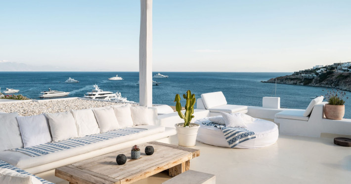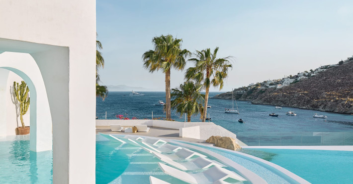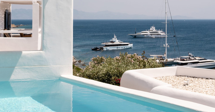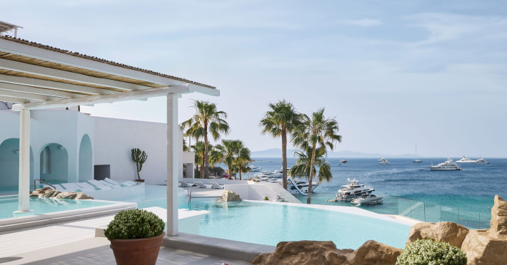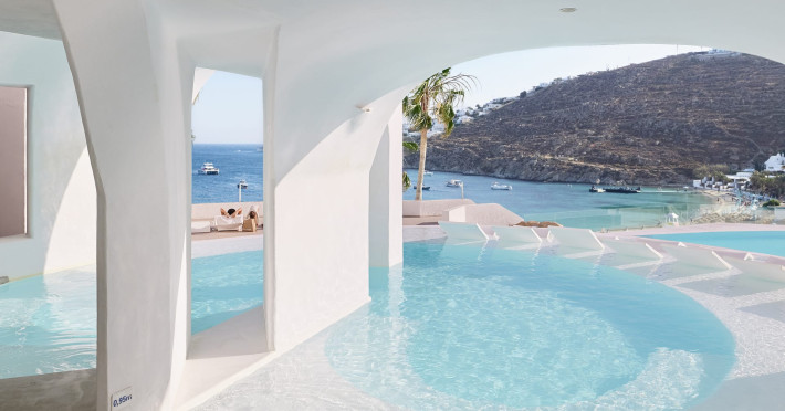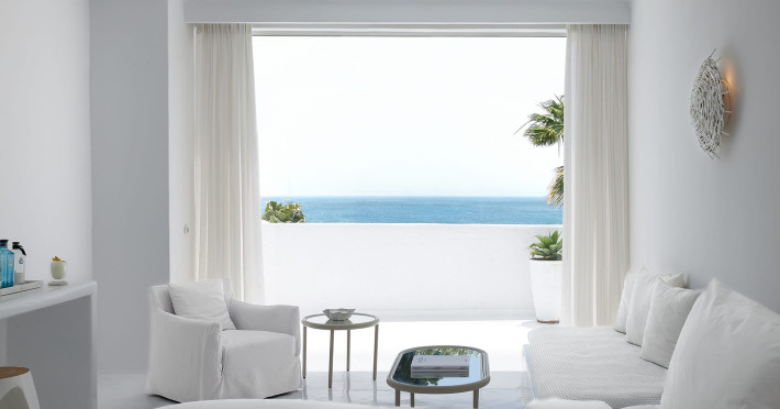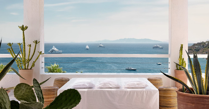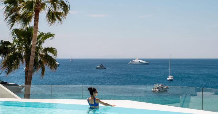 A Cycladic Icon on the most celebrated beach of the island. At Psarou, the air feels luxe and mystifying. Mykonos Blu gazes at the Aegean Sea and the superyachts. Its Cycladic architecture enhanced, it’s where the Glitterati meet and breathe in the views – the best in Mykonos.