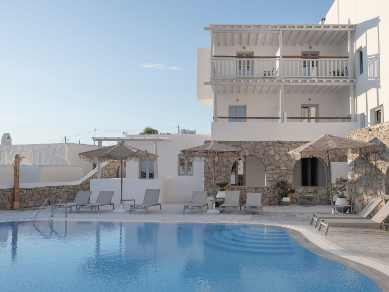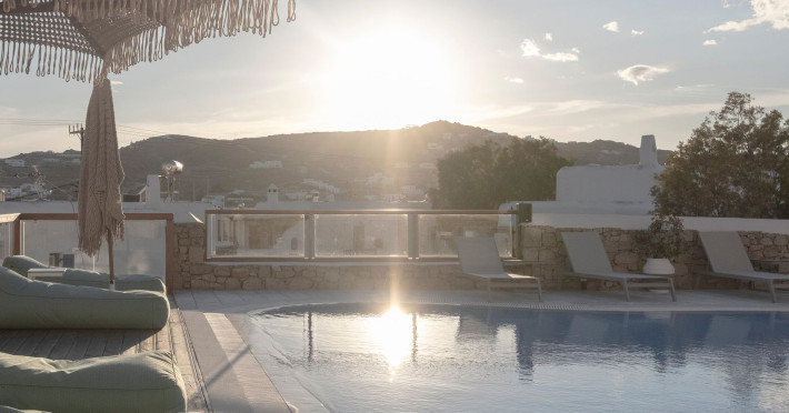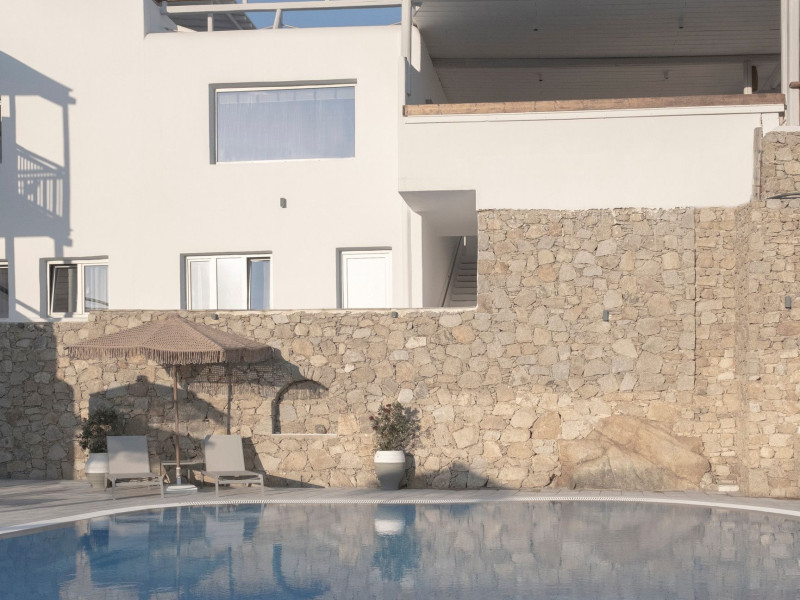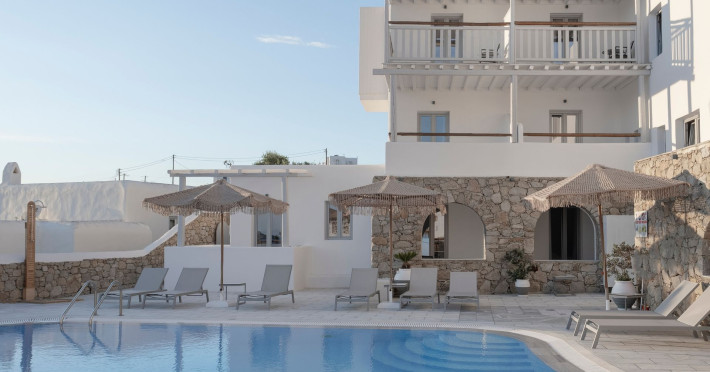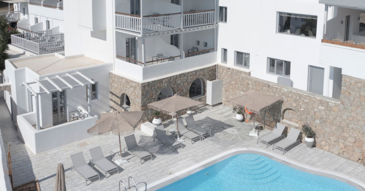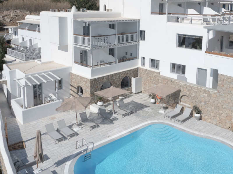 Mykonos Essence Adults Only Hotel, an intimate complex of 29 rooms, is located just above Ornos Beach on Mykonos Island, Greece which is a part of the Cyclades island complex in the middle of the Aegean Sea. The nearest beaches from Mykonos Essence Hotel are the beaches of Ornos and Korfos at 250 and 350 meters away respectively. The position of hotel Mykonos Essence provides guests with a breathtaking view of the Aegean Sea and Ornos Beach.Mykonos Essence Hotel, an intimate complex of 29 rooms, is located just above Ornos Beach on Mykonos Island, Greece which is a part of the Cyclades island complex in the middle of the Aegean Sea. The nearest beaches from Mykonos Essence Hotel are the beaches of Ornos and Korfos at 250 and 350 meters away respectively. The position of hotel Mykonos Essence provides guests with a breathtaking view of the Aegean Sea and Ornos Beach.