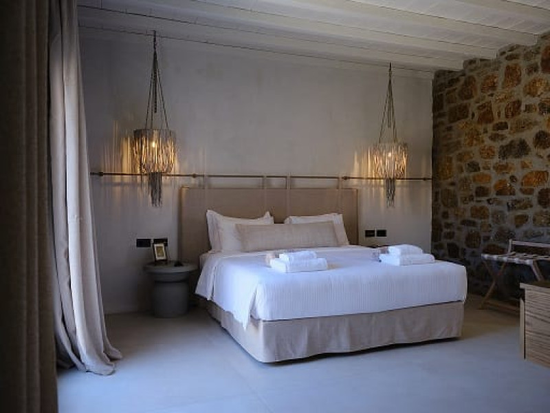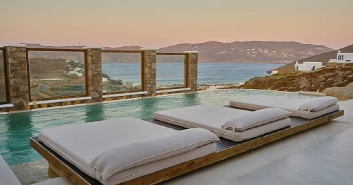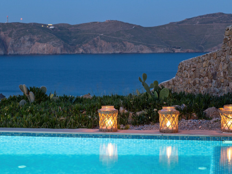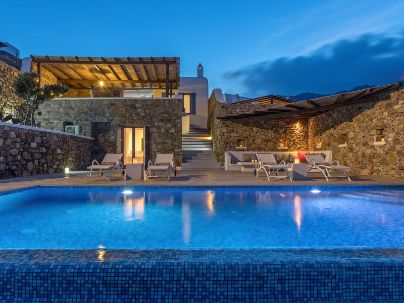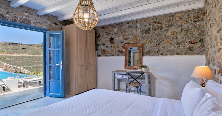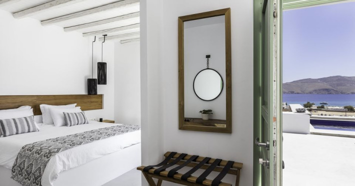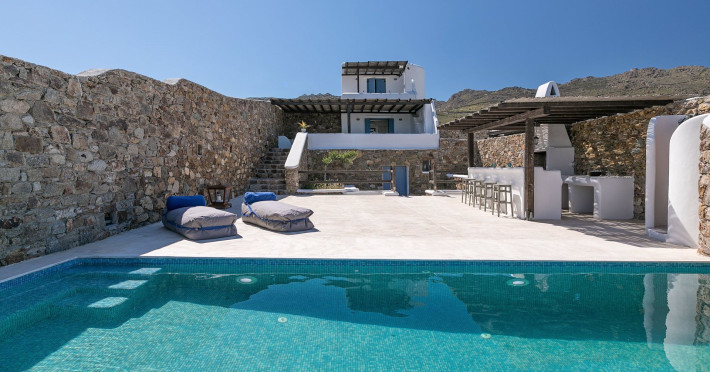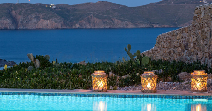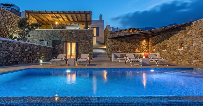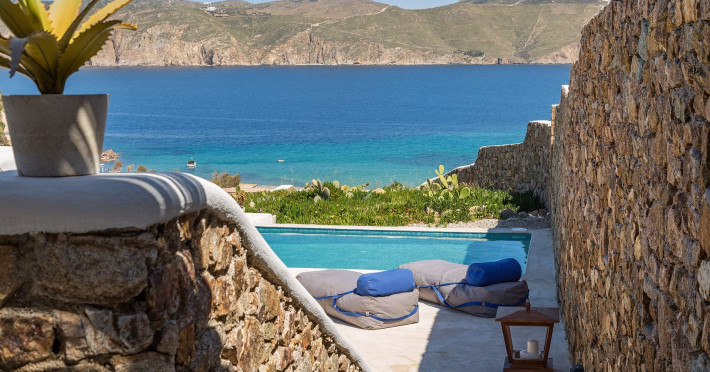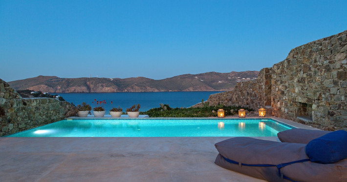 Set within a gated community overlooking stunning Panormos Bay, Mykonos Panormos Villas’ 27 luxury private pool villas and suites, range in size from 1-7 bedrooms. They offer spectacular views of the sea, the sand and the untamed hillsides. Set on 55,000 sq.meters the villas are situated in one of the most scenic areas of the island. They are located 300 meters from Panormos Beach, the well known Principote Beach Bar and Restaurant, 1km from Agios Sostis Beach and only 5km from Mykonos Town, the airport and port. The property has been designed to integrate tailor made experiences and understated elegance with the leisurely island lifestyle and vibrant nightlife that has made Mykonos a world class destination. Mykonos Panormos Villas provide the perfect combination of privacy, services, natural beauty and location.Our goal is to indulge our guests every whim and provide them with personalized service, including reception and concierge services, complimentary maid service every other day, room service, private transfers and event planning. With a large variety of tailor made services and gastronomy, plenty of interior and exterior living spaces, beautiful private pools and resident and guest parking the villas are an ideal choice for families, friends, couples and groups who want to experience a relaxed luxury holiday.