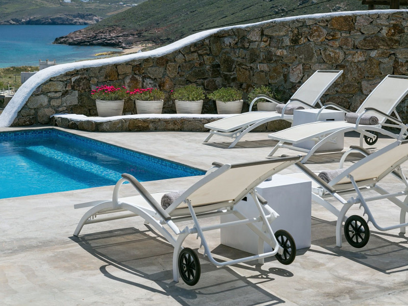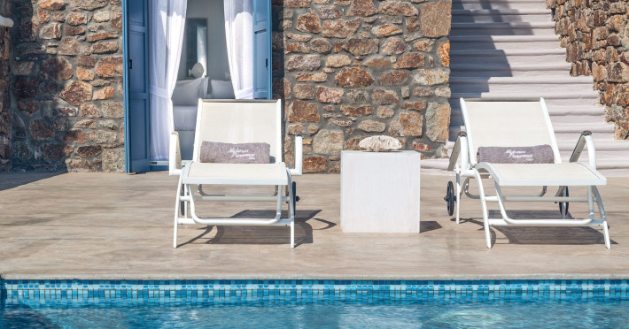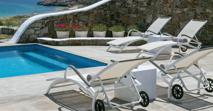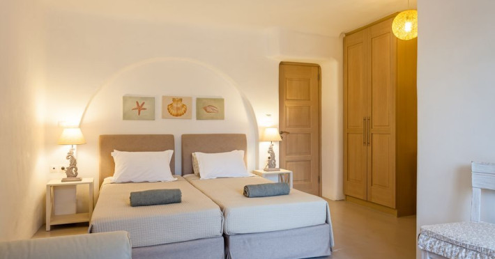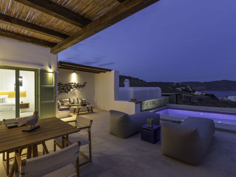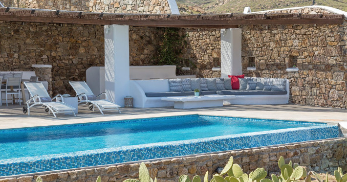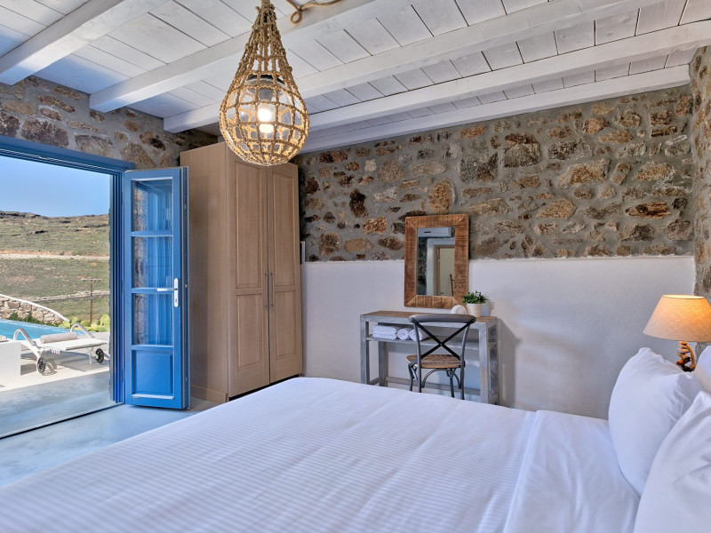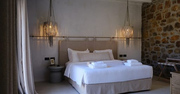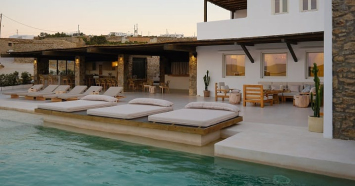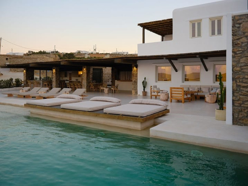 Set within a gated community overlooking stunning Panormos Bay, Mykonos Panormos Villas’ 27 luxury private pool villas and suites, range in size from 1-7 bedrooms. They offer spectacular views of the sea, the sand and the untamed hillsides. Set on 55,000 sq.meters the villas are situated in one of the most scenic areas of the island. They are located 300 meters from Panormos Beach, the well known Principote Beach Bar and Restaurant, 1km from Agios Sostis Beach and only 5km from Mykonos Town, the airport and port. The property has been designed to integrate tailor made experiences and understated elegance with the leisurely island lifestyle and vibrant nightlife that has made Mykonos a world class destination. Mykonos Panormos Villas provide the perfect combination of privacy, services, natural beauty and location.Our goal is to indulge our guests every whim and provide them with personalized service, including reception and concierge services, complimentary maid service every other day, room service, private transfers and event planning. With a large variety of tailor made services and gastronomy, plenty of interior and exterior living spaces, beautiful private pools and resident and guest parking the villas are an ideal choice for families, friends, couples and groups who want to experience a relaxed luxury holiday.