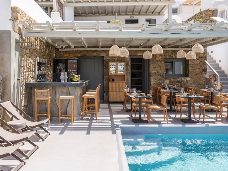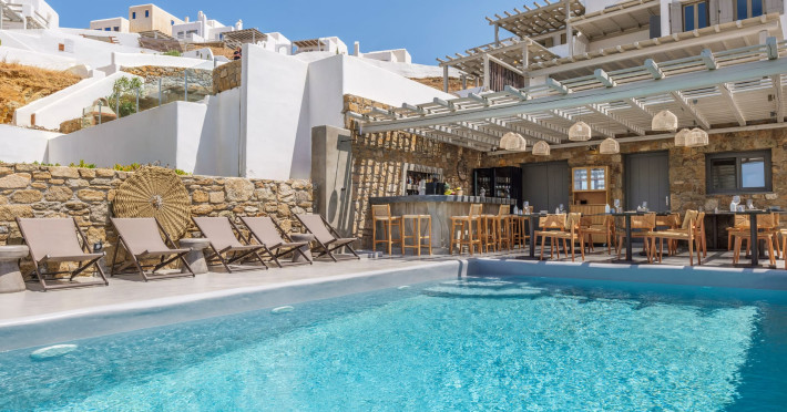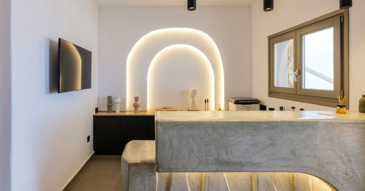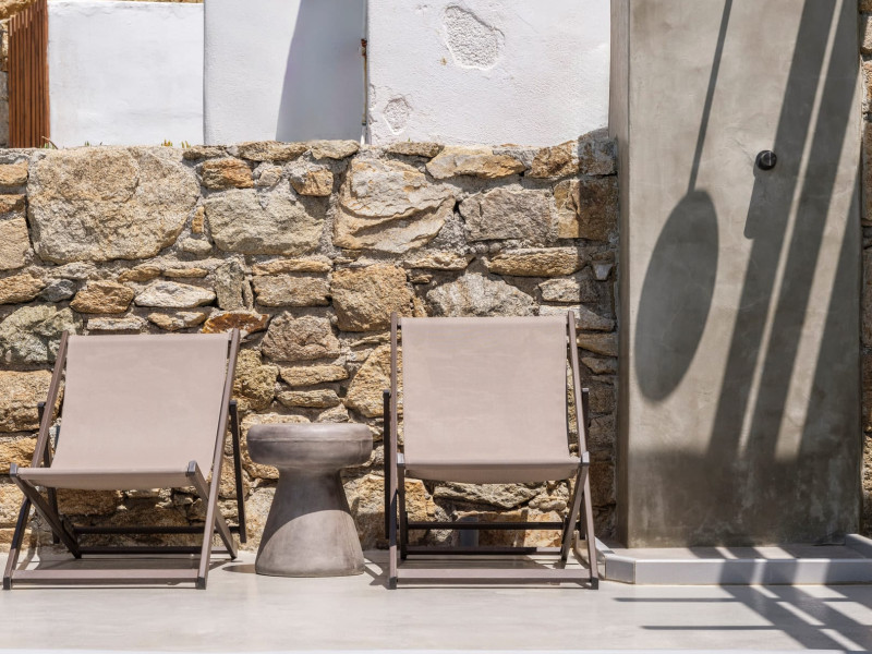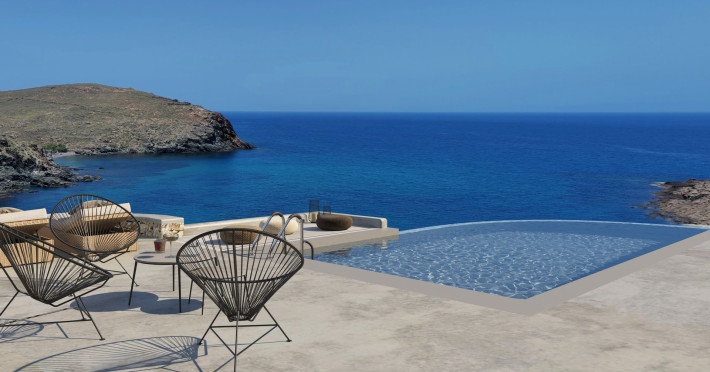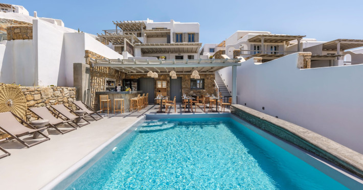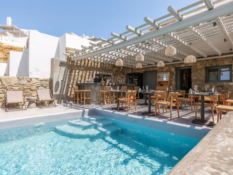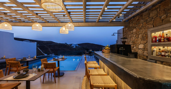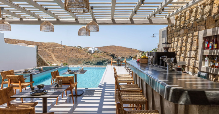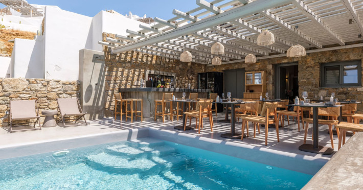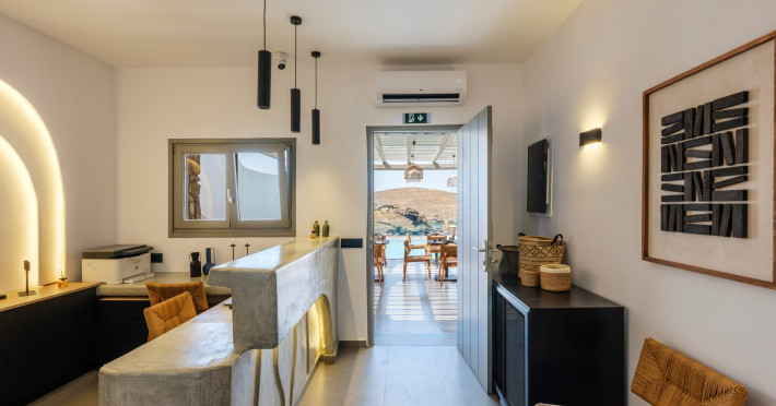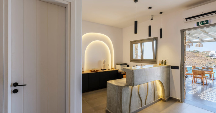 Mykonos Residence Villas & Suites, is literally on the beach of Merchia, one of the best beaches on the eastern side of the island, an unexpected hideaway in Mykonos. Merchia Beach remains natural and authentic as the few local residents know and enjoy.The complex of residences combine minimal style with traditional cycladic architecture featuring elegantly designed spaces with state-of-the-art amenities.The complex consists of individual suites & villas with 1,2,3 and 4 bedrooms fully equipped with all modern comforts ideal for all kinds of guests. Each property holds its own private pool or jacuzzi or hydromassage, elegant outdoor dining and sitting area, and master bedrooms with en-suite bathrooms.You can always join Votsalo, the all day pool/bar restaurant of our complex that offers delicious Greek breakfast, coffees, drinks & coctails, brunch - lunch and dinner from 9am to 11pm every day. Our philosophy revolves around impeccable hospitality and quality service in order to create a unique and unforgettable experience for travelers that seek to discover the unparalleled magic of Mykonos.Amazing and UNIQUE views to the sea from all residences.The cosmopolitan centre of Mykonos town, featuring an array of premium boutiques and high-end restaurants, is 12 km away from our residences.Kalafatis Beach lies within 6,5 km. Mykonos Airport is 13 km away from the residence. Ano Mera, traditional village is only 4km from the residence with a marvellous square full of restaurants, cafes, super market, pharmacy and playground for our little friends.
