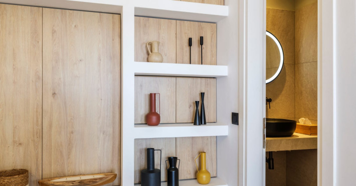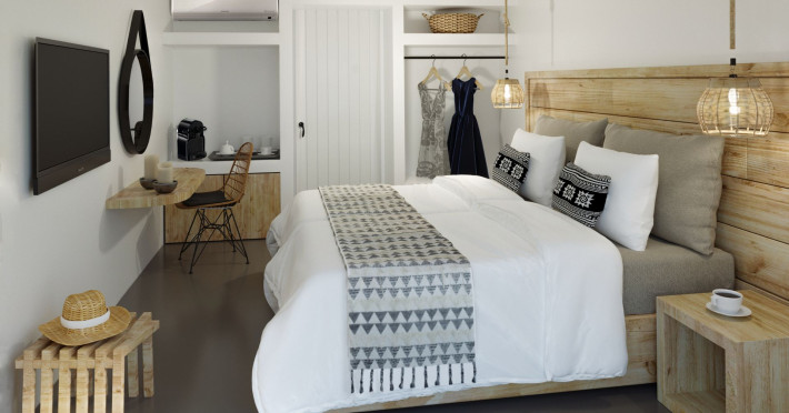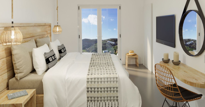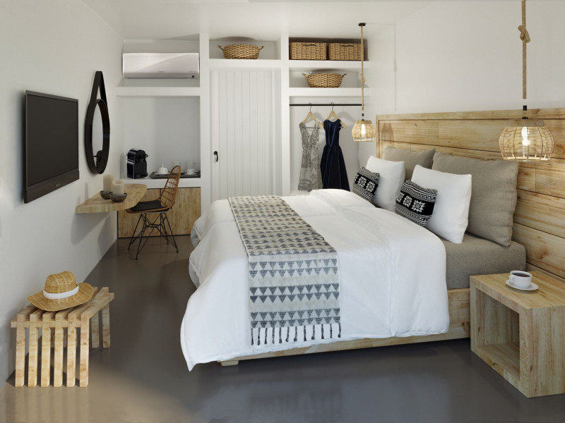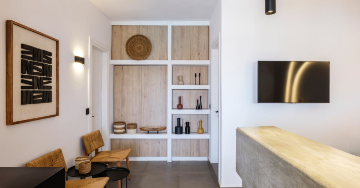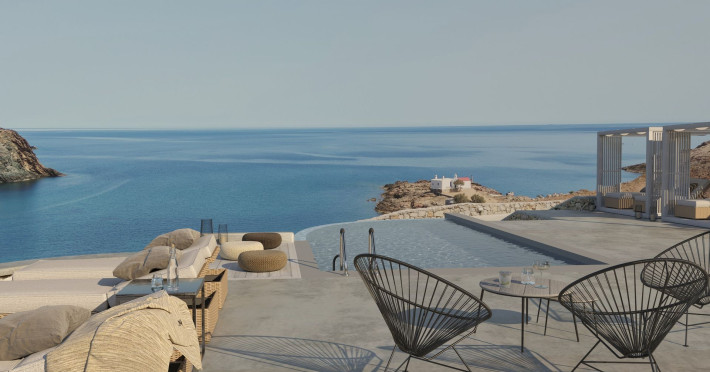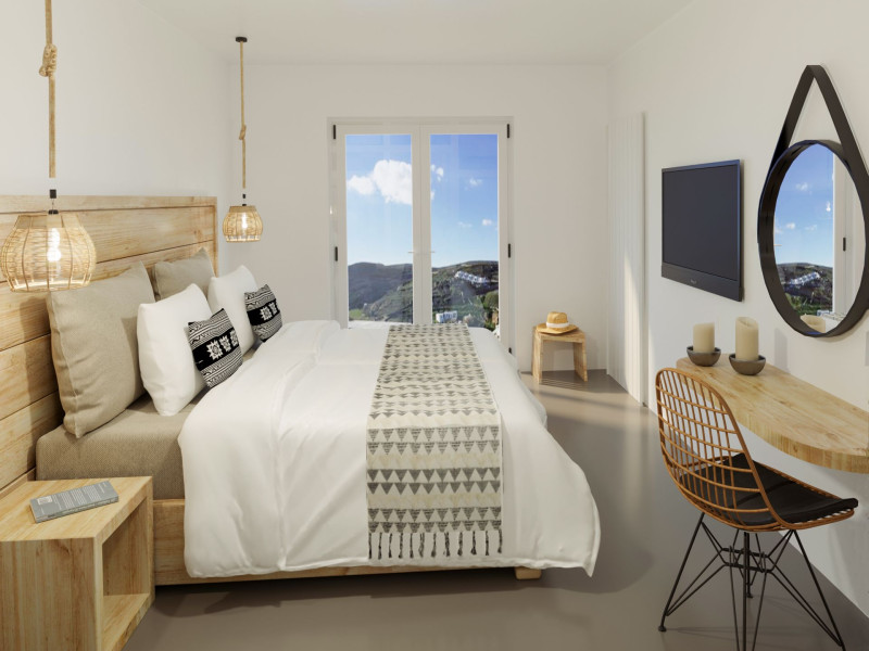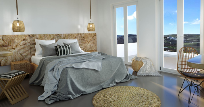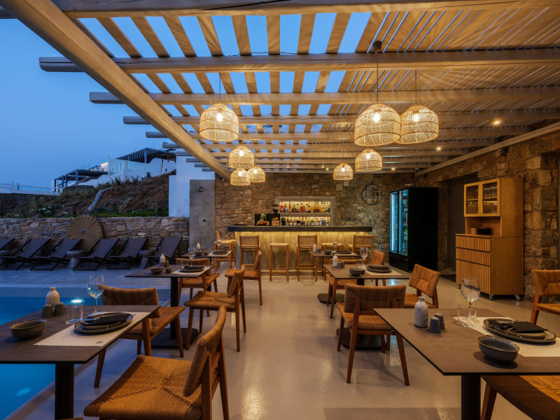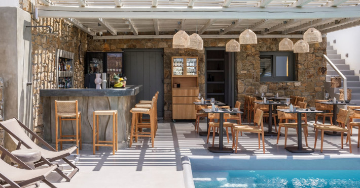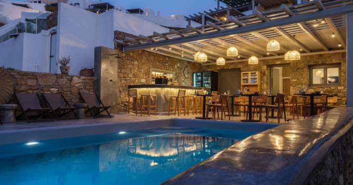 Mykonos Residence Villas & Suites, is literally on the beach of Merchia, one of the best beaches on the eastern side of the island, an unexpected hideaway in Mykonos. Merchia Beach remains natural and authentic as the few local residents know and enjoy.The complex of residences combine minimal style with traditional cycladic architecture featuring elegantly designed spaces with state-of-the-art amenities.The complex consists of individual suites & villas with 1,2,3 and 4 bedrooms fully equipped with all modern comforts ideal for all kinds of guests. Each property holds its own private pool or jacuzzi or hydromassage, elegant outdoor dining and sitting area, and master bedrooms with en-suite bathrooms.You can always join Votsalo, the all day pool/bar restaurant of our complex that offers delicious Greek breakfast, coffees, drinks & coctails, brunch - lunch and dinner from 9am to 11pm every day. Our philosophy revolves around impeccable hospitality and quality service in order to create a unique and unforgettable experience for travelers that seek to discover the unparalleled magic of Mykonos.Amazing and UNIQUE views to the sea from all residences.The cosmopolitan centre of Mykonos town, featuring an array of premium boutiques and high-end restaurants, is 12 km away from our residences.Kalafatis Beach lies within 6,5 km. Mykonos Airport is 13 km away from the residence. Ano Mera, traditional village is only 4km from the residence with a marvellous square full of restaurants, cafes, super market, pharmacy and playground for our little friends.