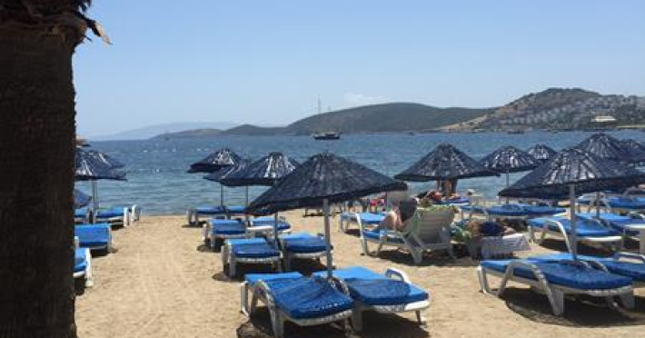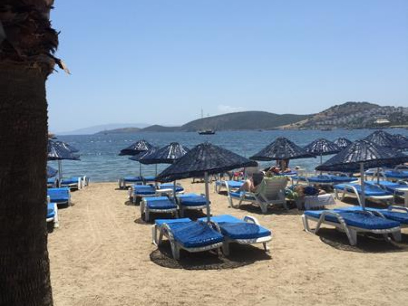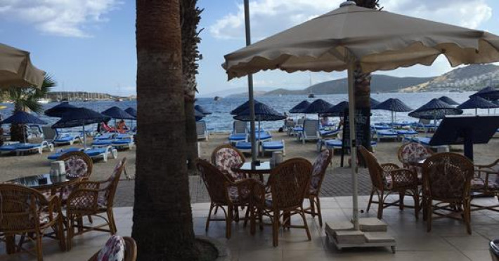 A well-established beachfront hotel with its own section of the beach with complimentary sun loungers and parasols. There are spacious gardens with a large pool and sun-bathing terrace, a bar and an a la carte restaurant, all facing the beachfront. Built in the low-rise, white washed blocks that are a style typical to the Bodrum area.
