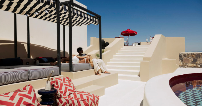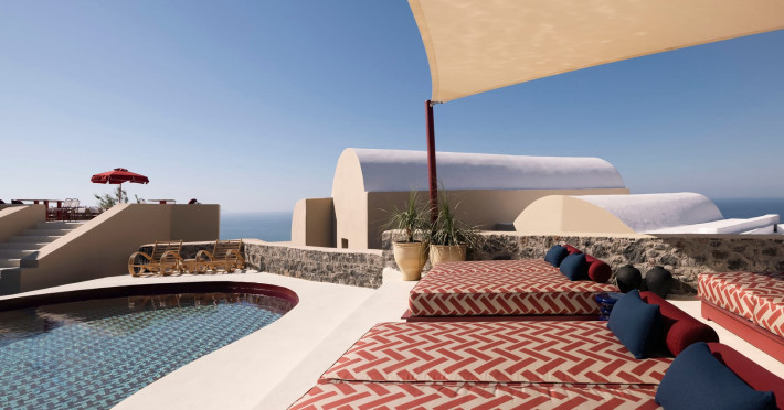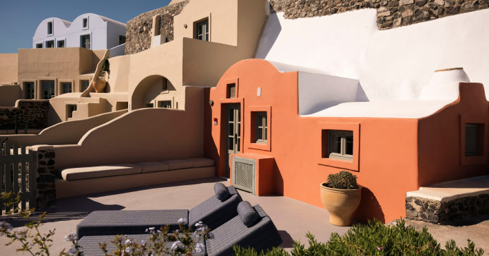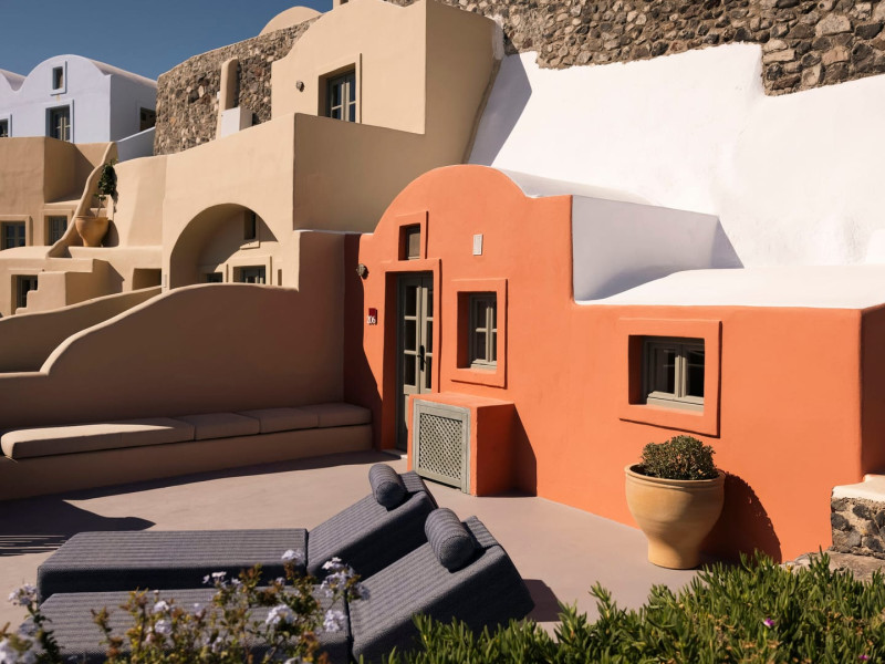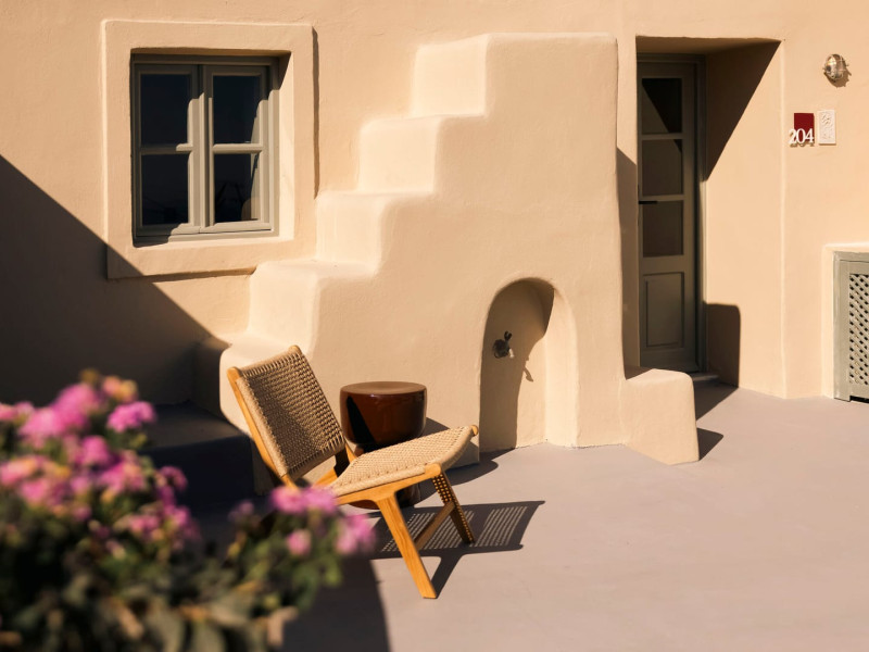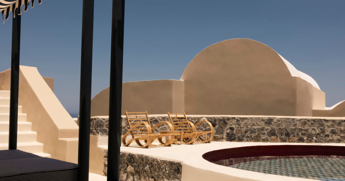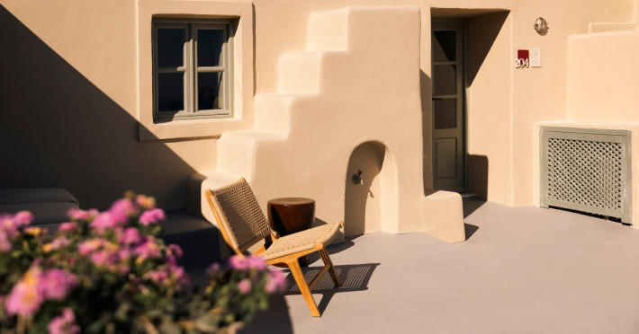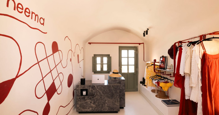 Neema Maison is an adults only (16+y.o) 16-key boutique property in Finikia, Santorini, just a 10-minute caldera walk from Oia. Part of the Domes “Finds” collection, it blends Cycladic architecture with a fashion-house concept: suites are styled as backstage dressing rooms, with curated details such as makeup chairs, mirrors, and draped textiles.Carved cave suites and sea-facing rooms include options with kitchens, private terraces, lofts, or indoor Jacuzzis. Onsite features include a central pool, Antonino’s open-air Italian restaurant, Neema Boutique (resortwear by Greek and global designers), and a dedicated open air wellness space for yoga sessions.The car-free Finikia village provides direct access to walking paths, vineyards, Kanaves wine cellars, and sunset views without crowds. Targeted toward design-conscious travelers seeking low-volume, high-style accommodation with location-based experiences and story-driven stays.