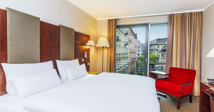 Ideally-located in the heart of the business district, NH Budapest offers you a slice of modern luxury amid a backdrop of historic scenery. With proximity to Parliament, Vgsznhz Theatre, Nyugati station, and Margret Island, you have wide range of sightseeing and recreational activities at your finger tips. You can explore the city then settle into one of our stylish, airy rooms equipped with modern amenities such as free WiFi, and Satellite TVor take in the stunning metropolitan views from one of the hotels many balconies. Begin your stay with a hearty breakfast buffet then relax after a long day with a glass of famous Hungarian wine at our restaurant Manzanos which serves up an array of regional and international dishes to satisfy any appetite. If relaxation is your goal, visit our rejuvenating wellness suite where you can enjoy a brisk work-out in our fitness center then treat yourself to some pampering in the adjacent solarium, sauna and massage suite. NH Budapest wants your stay to be a memorable one. Whether youre planning a conference, cocktail reception or simply want to indulge in some well-deserved rest, our facilities and knowledgeable staff are ready t...
