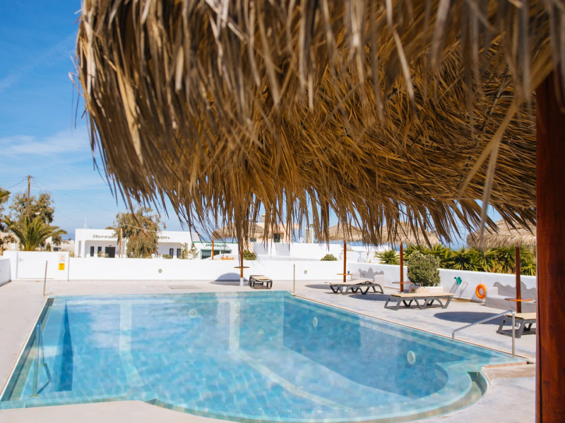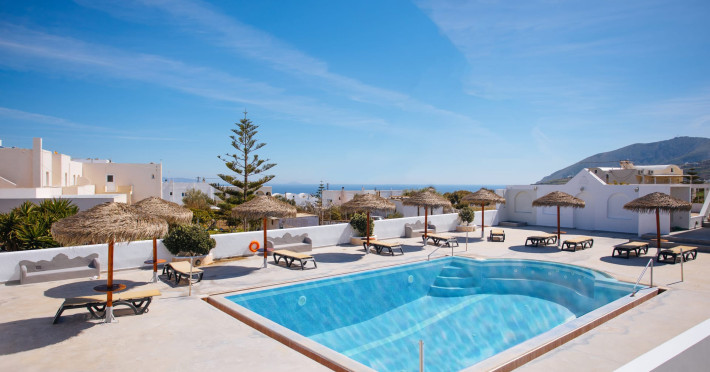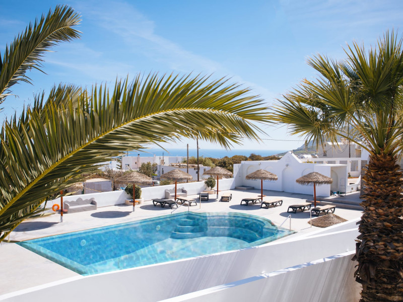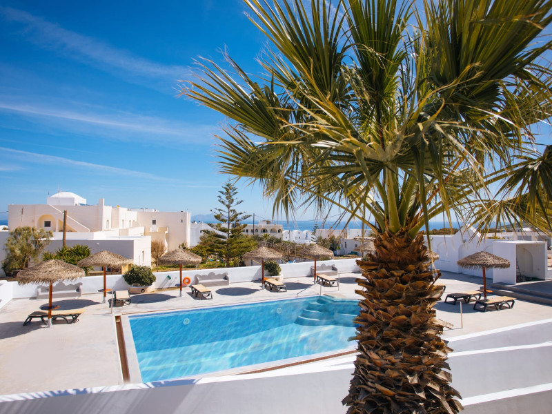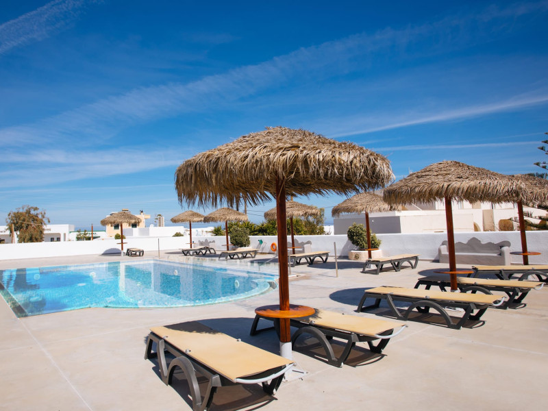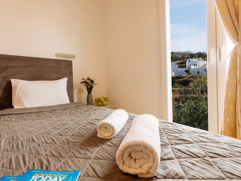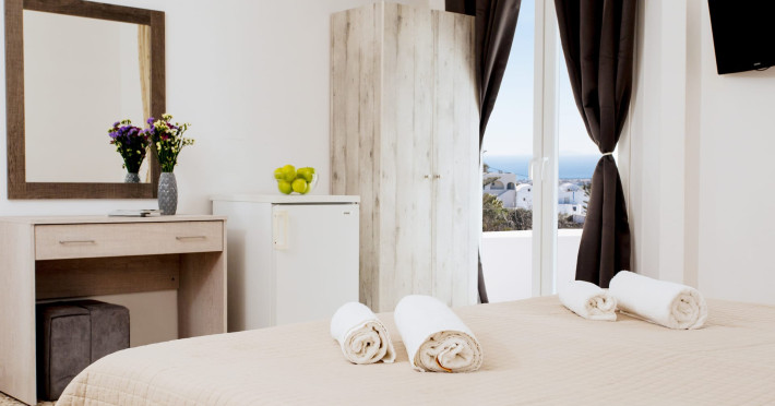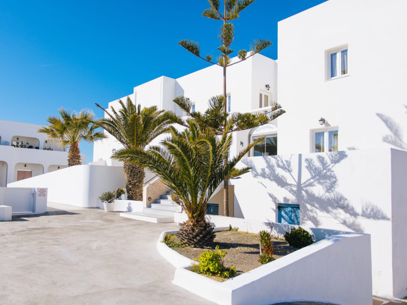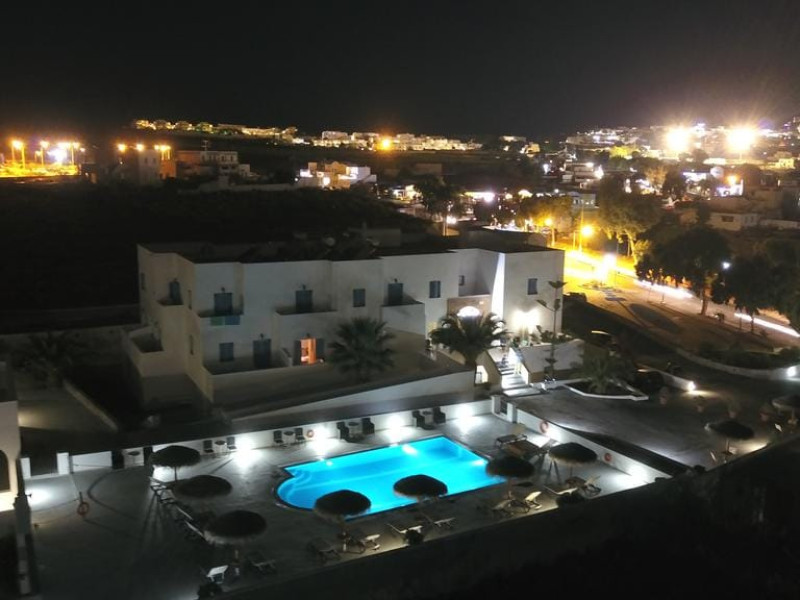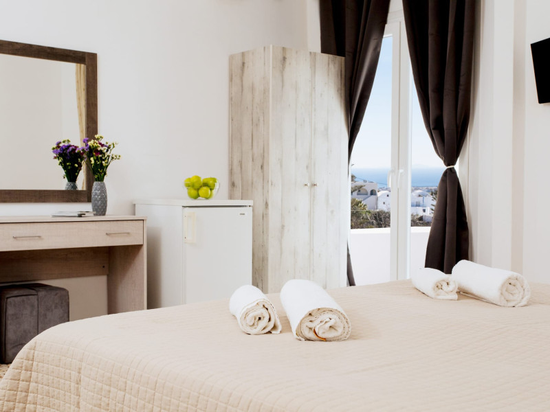The Cycladic-style Nikos Hotel is located in Karterados Village of Santorini, within 1 km from the lively Fira capital. It offers free Wi-Fi in public areas and air-conditioned rooms with a balcony overlooking the garden.rooms of Nikos are equipped with a TV, a telephone and a fridge. Each unit includes a private bathroom with shower.Guests can start their day with a continental breakfast served daily at the dining area. Restaurants, bars and shops can be found within a walking distance from the property.Ormos Athinios Port lies within 8 km from Nikos Hotel, while Santorini National Airport is at 5 km. Staff at the front desk can arrange car rental to explore famous places, such as Oia Village at 13 km and Exo Gialos Beach at 4 km. Free private parking is possible on site.