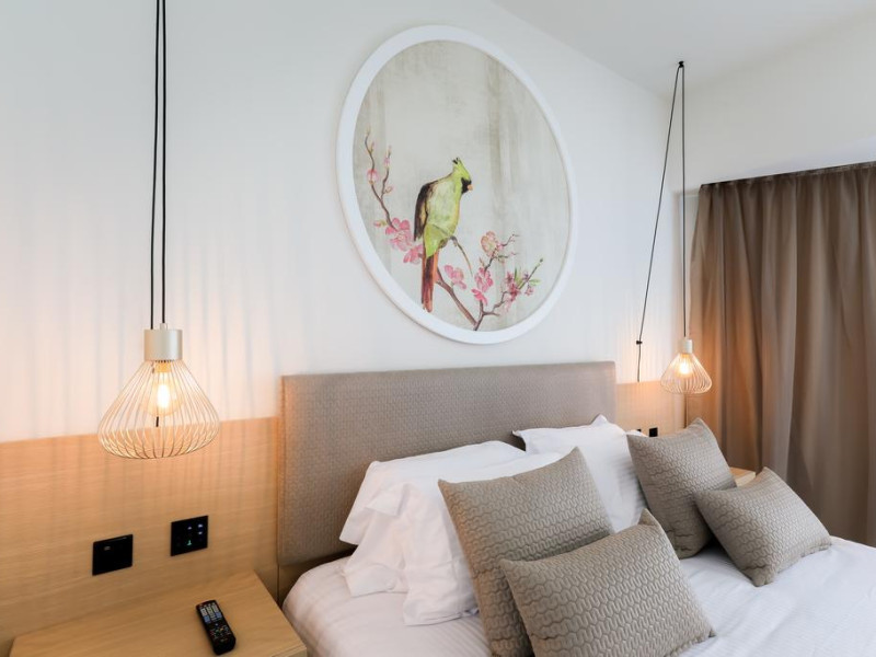 Offering 5-star accommodation amidst tropical gardens with 2 pools and 1 children's pool, NissiBlu Beach Resort lies on sandy Nissi Beach. It features 3 restaurants as well as a spa and wellness centre. Rooms and suites at NissiBlu Beach Resort are elegantly furnished and come with a satellite LCD TV and coffee/tea makers. Free toiletries can be found in the marble bathrooms. All units open out to a private balcony. Guests can choose among American, Italian and international options for dinner, which they can enjoy in stylish environment. Three bars, by the pool, in the lobby and on the beach are offered for exotic cocktails, ice cream or a snack. Other leisure facilities include an indoor heated pool with salt water. Guests can also visit the fully equipped gym. Ayia Napa City Centre is 2 km away, while Nissi Beach is only a 2-minute walk away. Larnaca International Airport is approximately 35 minutes by car. The 24-hour front desk can arrange car rentals, excursions and restaurant reservations among other services. WaterWorld Ayia Napa is 3.3 km from the accommodation
