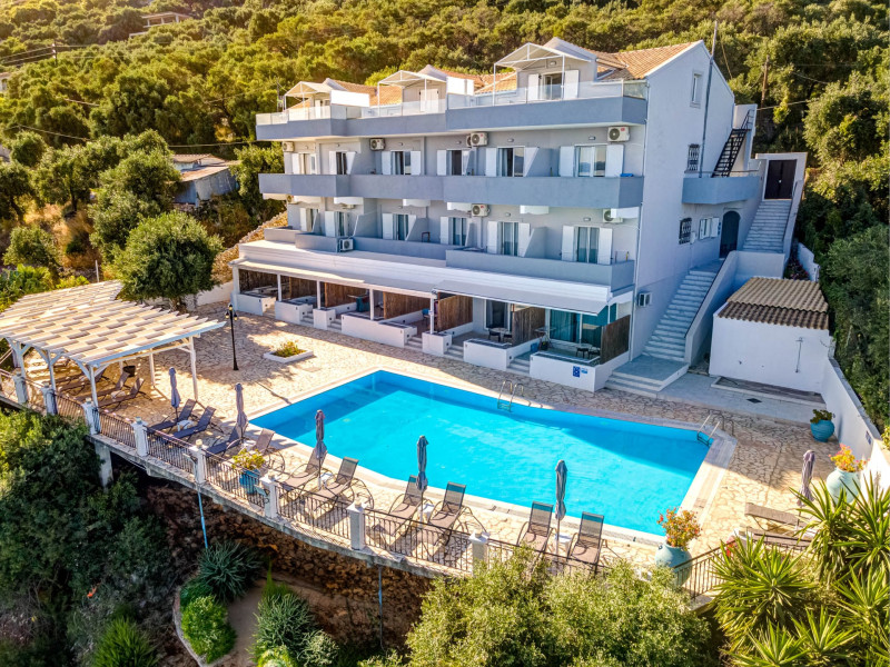 Oceanis rooms apartments can promise you a wonderful and unforgettable stay at Corfu Island. OCEANIS Apart Hotel is located at Glyfa Barbati (25 minutes drive from town), a magic coast of the North-East Corfu Island in Greece. Built alongside the sea and on Pantokrator mountain foot, in a spectacular natural environment combining the beauties of sea and mountain, it is surrounded from one side by the Ionian sea and from the other side by long terraced stretches of olive trees.