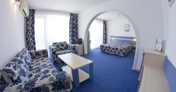 Hotel Palace este situat pe plaja in partea de nord a celei mai mari statiuni de pe litoral din Bulgaria - Sunny Beach. Centrul statiunii este la 1,5 km, iar cel mai apropiat aeroport este la 30 km. Plaja: cu nisip la 20 de metri de hotel. Fundul marii este plat, cu acces lin. Plaja este castigatoarea premiului Steagul Albastru. Cazare: Hotel Palace ofera cazare in 143 de spatii la 12 etaje. Camere duble si apartamente spatioase si mobilate luxos, care ofera vedere directa minunata la mare si la golf. Toate camerele au balcon. Sunt 2 lifturi. DBL 2+1: aprox 16-18 m2. Camerele duble sunt mobilate cu un pat dublu sau doua paturi de o persoana. Camerele au TV cu ecran plat, seif, uscator de par, ceainic electric, pahare, telefon, aer conditionat, mini frigider, fotoliu extensibil, baie cu dus, balcon cu vedere la mare sau partiala la mare. Capacitate maxima 2 adulti si 1 copil. 1-BR APP 2+2/2+3/3+2: aprox 25-36 m2. In Hotelul Palace sunt disponibile 11 apartamente, fiecare dintre ele formata din doua camere separate, separate printr-o usa - un living cu canapele si un dormitor cu pat dublu. Apartamentele au vedere la mare si la piscina. Toate au TV cu ecran plat, seif, telefon, aer conditionat, mini frigider, uscator de par, ceainic electric, ochelari, baie cu dus, balcon. Capacitatea maxima este de 4 adulti sau 3 adulti cu doi copii. *Nu este permisa gazduirea unui copil peste capacitatea maxima a camerei. Un patut de copii este disponibil gratuit la cerere prealabila. Animalele de companie nu sunt permise Hotelul nu dispune de camere adaptate pentru persoane cu dizabilitati. Despre hotel: La dispozitia oaspetilor hotelului sunt restaurantul principal cu terasa de vara si gradina, lobby bar (8:00-24:00 h), loc de joaca pentru copii in gradina de vara, piscina exterioara pentru adulti si copii, curatatorie, doctor. In toate camerele si zonele comune exista un hot-spot Wi-Fi. HB la hotel PALACE *** pentru sezonul 2025 INCLUDE: Check-in: dupa ora 14:00 Check-out: inainte de ora 12:00