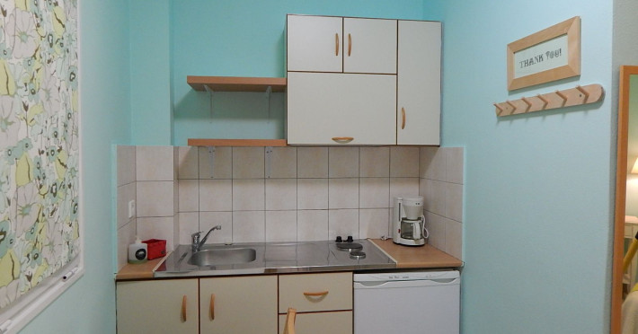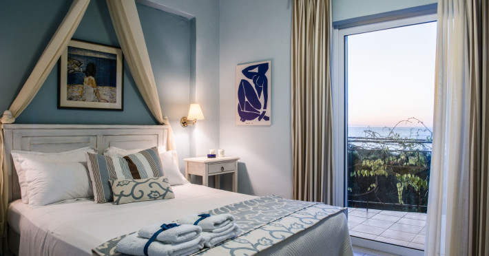 The studios and apartments are open out onto private balconies with sea view and are comfortably furnished and fully equipped (kitchenette with all utensils and refrigerator), individual bathrooms, LG HD TV 32”, A/C, Wi-Fi and personal safe for valuables.