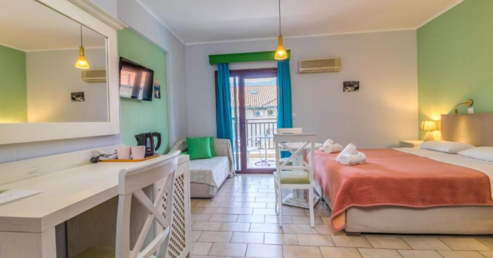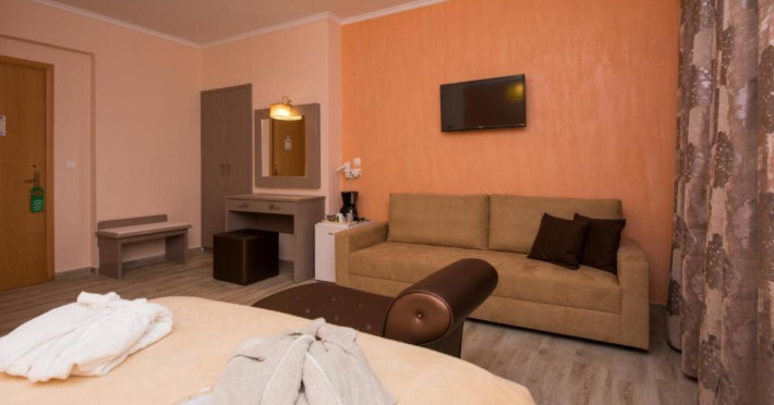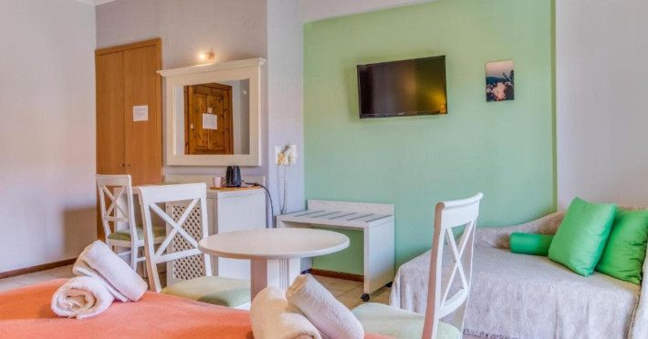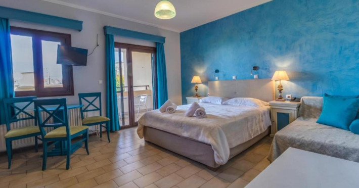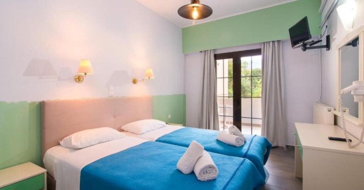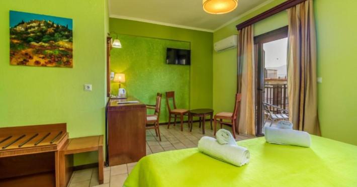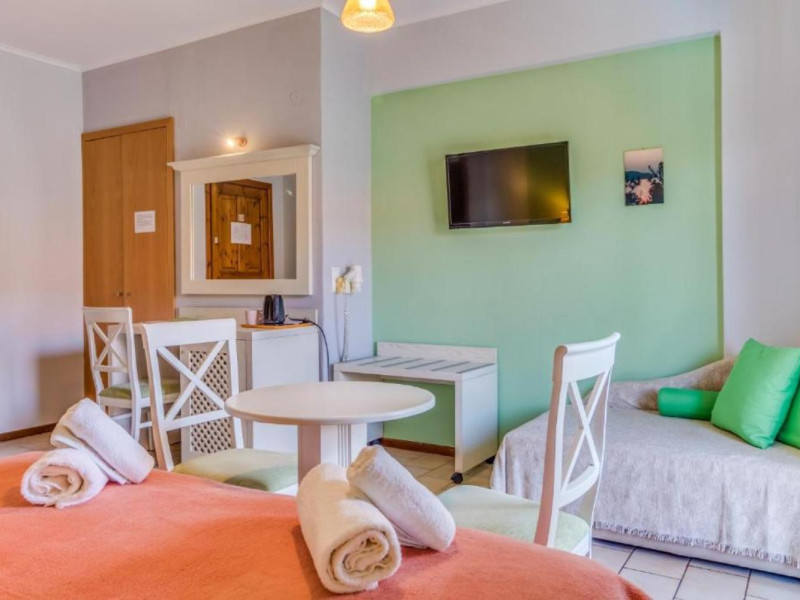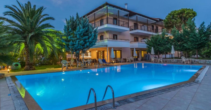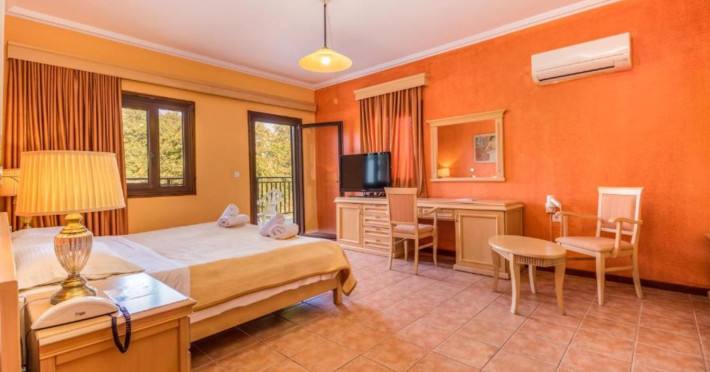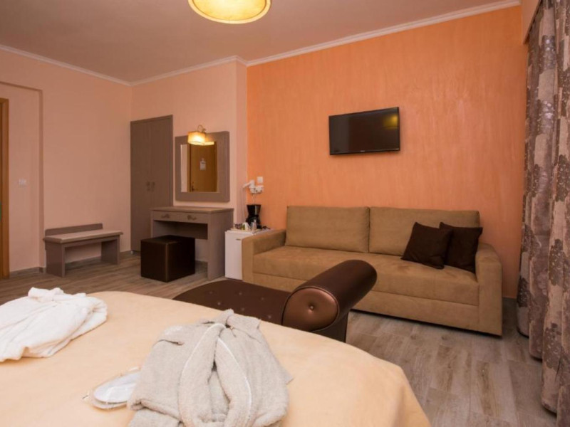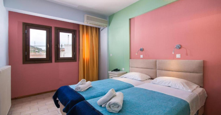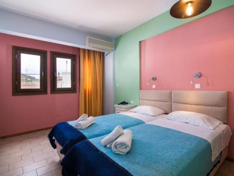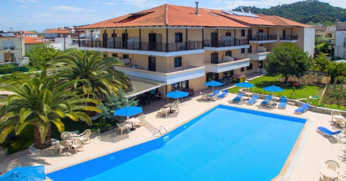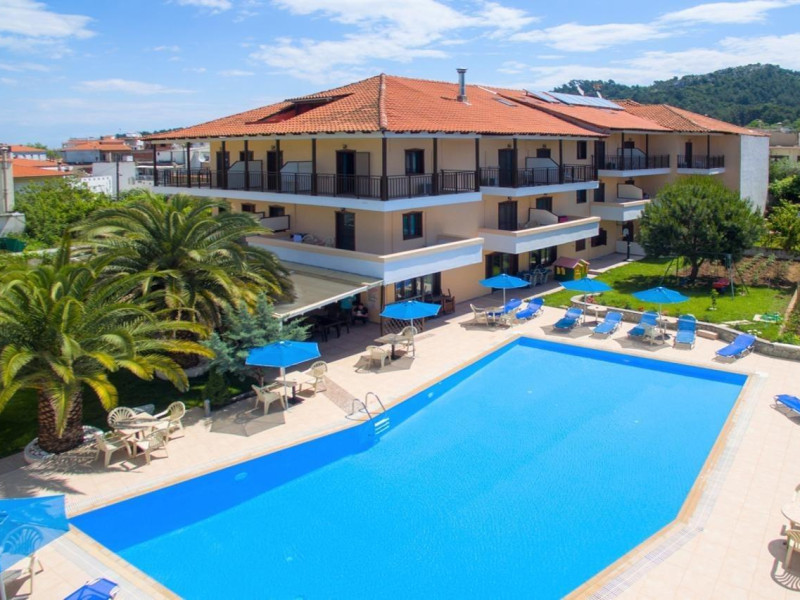 Facilities and services include 18-hour reception, satellite TV area, fireplace, Wi-Fi in public areas, swimming pool (08:30-19:30), pool towels (extra charge per week), sunbeds & umbrellas (free at the pool, with extra charge at the beach by an off-site third-party provider), sun terrace, garden, onsite parking (extra charge per day), airport transfer service (extra charge), doctor on call (extra charge), first-aid kit, restaurant, bar, welness area and sports facilities.Rooms feature air-conditioning/central heating (extra charge per week), Wi-Fi, TV (with satellite & music channels), safety deposit box (extra charge per week), mini fridge, shower/WC, hairdryer, bathroom amenities, balcony, wake-up service and 12-hour room service (extra charge).Bed & Breakfast:Breakfast is enriched buffet (08:15-10:15)Vegetarian menu available Only guests 12 years old and above can be accommodatedThe operation of certain services & facilities is subject to weatherconditionsAddress: Thassos Port Thassos Greece 640 04