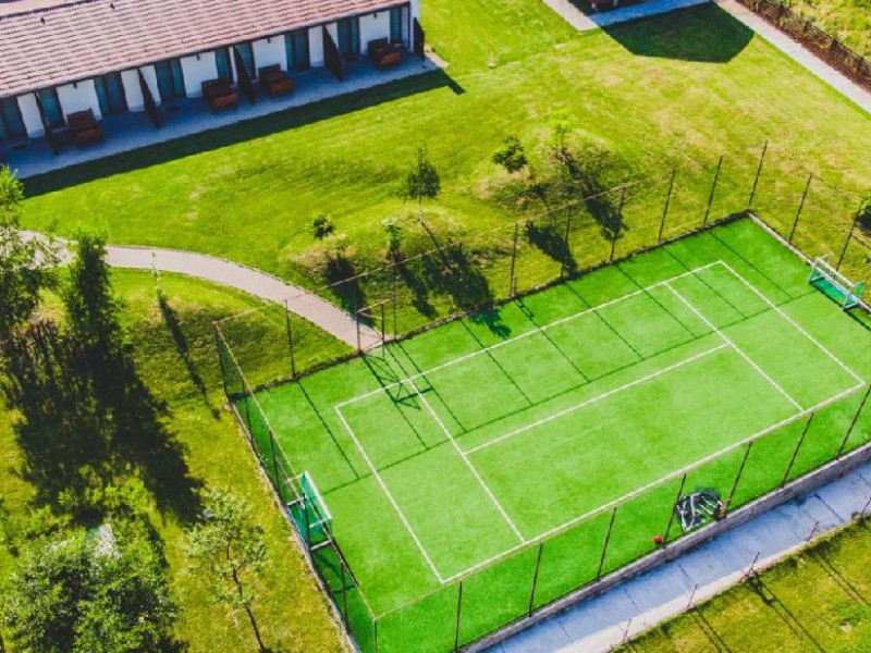 FACILITATI UNITATE: Dotari: 13 camere duble, restaurant traditional de 40 locuri, plus terasa 40 locuri, sala conferinte 40 locuri, zona SPA (piscina interioara, jacuzzi, camera salina, butoi sauna cu foc pe lemne). Teren sport sintetic 12x24m