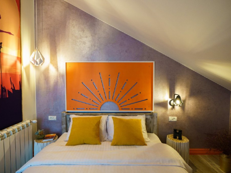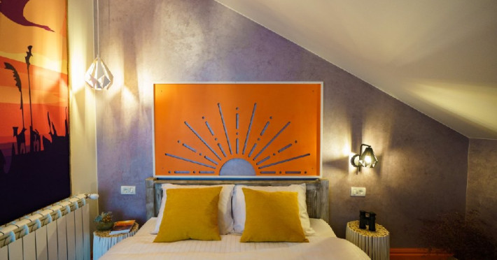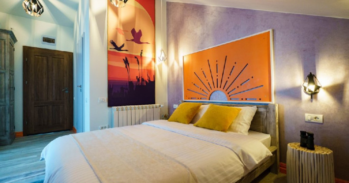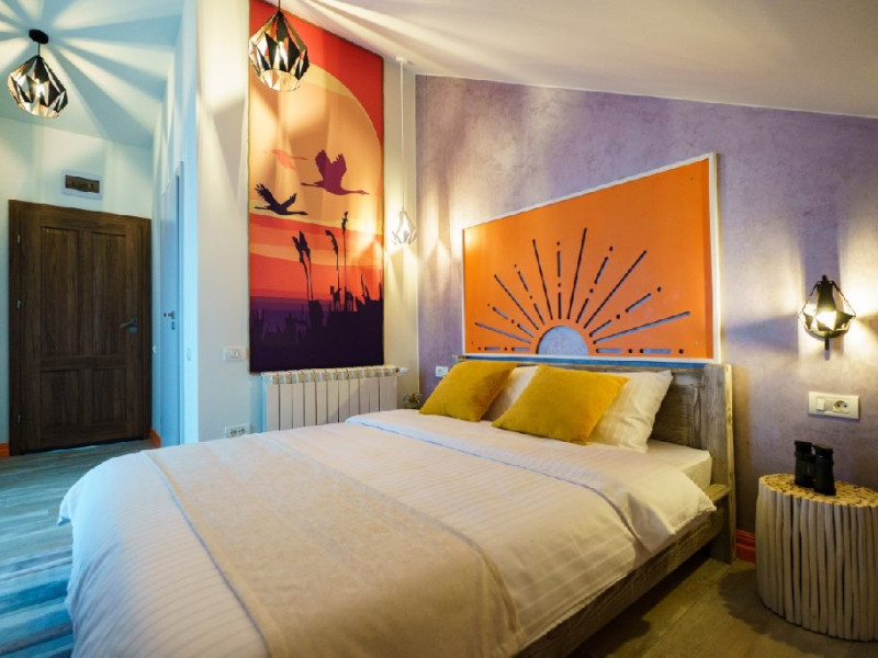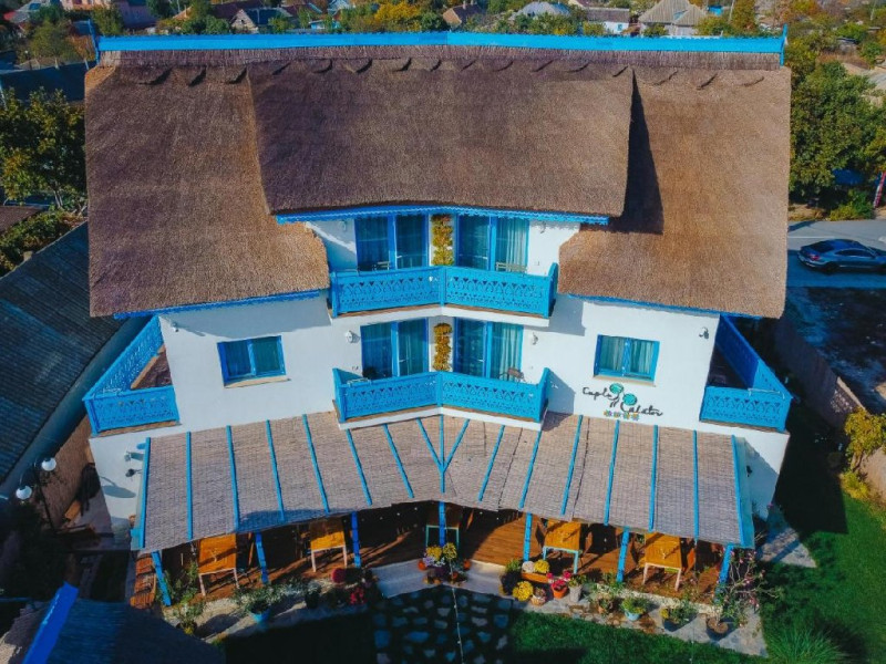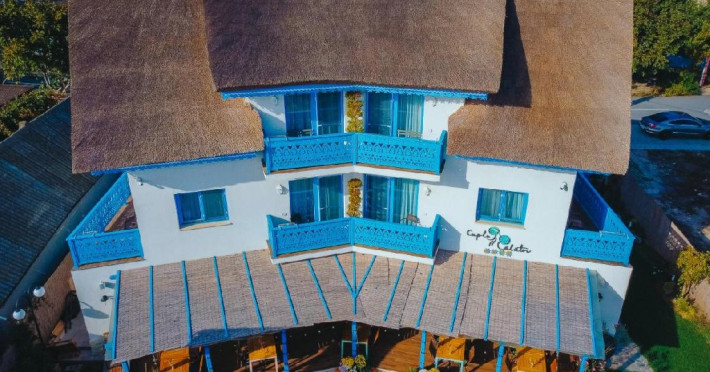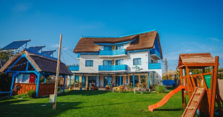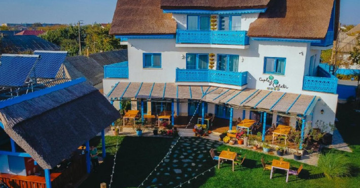 INFORMATII GENERALE Pensiunea Cuplu Calator se afla in Jurilovca, in apropiere de lacul Golovita. DESCRIERE UNITATE DE CAZARE Pensiunea Cuplu Calator imbina traditia lipoveneasca cu stilul autentic inspirat din calatoriile noastre. Acoperisul din stuf, fatada alb-albastra si dantelaria din lemn pastreaza farmecul local, completat de confort si facilitati moderne. FACILITATI UNITATE Pensiunea ofera restaurant, parcare, internet Wi-fi, aer conditionat, tenis de masa si loc de joaca pentru copii, biciclete, trotinete, biblioteca si jocuri de masa, mese in gradina si pe terasa, excursii cu masina/barca. DESCRIERE CAMERE Camera Pesti se afla la etajul 1, este orientata spre apus si are doua paturi twin care pot fi unite intr-un pat matrimonial. Balconul ofera vedere catre sat, dar si catre miniport si Lacul Golovita sau Razimul mic, cum ii mai spun localnicii. Camera Matrioska si camera Lotca se afla la etajul 1, sunt orientate spre sud, cu vedere spre lac si ofera cate un pat matrimonial. Camera Pasari se afla tot la etajul 1, este orientata spre est si are doua paturi twin. Balconul ofera vedere catre sat, dar si catre lac. Camera Apus se afla la etajul 2 (mansarda), este orientata spre apus si are un pat matrimonial si un fotoliu extensibil. Balconul ofera vedere catre sat, biserica, miniport si Lacul Golovita. Camera Marea Neagra si camera Antic se afla la etajul 2 (mansarda), sunt orientate spre sud si au cate un pat matrimonial. Balconul ofera vedere catre lac. Camera Rasarit se afla la etajul 2 (mansarda), este orientata spre rasarit si are un pat matrimonial si un fotoliu extensibil. Balconul ofera priveliste catre Lacul Golovita si catre balti de repopulare, atat de apreciate de pasari. Toate camerele au balcon si fiecare camera are propria tematica, cu piese de mobilier, lumini, decoratiuni, culori si atmosfera diferita, transmitand un pic din diversitatea zonei. Sunt 4 camere pe fiecare etaj, iar camerele Apus si Rasarit au cate un fotoliu extensibil. Fiecare camera are balcon cu priza si lumina, plasa de tantari, TV, draperii black-out, binoclu, minibar, aer conditionat, uescator de par si produse de igiena. LOCALIZARE Pensiunea Cuplu Calator se afla in Jurilovca, in apropiere de lacul Golovita. ATRACTII TURISTICE Complexul lagunar Razim-Sinoe, Cetatea Enisala, Cetatea Argamum si Capul Dolosman, Gura Portitei, Portul Jurilovca, Parcul National Muntii Macinului. POLITICI Nu se permite accesul cu animale de companie. SERVICII DE MASA Mesele se servesc in restaurant sau pe terasa. FACILITATI COPII Loc de joaca pentru copii, biciclete, trotinete, tenis de masa. FACILITATI EVENIMENTE La cerere, se pot organiza evenimente festive.