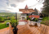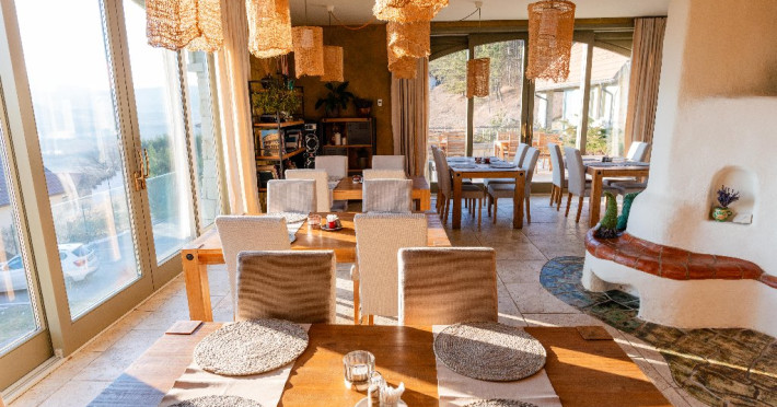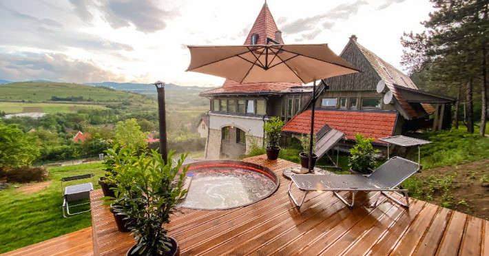 Pensiunea - castel Harmonia Mundi se inalta pe panta dealului si se afla pe locul cel mai frumos din zona. Locul nu a fost ales intamplator. Privelistea este cu adevarat incantatoare! De aici te poti bucura de panorama oferita de Muntii Apuseni.
