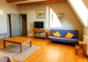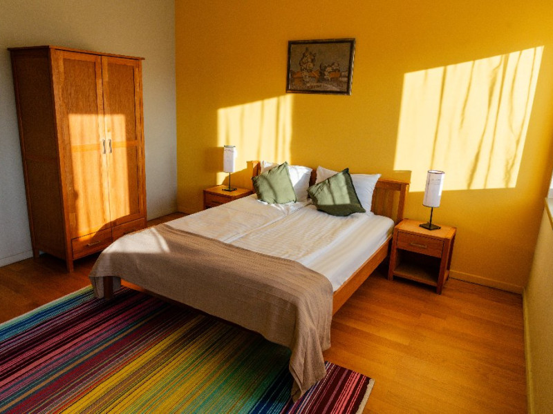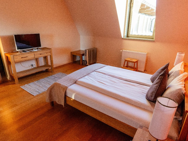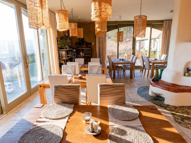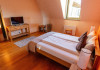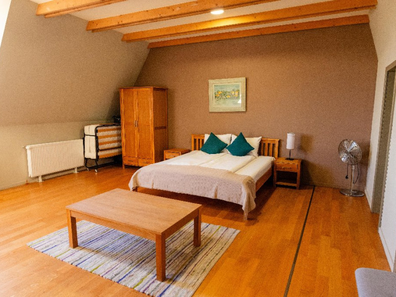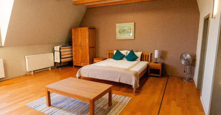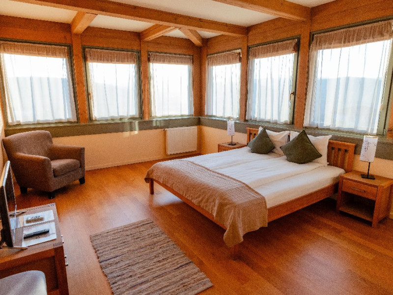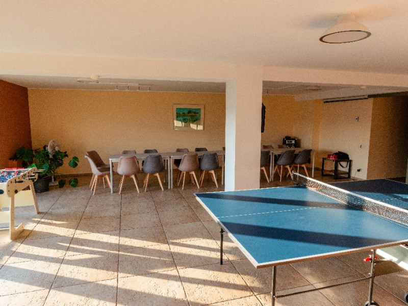 Pensiunea ofera 5 camere spatioase si luminoase, fiecare fiind dotata cu o baie proprie cu un design organic, in care modernul se imbina armonios cu stilul traditional. Exista si un apartament cu intrare separata si terasa privata, compus din 2 dormitoare, 2 bai, camera de zi, sufragerie cu bucatarie integrata si complet echipata ce ofera gazduire celor care doresc intimitate si confort, chiar pe o perioada mai lunga. La castel exista mai multe zone de destindere, unde poti rasfoi o carte din biblioteca pensiunii, ori te poti distra cu prietenii cu unul dintre numeroasele jocuri de societate din dotarea pensiunii.Cele trei terase spatioase, iluminate arhitectural ofera priveliste si intimitate, in functie de anotimp si starea de spirit a fiecaruia. Activitati: Pregatirea mancarii traditionale in cuptor pe lemne; Degustare de vinuri; Plimbari in padurea din spatele pensiunii; Excursii in apropiere; Activitati sportive la pensiune si in apropiere; Serata cu jocuri de societate.