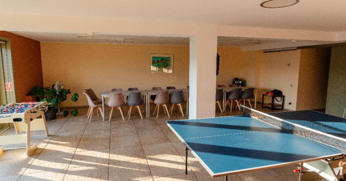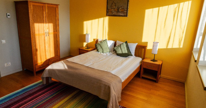 Camera QUEEN: pe o suprafata de 18 mp, cu un design si culori armonioase, domina culoarea portocalie. Camera are baie proprie amenajat in stil organic, in care fiecare detaliu te incanta. Dotari: televizor full HD, baie proprie cu dus si uscator de par. Camera FAMILLY SUITE: pe cei 25 de mp, culoarea galben-mustar da tonul ambientului rafinat. Fotoliul asezat intr-un colt luminos iti ofera o zona de relaxare proprie. Baia este unica, geamul inalt de 2 metri deschizand spatiul catre cer. Dotari: televizor full HD, baie proprie cu dus si uscator de par. Camera KING: avand 27 mp, este cea mai mare camera din pensiune. Aici culoarea turcoaz da tonul designului elegant. Camera este adecvata celor care prefera spatiile largi, iar patul este kingsize! Dotari: televizor full HD, baie proprie cu dus si uscator de par Suita (Turn): este formata din doua camere gemene, care comunica intre ele printr-o usa izolata fonic. De aceea este cazarea ideala pentru familii cu copii. In aceste doua camere totul este dominat de geamurile insirate pe cele trei laturi ale camerei. Aici ai impresia ca exteriorul si interiorul formeaza un intreg. Doar din suita ai posibilitatea sa urci oricand in palaria turnului, in punctul cel mai de sus al pensiunii, unde te primeste un cuib de relaxare cu o panorama unica. Dotari: televizor full HD, baie proprie cu dus si uscator de par. Apartament: este un apartament luminos, cu spatii aerisite. Aici totul este pregatit pentru a te simti acasa! Are un living generos de 35 mp in care este integrata o bucatarie complet echipata. Terasa acoperita de 30 mp este in prelungirea sufrageriei, de care este despartit printr-un perete de sticla cu usa glisanta. Aici te poti bucura de serile inmiresmate si de aerul curat respirat de padurea alaturata. Facilitatile electrocasnice (ex. masina de spalat sau masina de spalat vase) iti sunt si ele la indemana. Se poate inchiria cu unu sau doua dormitoare, in functie de nevoile oaspetilor. Dotari: televizor full HD, baie proprie cu vana si uscator de par, masina de spalat vase, masina de spalat rufe, terasa cu mobilier de gradina (scaune-fotolii, mese, balansoar) si BBQ. LOCALIZARE: Localitatea Vlaha este situata la doar 17 km sud-vest demunicipiul Cluj-Napoca. FACILITATI EVENIMENTE: Sala de conferinta are o capacitate de 50 de locuri si este un spatiu prietenos pentru cei care doresc sa desfasoare activitati business sau creative in incinta pensiunii Harmonia Mundi. Incaperea este dotata modern, punand la dispozitie internet Wi-Fi, video-proiector si flipchart, dar si instrumente pentru o pauza reusita: darts,masa tenis si masa de fotbal. Sala vine in intampinarea firmelor care cred in creativitate si in munca de echipa, dar susin si spiritul de joc si nevoia de destindere ale angajailor, fiind o locatie preferata pentru desfasurarea workshop-urilor, cursurilor, teambuiding-urilor, dar si altor activitati business.