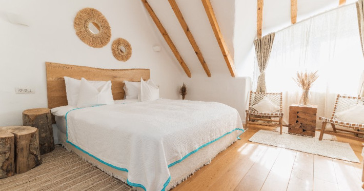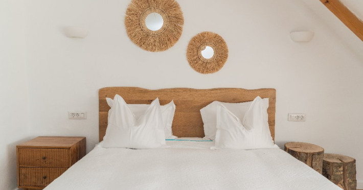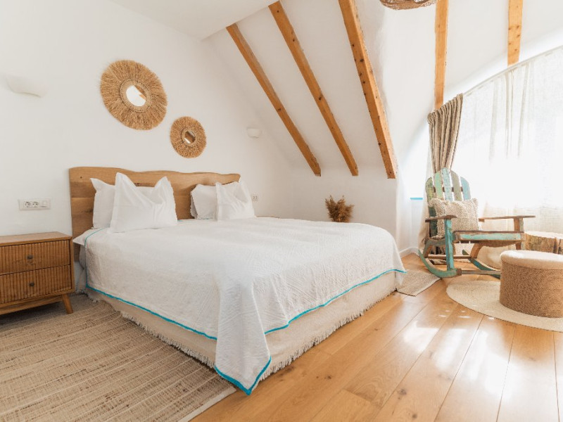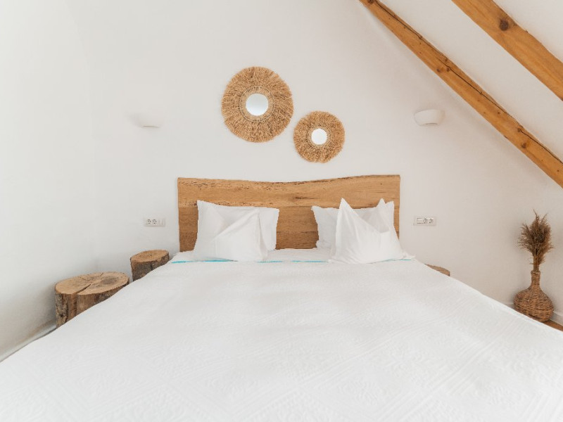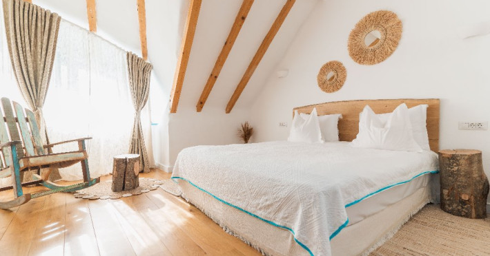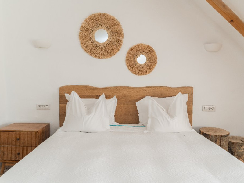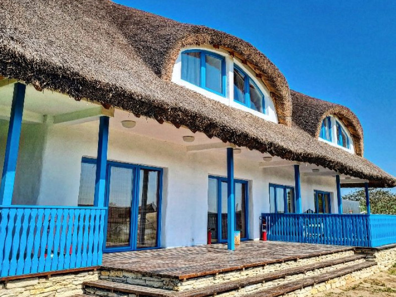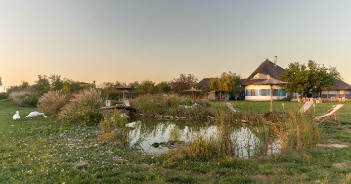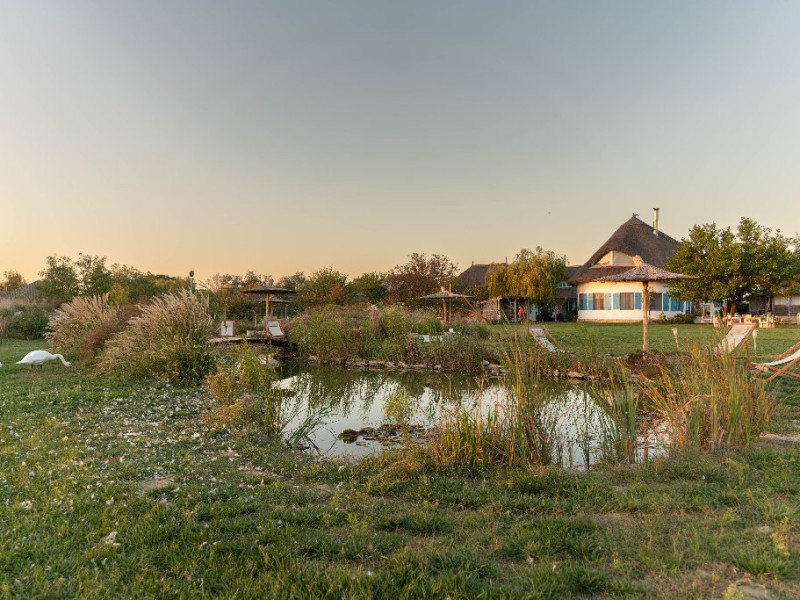 INFORMATII GENERALE Pensiunea La Iaz se afla in Delta Dunarii in localitatea Murighiol, langa Pensiunea 5 Chirpici. DESCRIERE UNITATE DE CAZARE Locatia ofera cazare confortabila si servicii de calitate pentru un sejur relaxant. FACILITATI UNITATE Locatia ofera doar servicii de cazare si asigura accesul la serviciile si facilitatile de la Pensiunea 5 Chirpici, cum ar fi restaurantul ce va va rasfata cu delicii culinare specifice locului, zone de relaxare, ferma si solar, biciclete, o piscina in aer liber sezoniera, o gradina si un lounge comun. Proprietatea are un bar, o terasa, iar oaspetii au la dispozitie internet Wi-Fi gratuit si parcare privata. Receptia se afla in cladirea Arca lui Noe, iar restaurantul in cladirea La Cherhana de la Pensiunea 5 Chirpici. Pentru distractia celor mici, la Pensiunea 5 Chirpici se afla un teren de joaca pentru copii si o zona interioara pentru divertismentul copiilor. Se poate juca tenis de masa in curte, va puteti bucura de natura si de ferma de animale (ponei, magari, lame, iepuri, capre, gaini, cocosi, rate, pauni, fazani, struti, cai). Locatia 5Chirpici dispune si de zona de SPA, unde oaspetii pot beneficia, contra cost, de masaje de relaxare, single sau in cuplu, acces la sauna, jacuzzi si ice bath.. Zona este populara pentru pescuit, plimbari private cu barca sau caiace pe lacuri. DESCRIERE CAMERE Camerele 1-2-3-4 se afla la etaj, dispun de pat matrimonial, baie cu dus, fara balcon sau terasa. Camera 1 este mai spatioasa si include un pat suplimentar. Camera 5 se afla la parter, dispune de pat matrimonial, baie cu dus si terasa. Camerele sunt dotate cu dulap pentru haine, televizor cu ecran plat, frigider, climatizare, baie proprie cu dus si articole de toaleta. LOCALIZARE Pensiunea La Iaz se afla in Delta Dunarii in localitatea Murighiol, langa Pensiunea 5 Chirpici. ATRACTII TURISTICE Cetatea Halmyris, Manastirea Halmyris, Lacul Murighiol. SERVICII DE MASA Mesele se servesc in restaurantul propriu de la Pensiunea 5 Chirpici care se afla in imediata vecinatate. POLITICI Nu sunt permise animalele de companie. FACILITATI COPII Piscina exterioara, loc de joaca pentru copii la Pensiunea 5 Chirpici din imediata apropiere. FACILITATI EVENIMENTE Se pot organiza evenimente festive in restaurantul de la 5 Chirpici.