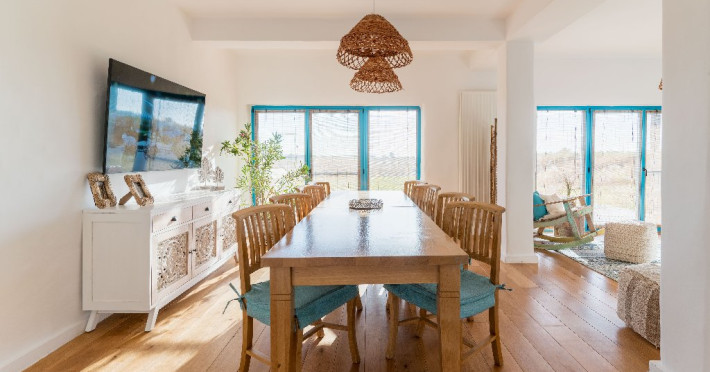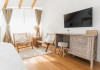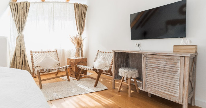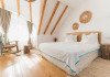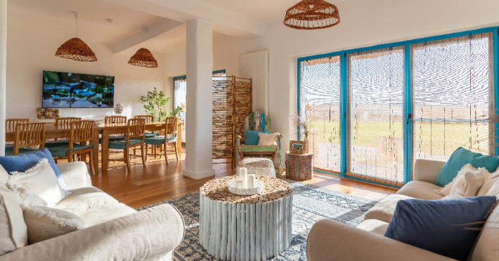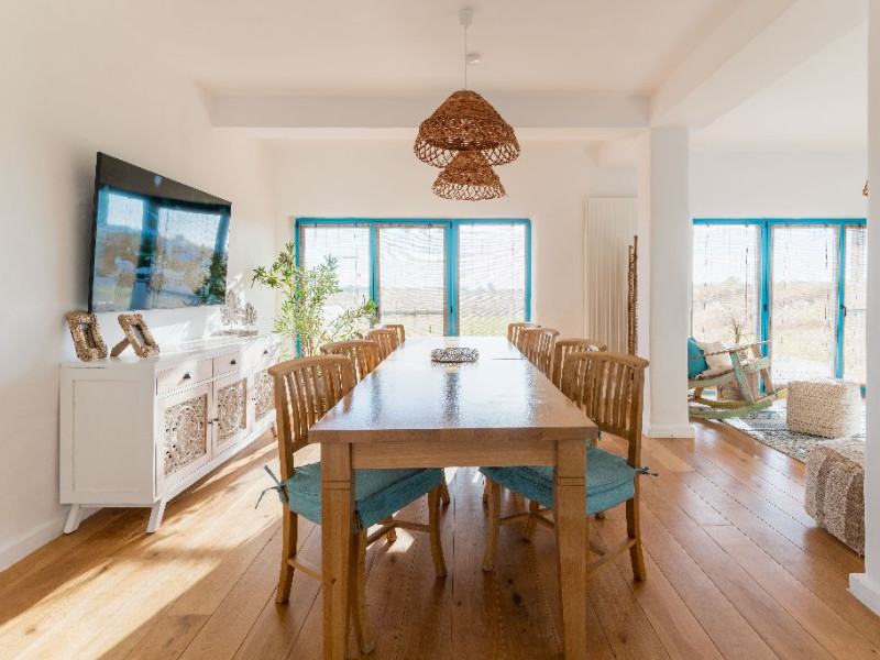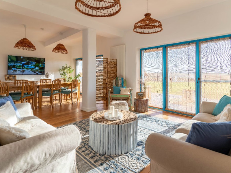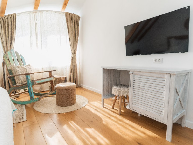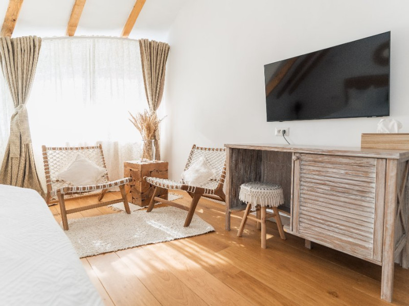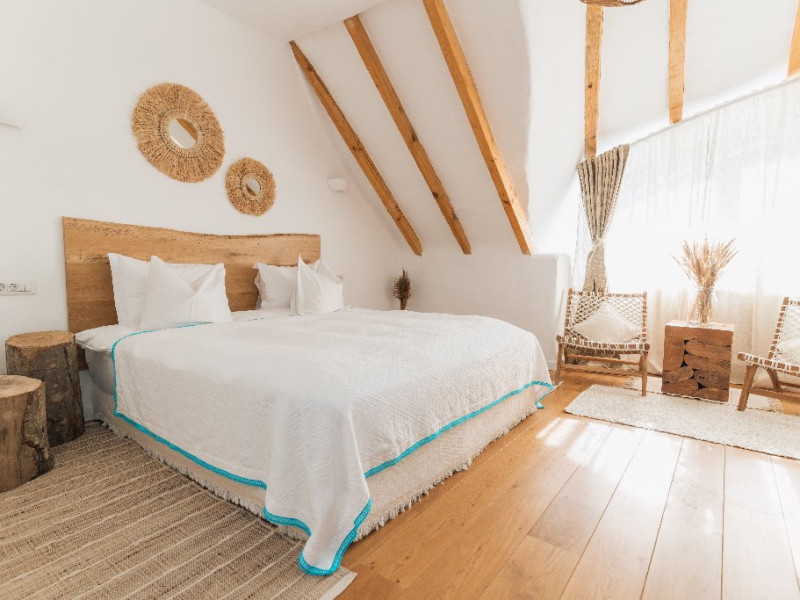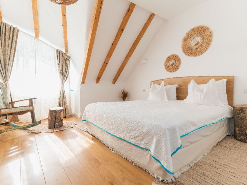 INFORMATII GENERALE Pensiunea La Iaz se afla in Delta Dunarii in localitatea Murighiol, langa Pensiunea 5 Chirpici. DESCRIERE UNITATE DE CAZARE Locatia ofera cazare confortabila si servicii de calitate pentru un sejur relaxant. FACILITATI UNITATE Locatia ofera doar servicii de cazare si asigura accesul la serviciile si facilitatile de la Pensiunea 5 Chirpici, cum ar fi restaurantul ce va va rasfata cu delicii culinare specifice locului, zone de relaxare, ferma si solar, biciclete, o piscina in aer liber sezoniera, o gradina si un lounge comun. Proprietatea are un bar, o terasa, iar oaspetii au la dispozitie internet Wi-Fi gratuit si parcare privata. Receptia se afla in cladirea Arca lui Noe, iar restaurantul in cladirea La Cherhana de la Pensiunea 5 Chirpici. Pentru distractia celor mici, la Pensiunea 5 Chirpici se afla un teren de joaca pentru copii si o zona interioara pentru divertismentul copiilor. Se poate juca tenis de masa in curte, va puteti bucura de natura si de ferma de animale (ponei, magari, lame, iepuri, capre, gaini, cocosi, rate, pauni, fazani, struti, cai). Locatia 5Chirpici dispune si de zona de SPA, unde oaspetii pot beneficia, contra cost, de masaje de relaxare, single sau in cuplu, acces la sauna, jacuzzi si ice bath.. Zona este populara pentru pescuit, plimbari private cu barca sau caiace pe lacuri. DESCRIERE CAMERE Camerele 1-2-3-4 se afla la etaj, dispun de pat matrimonial, baie cu dus, fara balcon sau terasa. Camera 1 este mai spatioasa si include un pat suplimentar. Camera 5 se afla la parter, dispune de pat matrimonial, baie cu dus si terasa. Camerele sunt dotate cu dulap pentru haine, televizor cu ecran plat, frigider, climatizare, baie proprie cu dus si articole de toaleta. LOCALIZARE Pensiunea La Iaz se afla in Delta Dunarii in localitatea Murighiol, langa Pensiunea 5 Chirpici. ATRACTII TURISTICE Cetatea Halmyris, Manastirea Halmyris, Lacul Murighiol. SERVICII DE MASA Mesele se servesc in restaurantul propriu de la Pensiunea 5 Chirpici care se afla in imediata vecinatate. POLITICI Nu sunt permise animalele de companie. FACILITATI COPII Piscina exterioara, loc de joaca pentru copii la Pensiunea 5 Chirpici din imediata apropiere. FACILITATI EVENIMENTE Se pot organiza evenimente festive in restaurantul de la 5 Chirpici.
