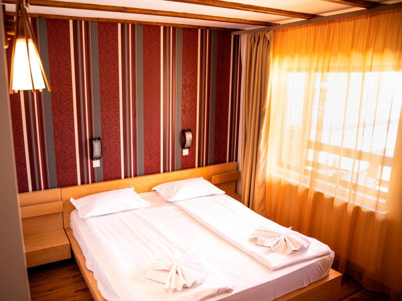 INFORMATII GENERALE Pensiunea Steaua Dunarii se afla in localitatea Eselnita din judetul Mehedinti, fiind prima pensiune construita in zona Parcului Natural Portile de Fier care si-a deschis portile in anul 2001. DESCRIERE UNITATE DE CAZARE La Steaua Dunarii exista un colt de liniste unde sa te relaxezi, sa iti incarci bateriile si sa gusti cele mai delicioase preparate din peste admirand maretul fluviu. FACILITATI UNITATE Locatia dispune de parcare, restaurant propriu cu terasa, piscina exterioara cu sezlonguri, internet wireless, tenis de masa, ponton pentru pescuit si agrement nautic DESCRIERE CAMERE Camera Dubla Superioara dispune de un pat matrimonial. Camera Dubla Twin dispune de doua paturi separate. Suita este formata dintr-o incapere in care se afla un pat matrimonial si o canapea extensibila. Apartamentul dispune de doua camere si o baie, intr-una din camere exista un pat matrimonial, iar in cealalta camera o canapea extensibila. Camerele dispun de aer conditionat, uscator de par, TV, Wi-Fi. LOCALIZARE Pensiunea Steaua Dunarii se afla in localitatea Eselnita din judetul Mehedinti. ATRACTII TURISTICE Rezervatia Naturala Cazanele Dunarii, Pestera Ponicova, Grota Veterani, Manastirea Sfanta Ana - Orsova, Parcul arheologic al Muzeului Portile de Fier, Manastirea Vodavita, Manastirea Mracona. POLITICI Nu se accepta animale de companie. SERVICII DE MASA Mesele se servesc in restaurantul propriu. FACILITATI COPII Tenis de masa, piscina exterioara. Copiii se pot caza in camere triple sau in suite. FACILITATI EVENIMENTE In restaurant se pot organiza evenimente festive.