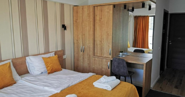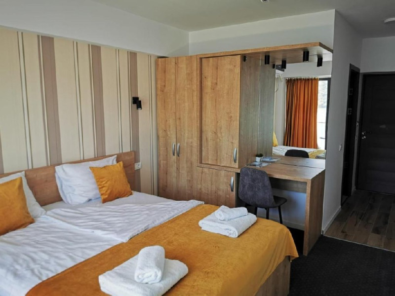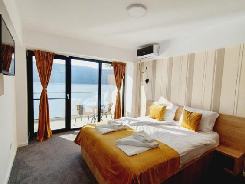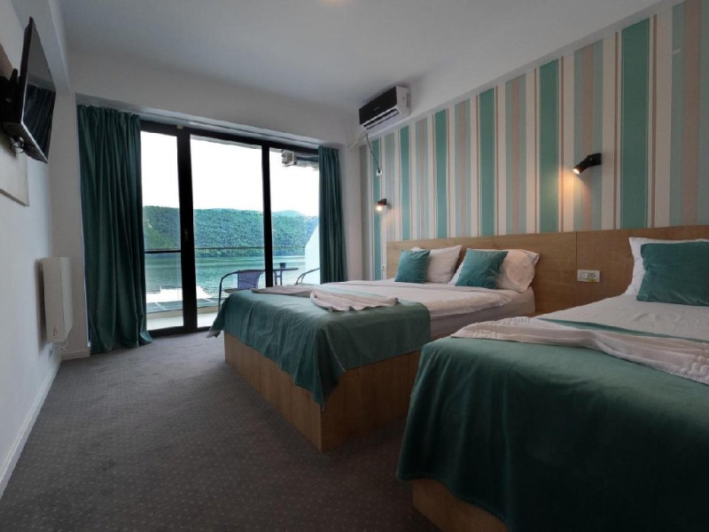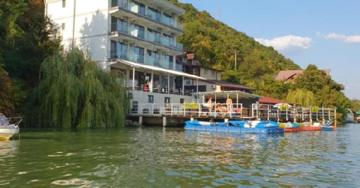 INFORMATII GENERALE Pensiunea Sunshine este localizata pe DN 57 in localitatea Eselnita, zona Cazanele Dunarii, la aproximativ 4 km de sculptura Chipul lui Decebal din Parcul Natural Mraconia. DESCRIRE UNITATE Pensiunea este privilegiata de o vedere panoramica magica spre malul sarbesc strajuit de masive muntoase, ce creeaza un adevarat spectacol de culoare in contrast cu apele involburate ale fluviului. FACILITATI UNITATE Spatiile comune includ un generos ponton pe Dunare, terasa, piscina cu sezlonguri, bar, restaurant, posibilitate de petrecere a timpului liber prin plimbari pe Dunare cu caiac-canoe, pescuit. Locatia dispune si de parcare proprie. DESCRIERE CAMERE Camerele sunt dotate cu minibar, TV, baie proprie, saltea si lenjerie de calitate. LOCALIZARE Pensiunea Sunshine este localizata pe DN 57 in localitatea Eselnita, zona Cazanele Dunarii, la aproximativ 4 km de sculptura Chipul lui Decebal din Parcul Natural Mraconia. ATRACTII TURISTICE Pestera Gaura Chindiei II, Pestera Veterani, Pestera Haiducilor, Cetatea Trikule, Cetatea Ladislau, Cazanele Mari si Cazanele Mici, Chipul lui Decebal, Manastiri cum ar fi Vodita, Sfanta Ana, Mraconia. POLITICI Nu se accepta accesul cu animale de companie. SERVICII DE MASA Mesele se servesc in restaurantul propriu. FACILITATI COPII Piscina exterioara. FACILITATI EVENIMENTE In restaurant se pot organiza evenimente festive.