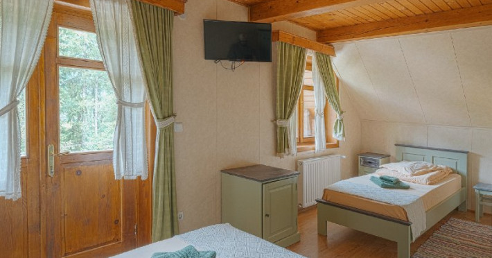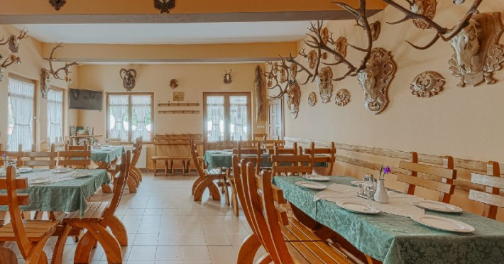 Pensiunea Vanatorul este situata in centrul statiunii Baile Tusnad, dispune de 35 de locuri de cazare in 15 camere cu 2 sau cu 3 locuri.Toate camerele au baie proprie cu dus, prosoape si articole de toaleta gratuite, tv cu acces la internet wi-fi gratuit, frigider. Unele camere dispun de terasa cu vedere la munte. Etaje superioare accesibile doar pe scari.