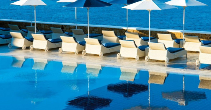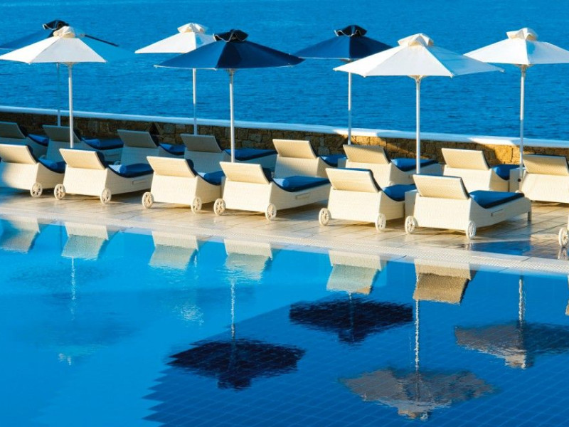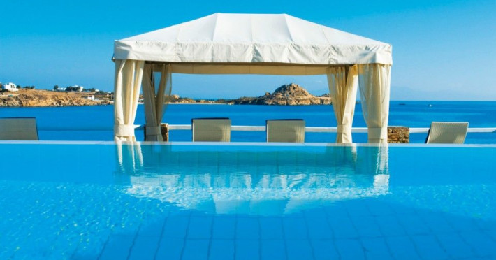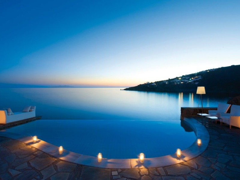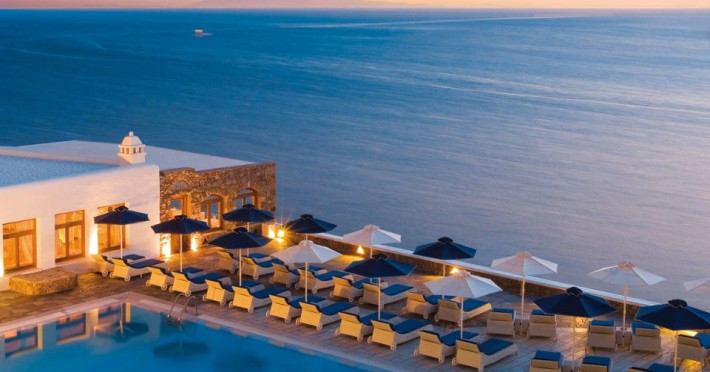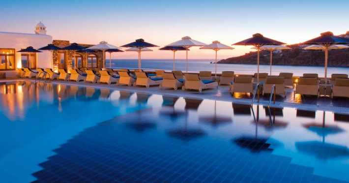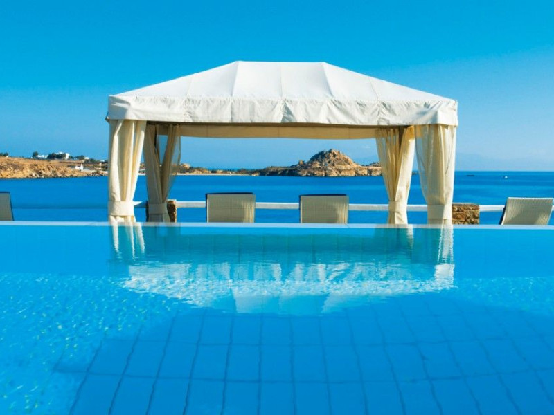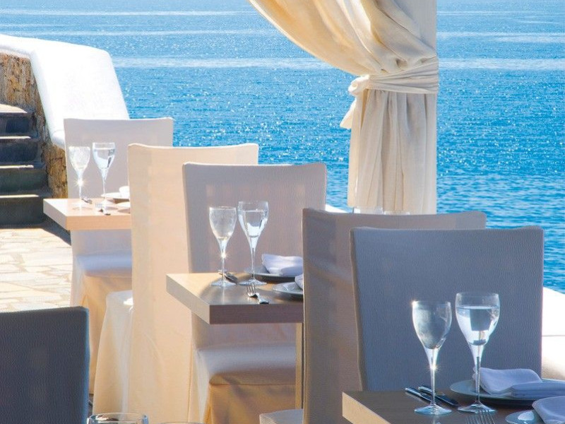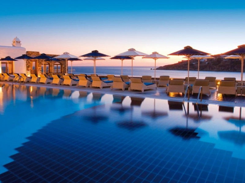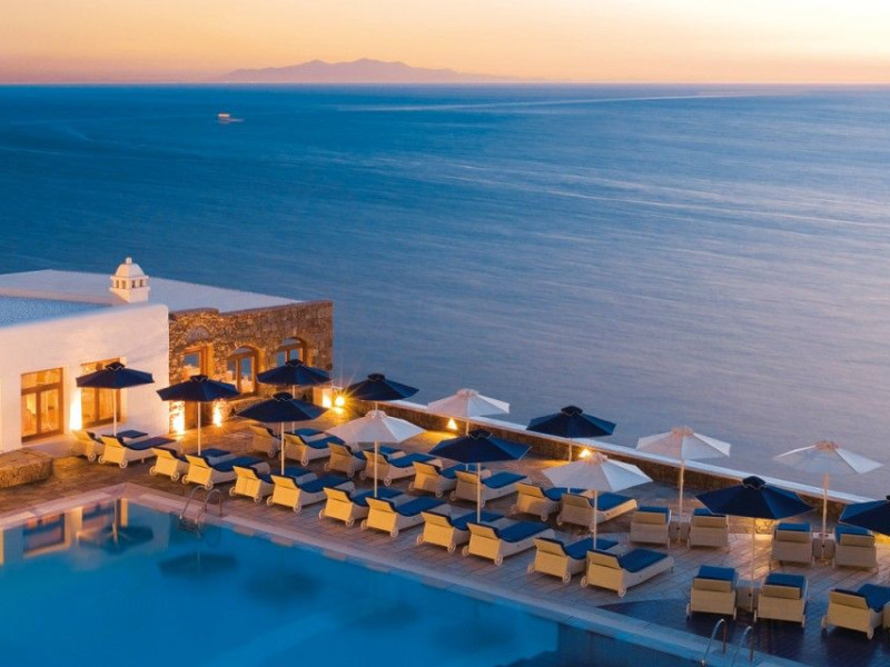 Excellently located on a private peninsula, this elegant and luxurious hotel enjoys overwhelming views over the azure blue Aegean Sea. The famous beaches of Platis Yialos and Psarou are only 30 metres and 150 metres away, respectively. The hotel features a fantastic spa and wellness area, a fitness centre, an infinity pool, 2 restaurants and 2 bars. Mykonos town is 3.5 km away.