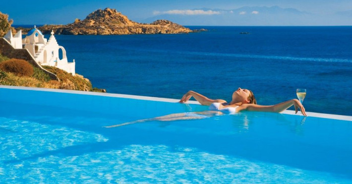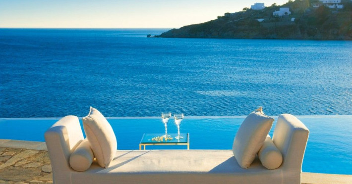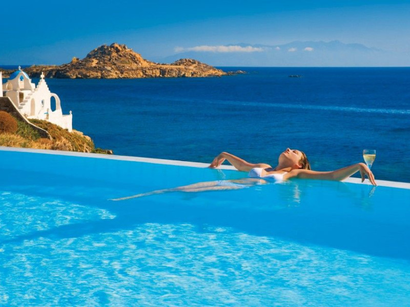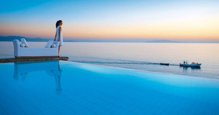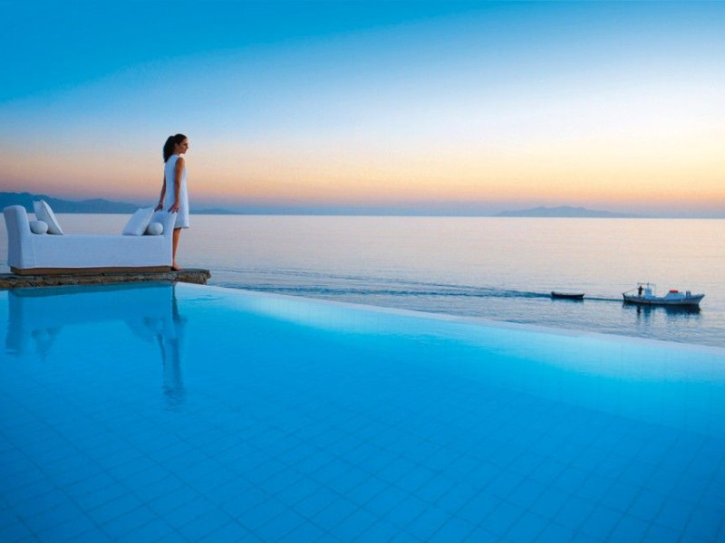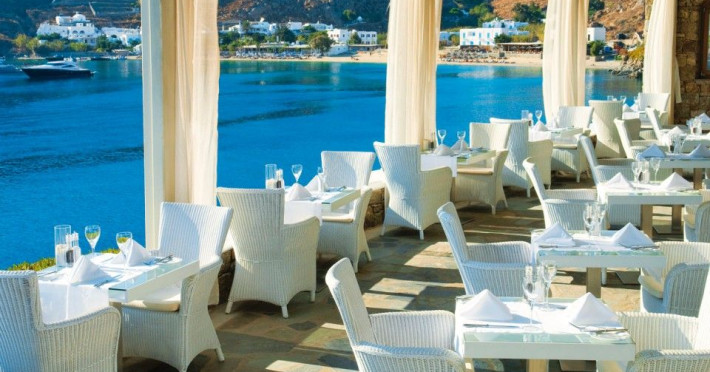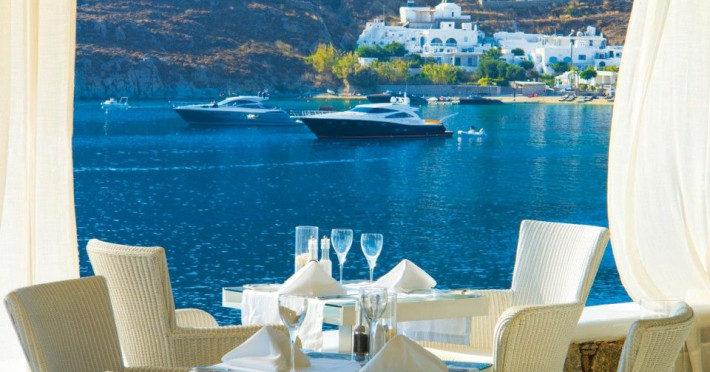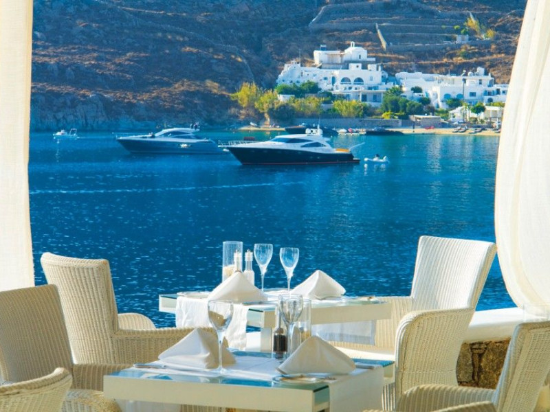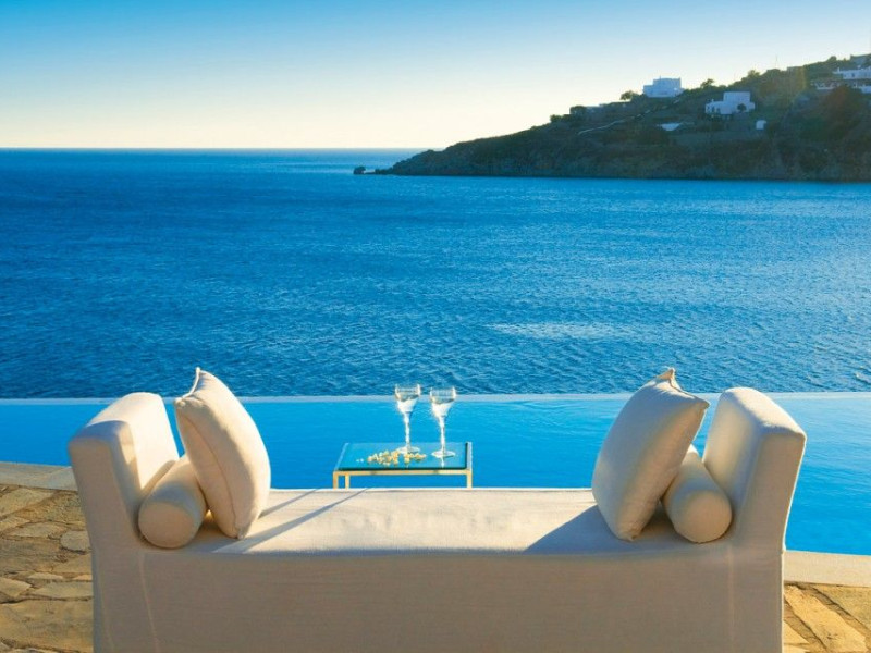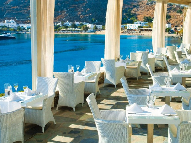 Excellently located on a private peninsula, this elegant and luxurious hotel enjoys overwhelming views over the azure blue Aegean Sea. The famous beaches of Platis Yialos and Psarou are only 30 metres and 150 metres away, respectively. The hotel features a fantastic spa and wellness area, a fitness centre, an infinity pool, 2 restaurants and 2 bars. Mykonos town is 3.5 km away.