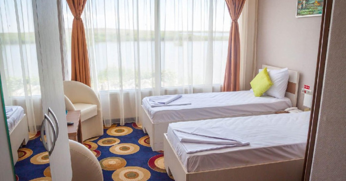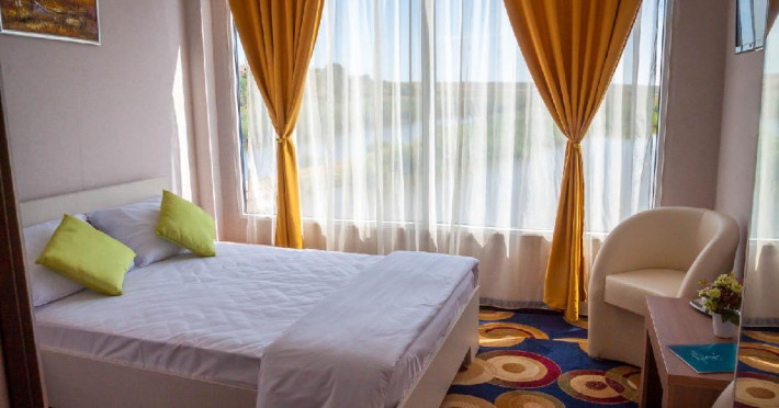 INFORMATII GENERALE Pontonul plutitor Bella Marina este situat pe intr-un cadru natural de exceptie, in localitatea Baltenii de sus, judetul Tulcea, la aproximativ 3 km de soseaua Tulcea-Mahmudia. DESCRIERE UNITATE DE CAZARE Ca sa intelegi ce reprezinta complexitatea Deltei Dunarii trebuie sa vizitezi acest tanar pamant al tarii, sa te plimbi cu barca pe canale si lacuri, sa asculti freamatul stufului si zgomotele naturii. Pontonul plutitor Bella Marina va invita sa descoperiti comorile Deltei, cu mare grija si respect fata de tot ce inseamna viata. Este locul ideal pentru o vacanta mai mult decat relaxanta. FACILITATI UNITATE Unitatea pune la dispozitia turistilor un restaurant cu specific pescaresc ce include preparate din bucataria internationala, o sala moderna de conferinte, terasa deschisa, bar de zi, sala de fitness si sauna, parcare (contra cost) DESCRIERE CAMERE Camerele duble sunt fie cu pat matrimonial fie cu doua paturi twin. Atat apartamentele standard cat si apartamentele VIP dispun de un dormitor cu pat matrimonial si un living cu canapea extensibila. Apartamentele VIP sunt spatioase si sunt situate la cel mai inalt nivel oferind o priveliste de exceptie. Camerele sunt dotate cu televizor LCD, minibar, cablu TV, internet, telefon, uscator de par, sistem de climatizare, sistem in caz de incendiu si detectoare de fum, sistem de acces cu card. Baia este dotata cu cada/cabina de dus, uscator de par, articole cosmetice, prosoape, halate de baie, papuci. LOCALIZARE Acces rutier: din Tulcea se merge catre Mahmudia / Murighiol, se trece prin localitatile Malcoci - Nufaru - Victoria. Dupa ce se trece de satul Victoria (se vede pe partea stanga o biserica), se mai merge pe soseaua principala aproximativ 3 km pana se vede un indicator catre localitatea Baltenii de Sus si panoul publicitar cu hotelul WELS. Se face un drum spre stanga (DJ229K) si se mai merge aproximativ 3 km pana la hotel. In localitate, se merge pe Strada Laguna Verde (DJ229K) pana la intersectia cu Strada Pescarilor, unde se face stanga catre ponton. ATRACTII TURISTICE Cetatea Argamum (Orgame) - aflata la Jurilovca Cetatea Halmyris- in comuna Murighiol, Cetatea Histria- pe malul lacului Sinoe, Cetatea romano-bizantina Dinogetia - in comuna Jijila; Geamia Ali-Gaza-Pasa - situat in orasul Babadag Cetatea romana Noviodunum - langa orasul Isaccea Cetatea romana Arrubium - in orasul Macin Cetatea romana Beroe- in comuna Ostrov, Cetatea romana de la Enisala, Manastirea Cocosu, Manastirea Celic-Dere, Manastirea Saon, Muzeul Farul Vechi (genovez) - Sulina.POLITICI Nu sunt acceptate animalele de companie. SERVICII DE MASA Se acorda in restaurantul propriu cu o capacitate de 96 locuri.FACILITATI COPII Copiii mai mari de 7 ani se pot caza in apartament. FACILITATI EVENIMENTE Sala de conferinta cu o capacitate de 24 locuri, prin suportul tehnic audio-video de ultima generatie ofera cadrul propice intalnirilor de afaceri, fiind ideala pentru sedinte, traininguri, prezentari si alte intruniri .