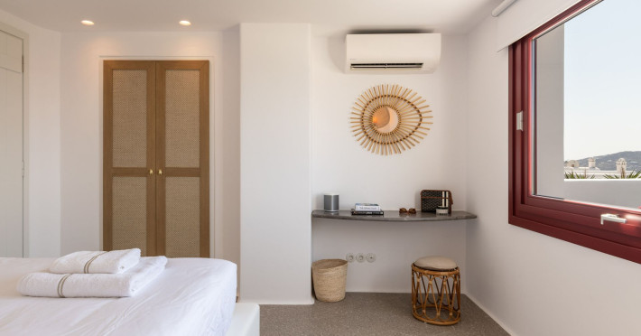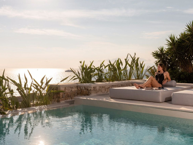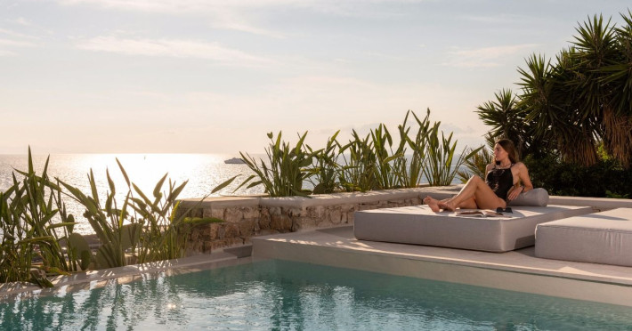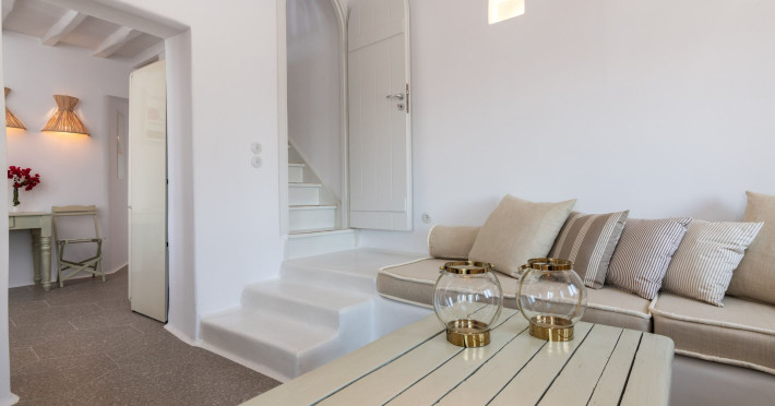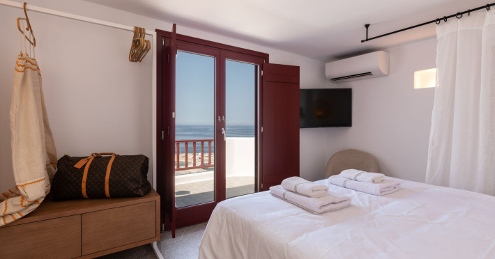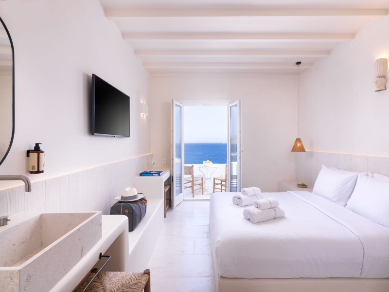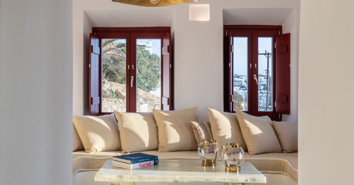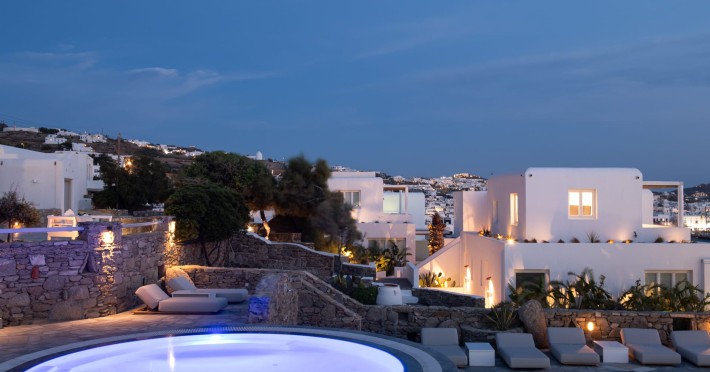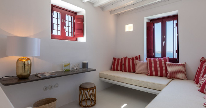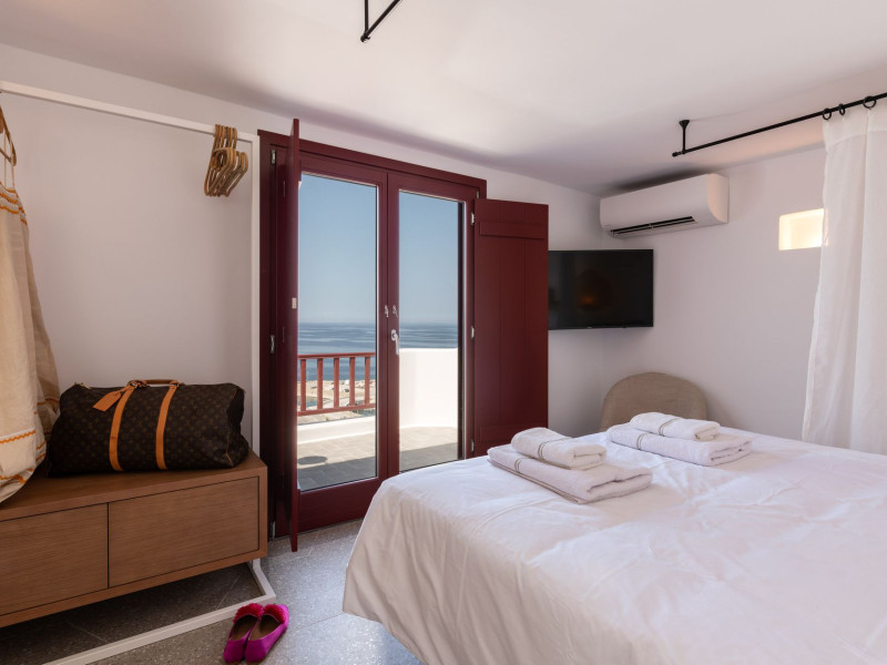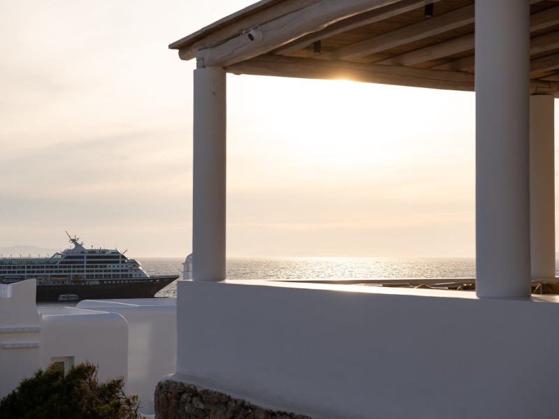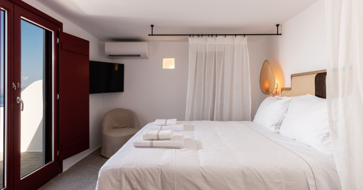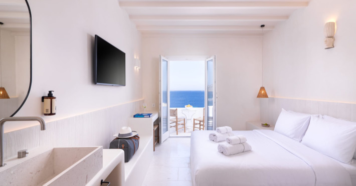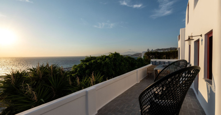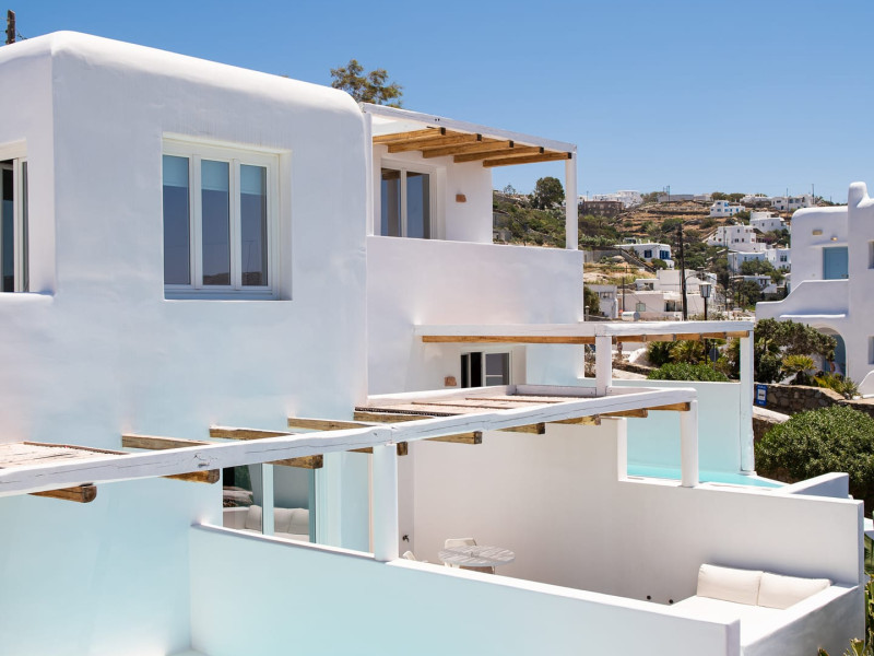 Porto Mykonos boasts the most ideal location in Mykonos town overlooking the vivid pace of the Port and the sparkling colors of the sea. Nestled in one of the most romantic landscapes in Greece this seaside retreat offers the most magical Mykonos town view with flickering lights illuminating the windmills and the historic center. The minimalist luxury rooms and luxury suites feature a combination of authentic Cycladic and modern elements. This luxury hotel in Mykonos town epitomizes the beauty of simplicity in itself.4 stars Hotel in Mykonos townNuzzled in the vibrant town of Mykonos in Greece this 4 star hotel entices its guests with its serene location and the enchanting panoramic views over the azure waters of the Aegean. A luxury 4 star sunset view hotel in Greece offering easy access to the vivacious town, an a la carte restaurant and a fresh water swimming pool.The Porto Mykonos is a traditional and authentic 4 star hotel ideally situated a stone’s throw away from Mykonos town, Greece. The hotel's sea view pool offers magnificent views for sunbathers and, after sunset, it is lit with sparkling lights from town that evidence the active nightlife at the short distance. A 4 star hotel in Mykonos town designed to ensure the ultimate intimacy. The luxury rooms of this sunset view hotel open out onto private terraces allowing guests to enjoy the sunset hues reflecting over the Aegean and the most picturesque Mykonos town view.Mykonos Downtown Luxury HotelIn the heart of Mykonos, the most renowned island of Cyclades in Greece lies the Porto Mykonos sunset view hotel. Just a breath away from the bustling town in Mykonos downtown the hotel beautifully combines tranquil and comfortable accommodation with traditional architecture & style and impeccable service.View also our Sisters Hotels Terra Maria Butique Town hotel and Hotel Tagoo in Mykonos.