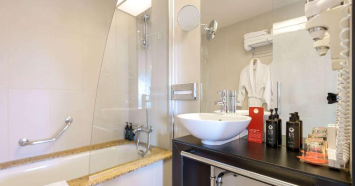 The hotel has 300 rooms, which are located on 11 storeys and are reachable by lift. Multilingual staff (English, German, French) at the reception desk in the lobby are ready to assist you with check-in and check-out. Amenities include a baggage storage service, safe, currency exchange service and cash machine. Wireless internet access allows guests to stay connected while on holiday. The tour desk offers assistance with booking excursions. The hotel has a range of facilities for guests with disabilities. The hotel has wheelchair-accessible facilities. There are a number of shops, including a souvenir shop. Additional amenities include a newspaper stand and a TV room. Guests arriving by car can park their vehicles in the garage or in the car park. Further services and facilities include a babysitting service, a childcare service, a car hire service, a transfer service, room service, an alarm call service, a laundry service, a hairdresser and a hotel shuttle bus. Bicycles can be kept in the bicycle storage area. Complimentary newspapers are available. A business centre with fax machine, projector and photocopier is available. The congress service offers support with all aspects of event organisation.