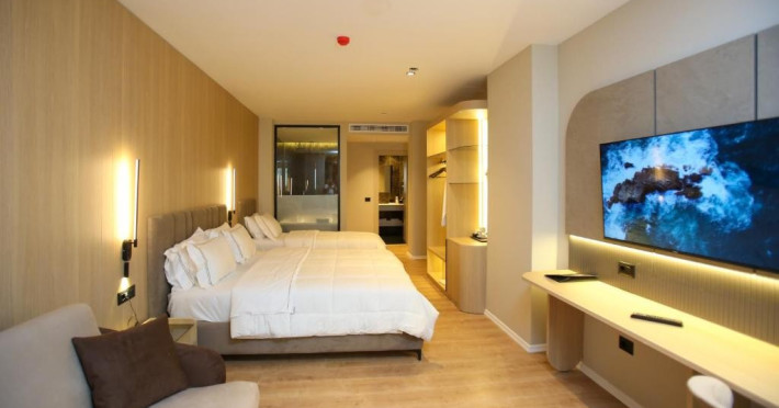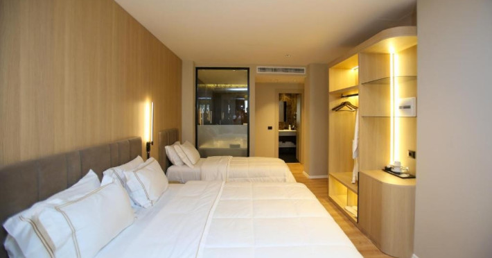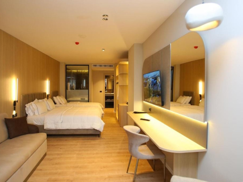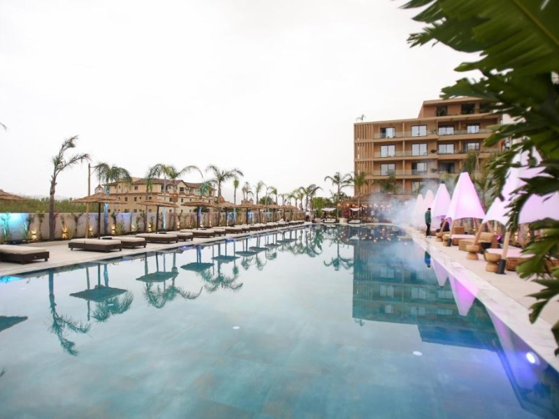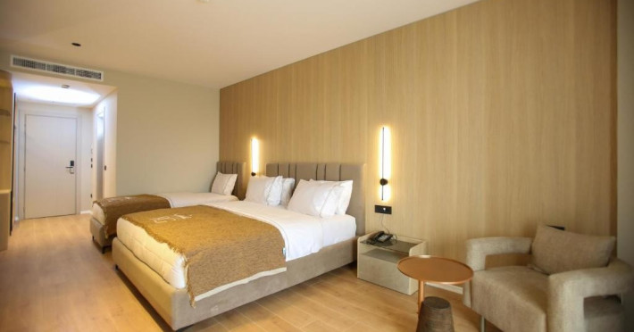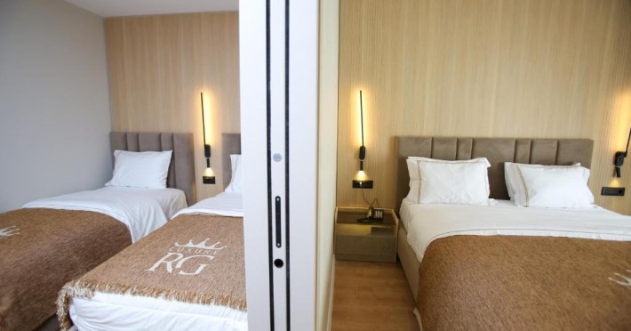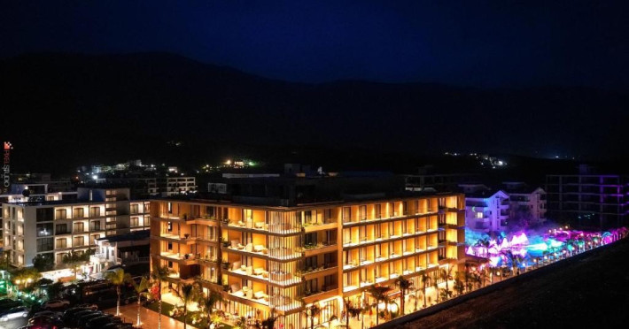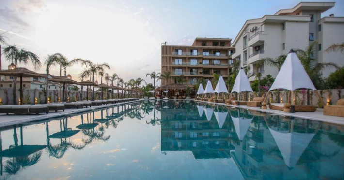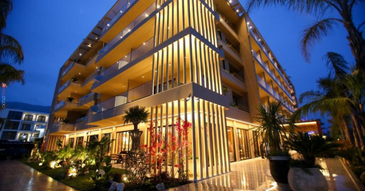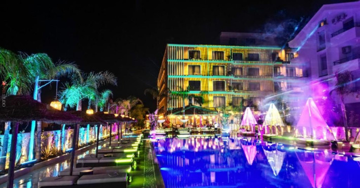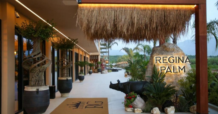 Hotelul Regina Palm se afla la 100 m distanta de Plaja Baro. Acesta este dotat cu aqua park, room service, piscine, camere moderne, 2 restaurante, 3 baruri, terasa, gradina, etc.