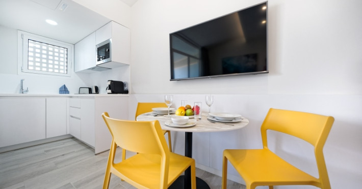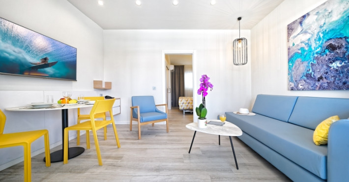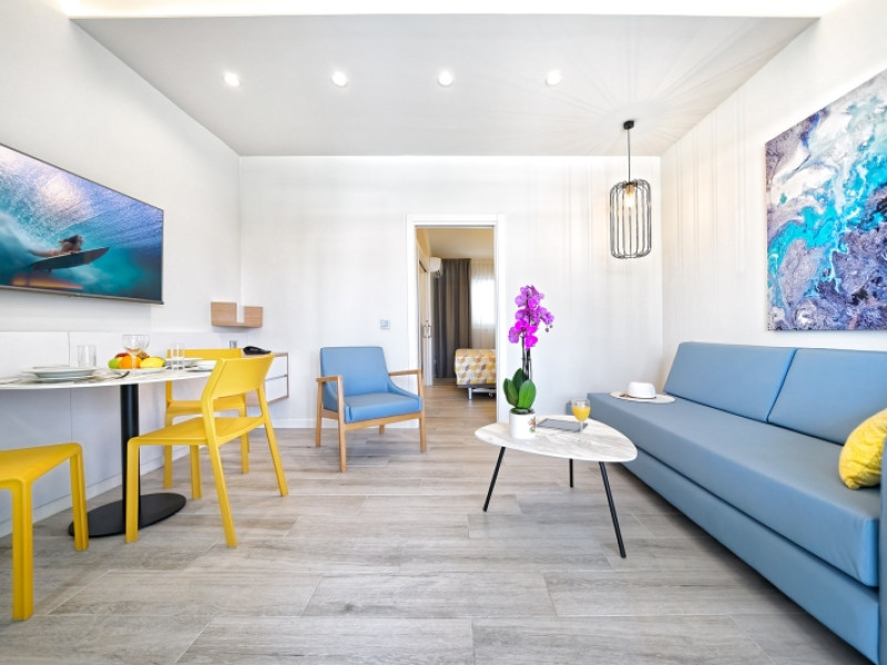About 2 km from a sandy/stone beach lies the apart hotel Bungalows Relaxia Los Girasoles. The nearest bars and restaurants can be found at a distance of around 100 m. The old town is around 500 m away. A supermarket and other shops you reach after approx. 200 m. In the surrounding a disco (approx. 500 m away), a leisure and aqua park (approx. 5 km), a theatre (approx. 20 km), a cinema (approx. 30 km) and a golf course (approx. 3 km) offer entertainment during the best time of the year. The beach is patrolled by a lifeguard and awarded a blue flag. Directly next to the beach there is a promenade where you can take leisurely walks. The air-conditioned hotel is equipped with a 24h reception (check-in is possible around the clock), Wi-Fi (for a fee), a jacuzzi, showers and changing rooms, a first aid kit as well as a TV lounge with satellite TV. In the outdoor area you will find a garden as well as a seasonally open, heated pool (open all year), where you can rent pool towels for a fee and sun loungers are available for free. There is also a children's pool with a children`s slide. Furthermore, outside you can find a sun terrace. You can store your valuables in the safe (extra fee), and your luggage in the hotel`s storage roomn. Highchairs are available for a fee. Cots are available. To clean your clothes there are a laundry service (extra fee) and an ironing service. The rooms are cleaned. If necessary, you can contact the medical centre at any time. Guests at the accommodation can get a wake-up call from the hotel personnel. If you want to explore the holiday region, you can use the car and motorbike rental service close to the hotel (extra fee). At the reception, tickets are offered for excursions in the area. In your hotel, a lot of focus is placed on sustainability. This includes among others the hotel`s own recycling bins. Due to its barrier-free facilities , such as barrier-free entrances, wheelchair accessible rooms and wheelchair-accessible bathrooms, the hotel is also suitable for wheelchair users. Catering Enjoy your lunch as a set meal or à la carte. Your physical well-being is catered for by the pool bar. Distances