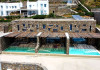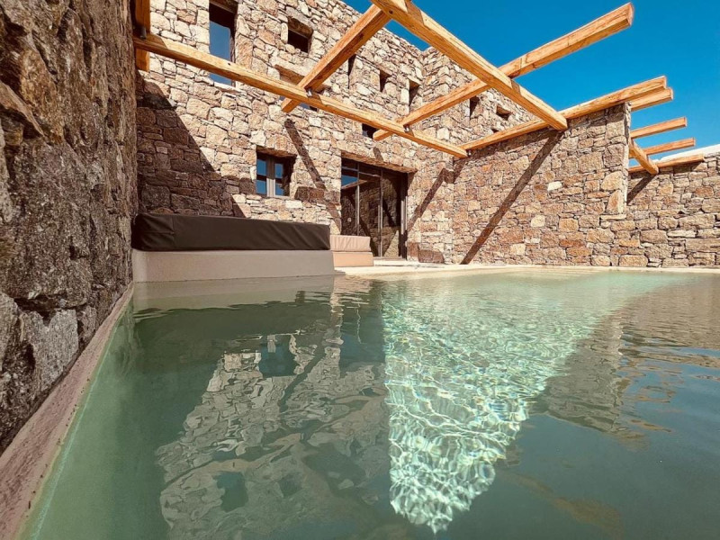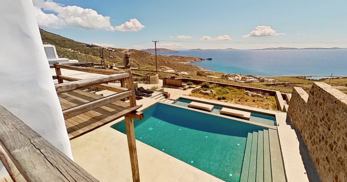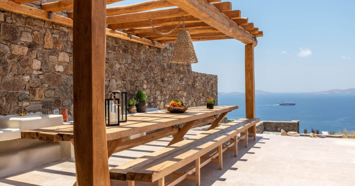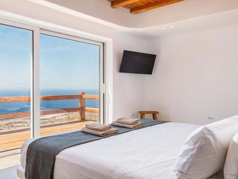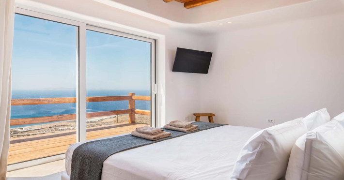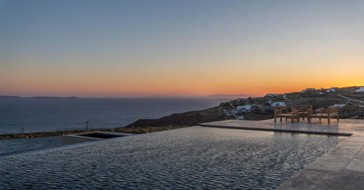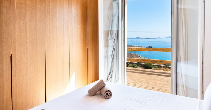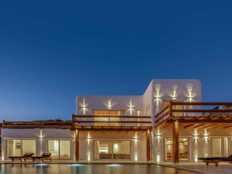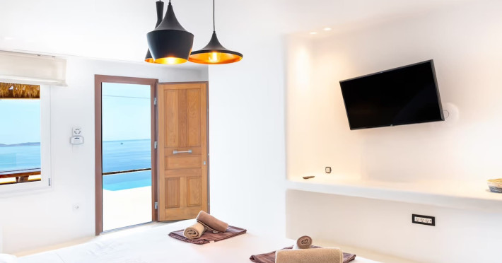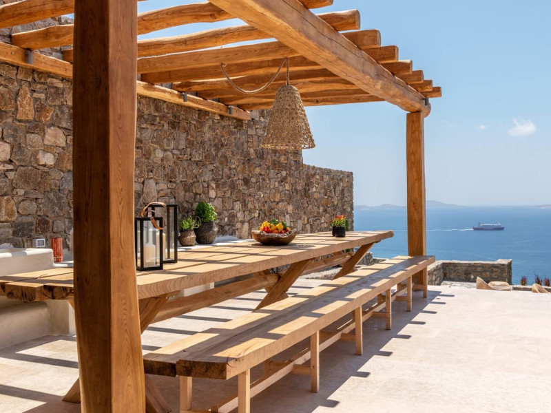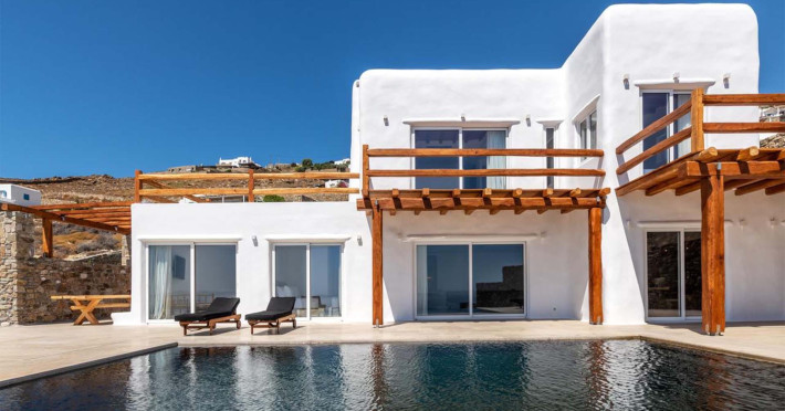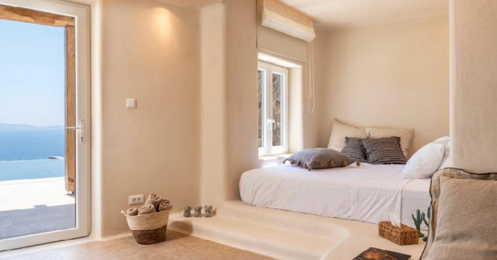 Ria Mar Villas and Suites by Live&Travel is an exclusive complex perched on the serene hills of Choulakia, offering five independent luxury units: a 5-bedroom villa with a private infinity pool, Jacuzzi, and hammam, a 3-bedroom villa with a private pool, and three 1-bedroom suites, each boasting their own private pool. These properties are designed in a modern boho style that blends Cycladic minimalism with contemporary elegance, featuring panoramic views of the Aegean Sea and mesmerizing sunsets. Highlights: 5-Bedroom Villa: Sleeps up to 10 guests, with en-suite bedrooms, a fully equipped kitchen, and spacious indoor and outdoor living areas. It includes a 48 m² infinity pool, a 22 m² Jacuzzi, a hammam steam room, and an outdoor firepit. 3-Bedroom Villa: Perfect for families or groups, with expansive sea views, private pool, and elegant indoor spaces. 1-Bedroom Suites: Each suite is thoughtfully designed, with mezzanine-style sleeping areas, airy interiors, and private pools. Located just a short drive from Mykonos Town and near Agios Stefanos Beach, the complex is ideal for those seeking privacy, relaxation, and easy access to the island’s vibrant attractions. Whether you're planning a tranquil escape or a lively group retreat, Ria Mar Villas and Suites offer a tailored luxury experience infused with authentic Mykonian charm