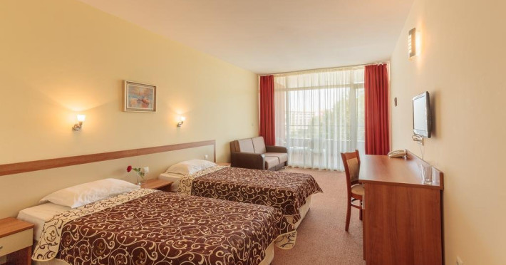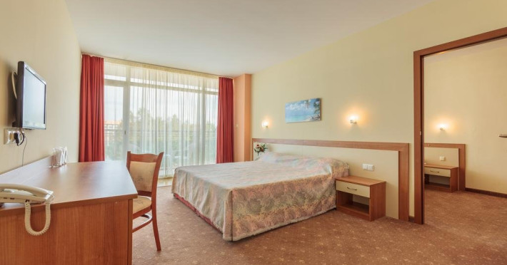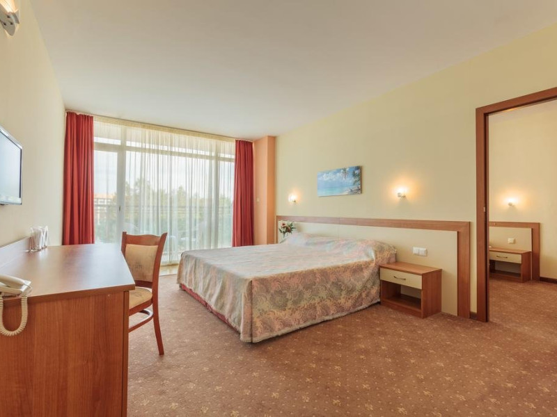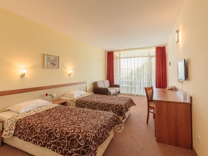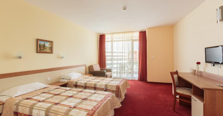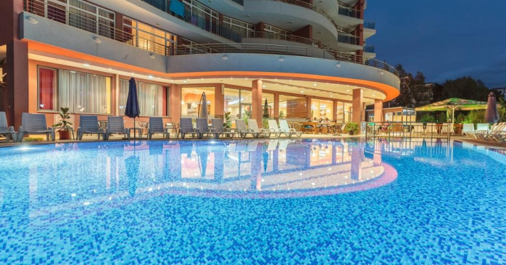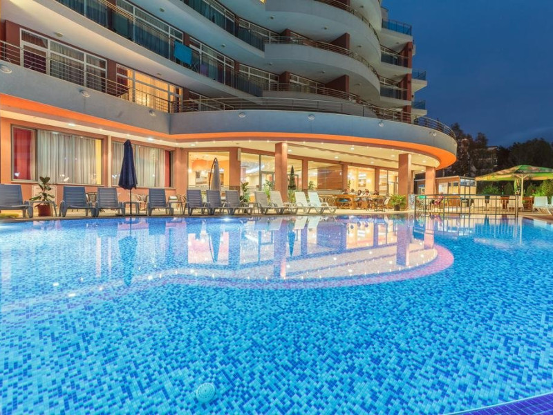 Hotelul este situat in partea de nord a statiunii Sunny Beach, la 350 m de plaja si la 800 m de centrul statiunii. Facilitati Construita in 2011, 5 etaje, lift, 74 unitati. Receptie, inchiriere seifuri (1 euro/zi), restaurant principal, lobby bar, cantina, magazin, wi-fi gratuit. Cazare Ora de check-in: 14:00 p.m.Ora check out: 12:00 a.m. 35 Dbl standard aprox. 18-20 mp,(max 2+0), pat dublu sau paturi twin. Patut de copii disponibil la cerere. 33 Dbl Deluxe aprox. 28 mp,(max 2+2), pat dublu sau paturi twin, canapea extensibila. Patut de copii disponibil la cerere. 3 apartamente aprox. 45 mp. (max. 2+2/4+0), doua camere separate cu chicineta: o camera cu pat matrimonial, cealalta camera este cu doua paturi separate, vedere la piscina. In toate unitatile: aer conditionat, TV LCD, mini frigider, telefon, seif (2 euro/zi), baie cu dus, balcon mobilat, wi-fi (gratuit). Fierbator electric si prajitor de paine numai in apartamente. Copii: baby cot(1.5 euro/zi, la cerere), scaune inalte in restaurant, sectiune copii in piscina. Sport si divertisment Gratuit: piscina exterioara cu sezlonguri si umbrele de soare in jurul ei. Cost suplimentar: seifuri de inchiriat (la receptie sau in camera), apeluri telefonice, biliard. Animalele de companie nu sunt permise in hotel Parcare: Cost suplimentar (5 euro/zi), 12 locuri de parcare
