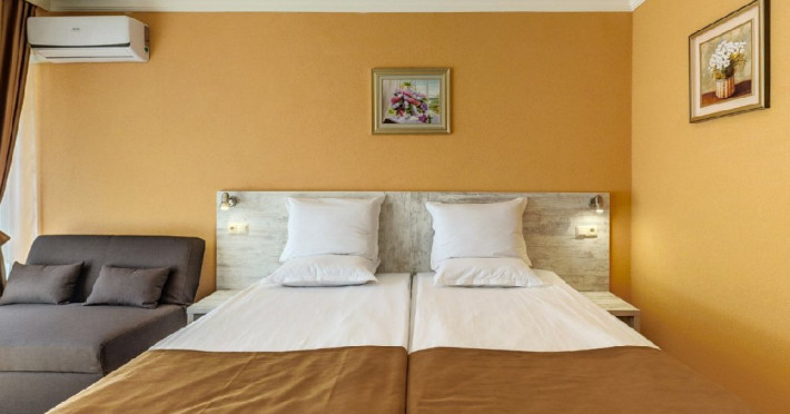 Hotelul Riva este situat in partea de nord a statiunii Sunny Beach si face parte din complexul RIVA. Plaja este la 120 m, centrul statiunii - la 1,5 km. Plaja: cu nisip, la 120 m. Fundul marii este plat, cu acces lin. Plaja este castigatoarea premiului Steagul Albastru. Cazare: Hotel Riva*** si Hotel Riva Park**** este un complex complet renovat situat in partea de nord a celei mai populare si atractive statiuni de pe coasta bulgara a Marii Negre - Sunny Beach. Este situat pe o suprafata de 13 000 m2. Un avantaj incontestabil este parcul verde frumos si pitoresc, printre care este construit complexul hotelier. DBL 2+0 BEST PRICE: Aprox.23 m2. Camera are doua paturi obisnuite si o canapea extensibila 90/200 cm. Toate camerele sunt dotate cu aer conditionat individual, mini-frigider, ceainic, TV, facilitati pentru cafea si ceai, Wi-Fi, telefon, baie cu dus, produse cosmetice de baie, uscator de par, balcon cu mobilier. Capacitatea maxima este de 2 adulti. DBL 2+0 SUPERIOR: Aprox 23 m2. Camera are doua paturi obisnuite si un fotoliu extensibil 90/200 cm. Toate camerele sunt dotate cu aer conditionat individual, mini-frigider, ceainic, TV, facilitati pentru cafea si ceai, Wi-Fi, telefon, baie cu dus, produse cosmetice de baie, uscator de par, balcon cu mobilier. Doar in DBL 2+0 este posibila cazarea pentru 1 adult si 1 copil, capacitatea maxima este de 2 adulti. DBL 2+1 SUPERIOR: Aprox. 25 m2. Camera are doua paturi obisnuite si un fotoliu extensibil 90/200 cm. Toate camerele sunt dotate cu aer conditionat individual, mini-frigider, ceainic, TV, facilitati pentru cafea si ceai, Wi-Fi, telefon, baie cu dus, produse cosmetice de baie, uscator de par, balcon cu mobilier. Capacitatea maxima este de 3 adulti. DBL 2+2 SUPERIOR: Aprox. 27 m2. Camera are un pat matrimonial si o canapea extensibila 120/200 cm. Toate camerele sunt dotate cu aer conditionat individual, mini-frigider, ceainic, TV, facilitati pentru cafea si ceai, Wi-Fi, telefon, baie cu dus, produse cosmetice de baie, uscator de par, balcon cu mobilier. Capacitatea maxima este de 2 adulti si 2 copii sau 3 adulti si 1 copil. *Este permisa gazduirea unui copil cu varsta de pana la 1,99 ani. peste gradul de ocupare maxim al camerei. Patutul este oferit gratuit (la cerere prealabila). Animalele de companie nu sunt permise. Hotelul dispune de o camera adaptata pentru persoane cu dizabilitati. Despre hotel: Exista un restaurant de prima clasa (160 de locuri) cu o terasa (250 de locuri) cu mese tip bufet pentru micul dejun, pranz si cina, precum si un lobby bar, un bar la piscina in aer liber si un snack bar pentru diverse si bauturi alese. Exista 2 parcari nepazite, birou de schimb valutar si magazine. Restaurantul si barurile sunt situate in hotelul RIVA PARK si sunt disponibile pentru utilizare atat de la hotelul RIVA, cat si de la hotelul RIVA PARK. Sport & SPA: Piscina in aer liber pentru adulti, piscina pentru adulti cu sectiune de siguranta pentru copii, piscina cu jacuzzi, club pentru copii, animatie. All Inclusive la hotel RIVA PARK **** pentru sezonul de vara 2025 INCLUDE: Check-in: dupa ora 14:00 Check-out: pana la ora 12:00 *All inclusive incepe cu cina din ziua sosirii si se termina cu pranzul in ziua plecarii.